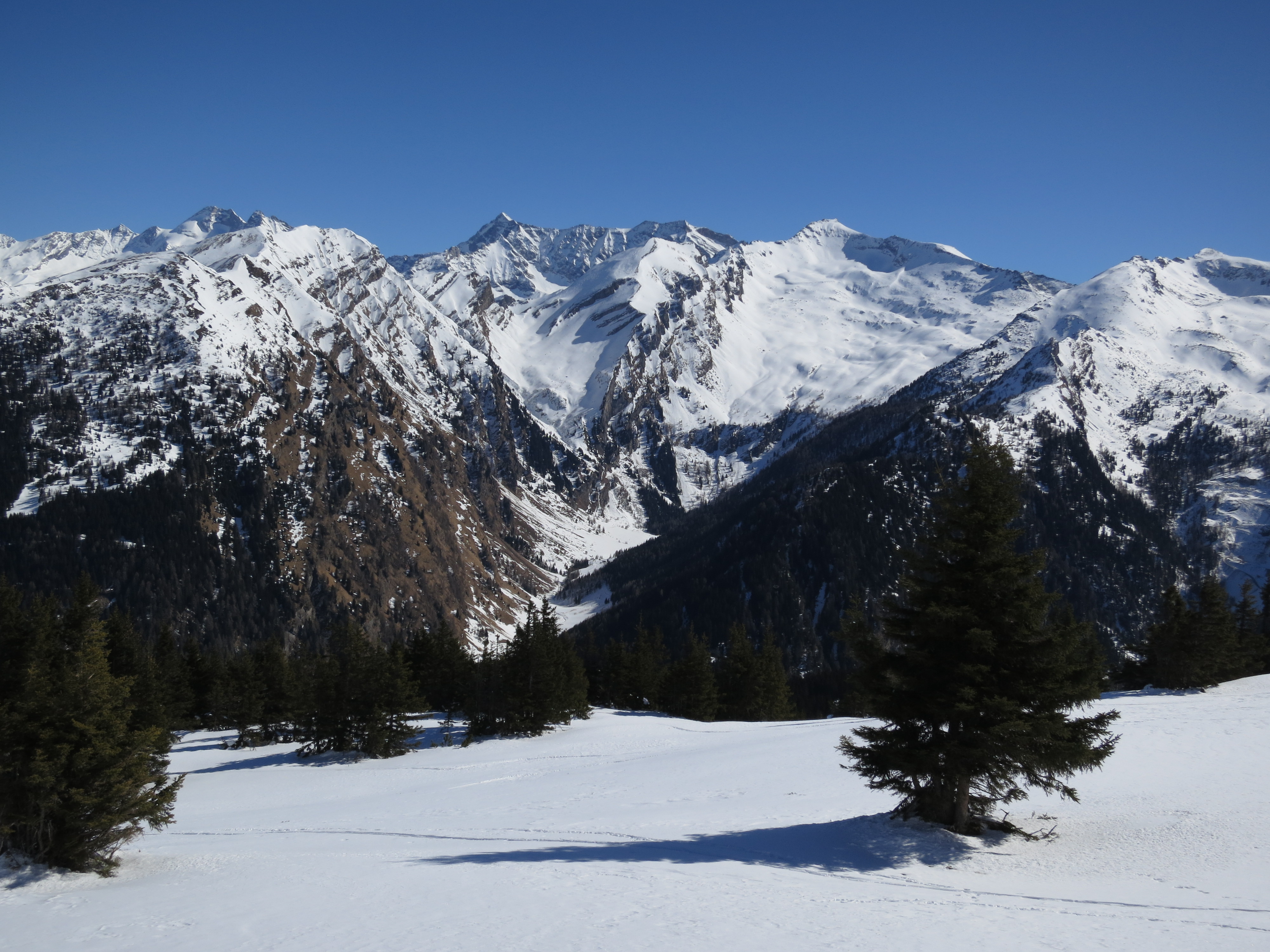 Bild 1 zeigt den Blick zum Leitnerberg, Egger Joch und Nösslachjoch; da apern die Südhänge unten schon ganz schön aus