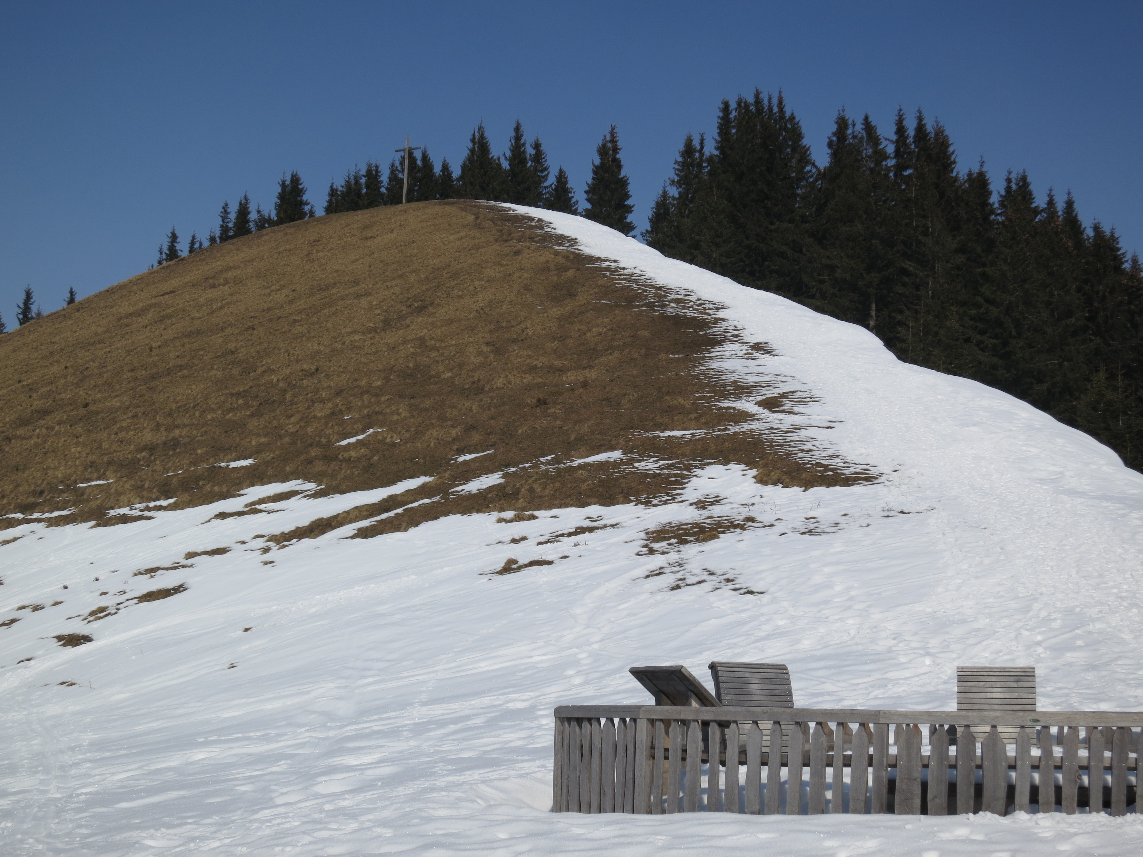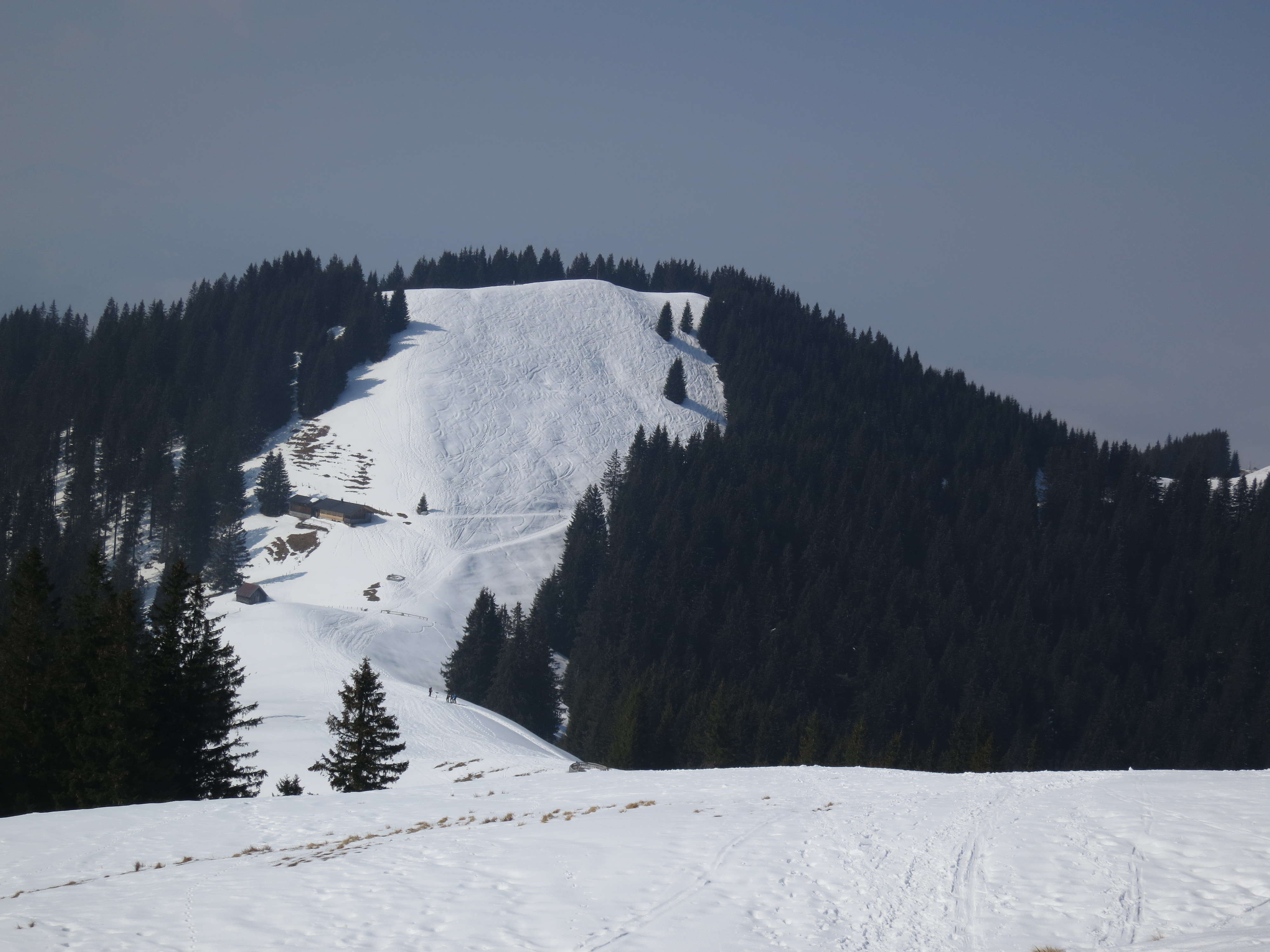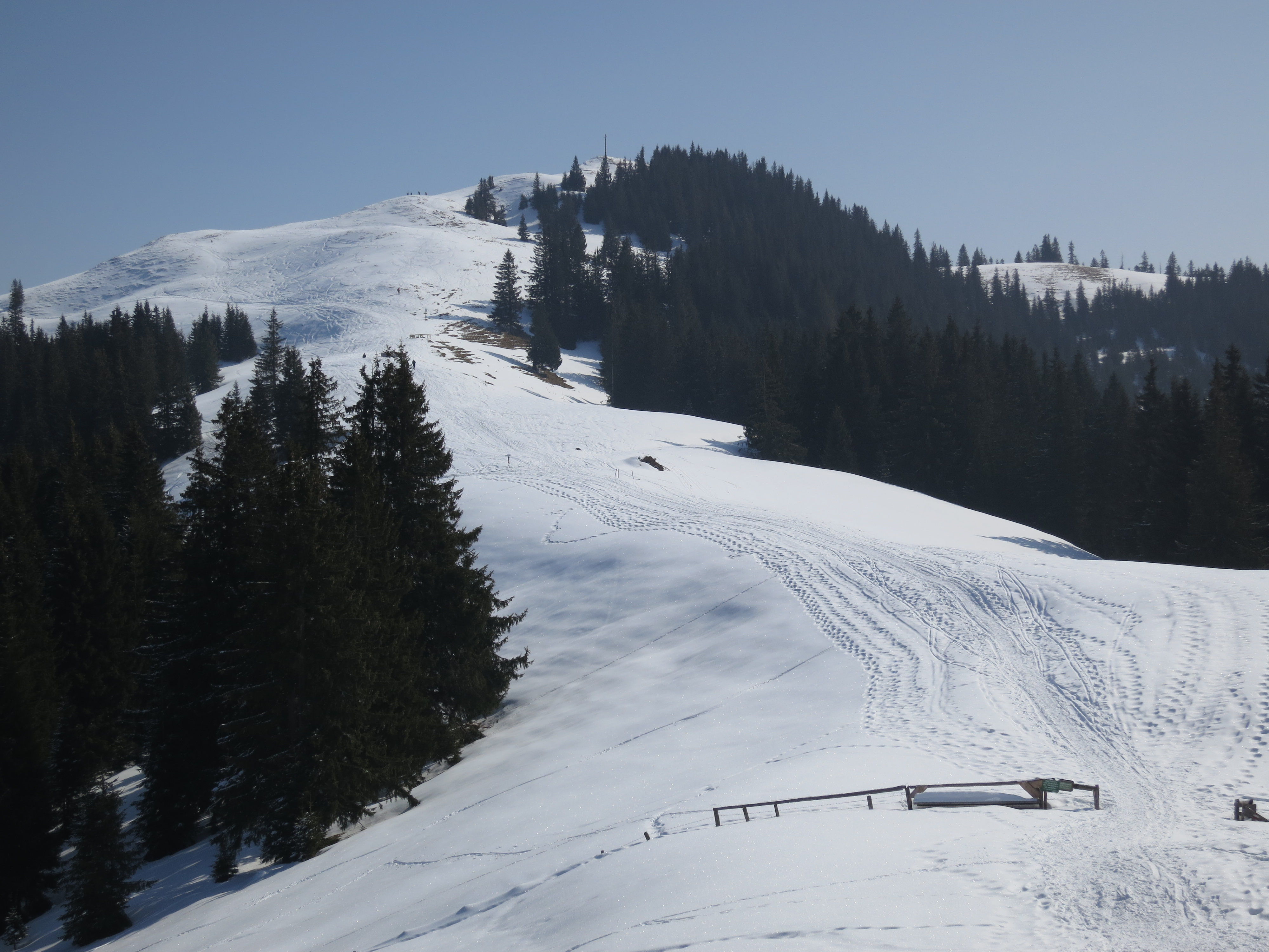 Sonstiges: An diesem Wochenende endet der Liftbetrieb. Aber es waren eh nur ganz wenige Pistler unterwegs; hauptsächlich Fußgänger und Schneeschuhgeher und ein paar Skitourler.