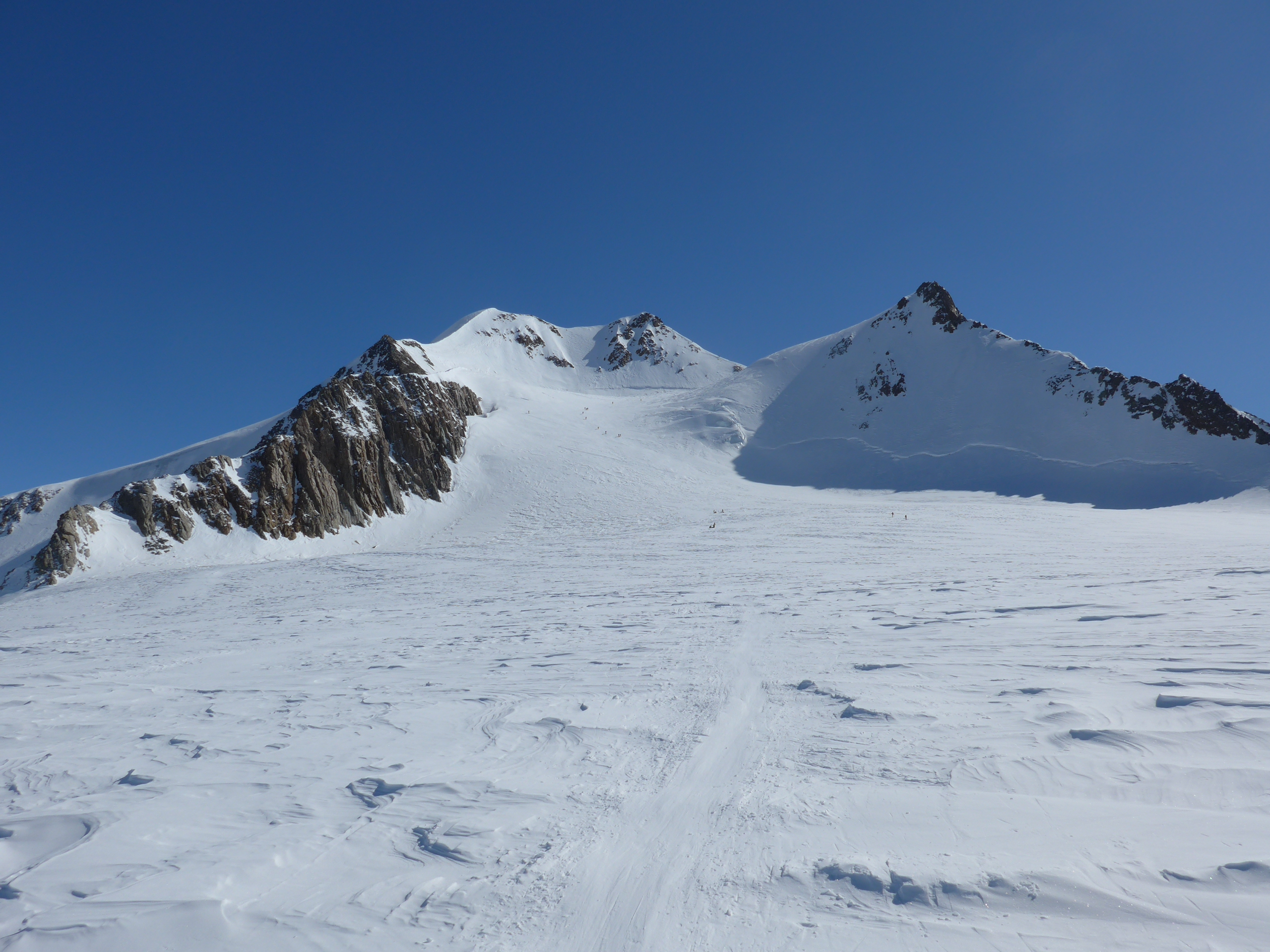 Abfahrt ab Skidepot (mit einigen Fotopausen): ca. 20 km, ca. 2.000 hm, 1,5 Stunden