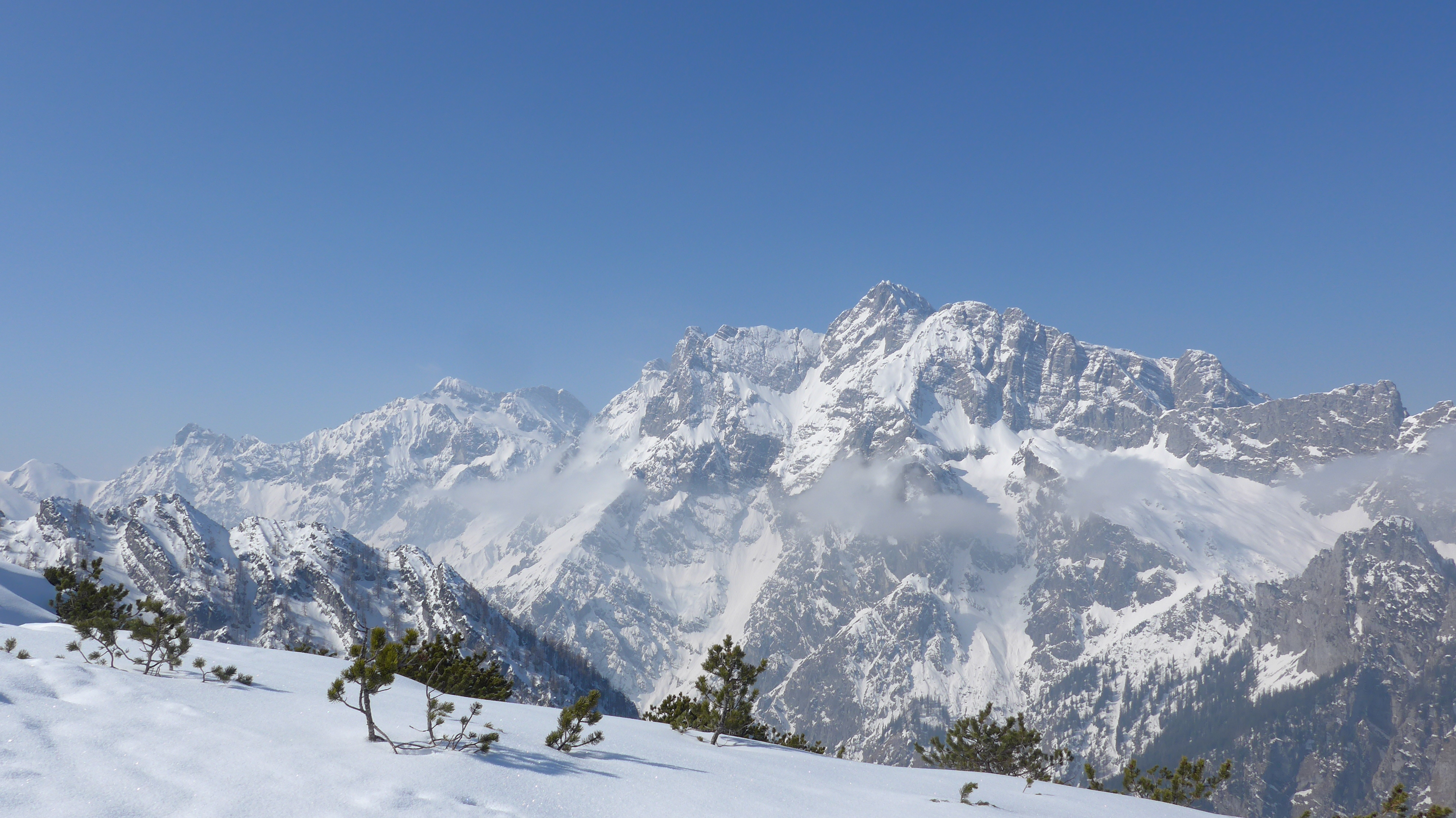 Sehr beeindruckende Aussicht auf den Watzmann und die "Kinder", sowie die großen Kollegen Hochkalter + Hoher Göll.