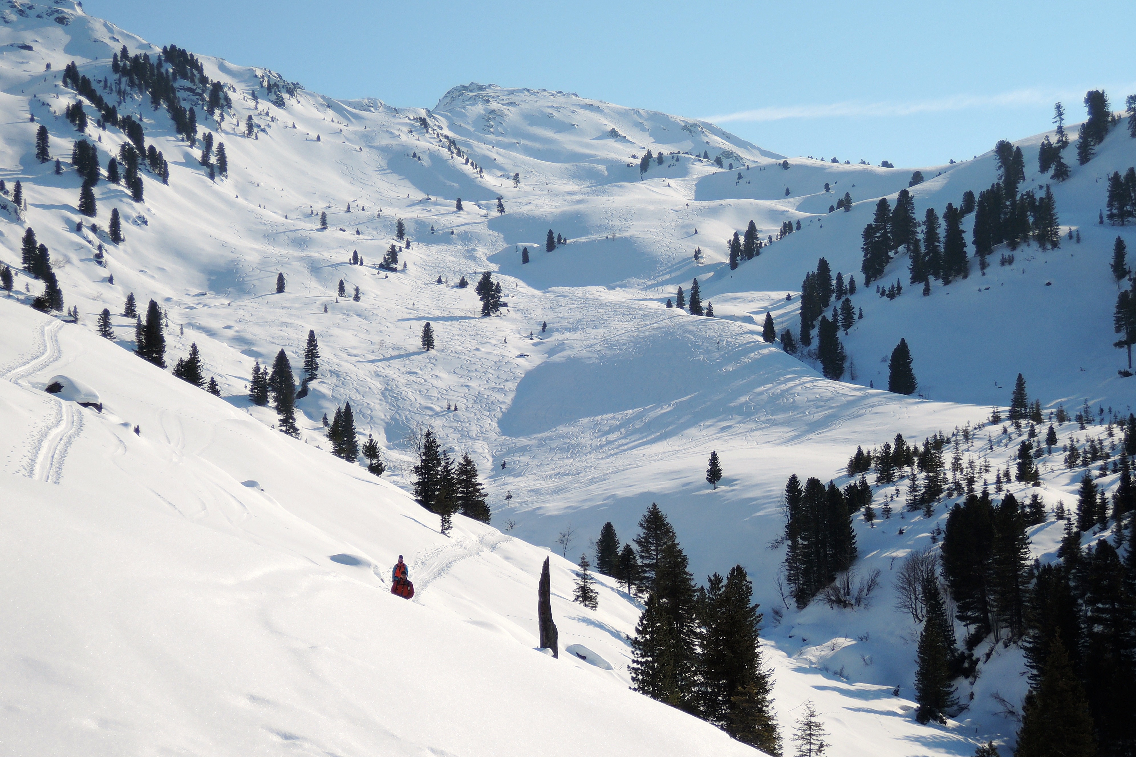 Prognose: mehr als ausreichend Schnee bis unten, viel Platz für eigene Spuren, Pulver wird mit dem Föhn halt schwerer