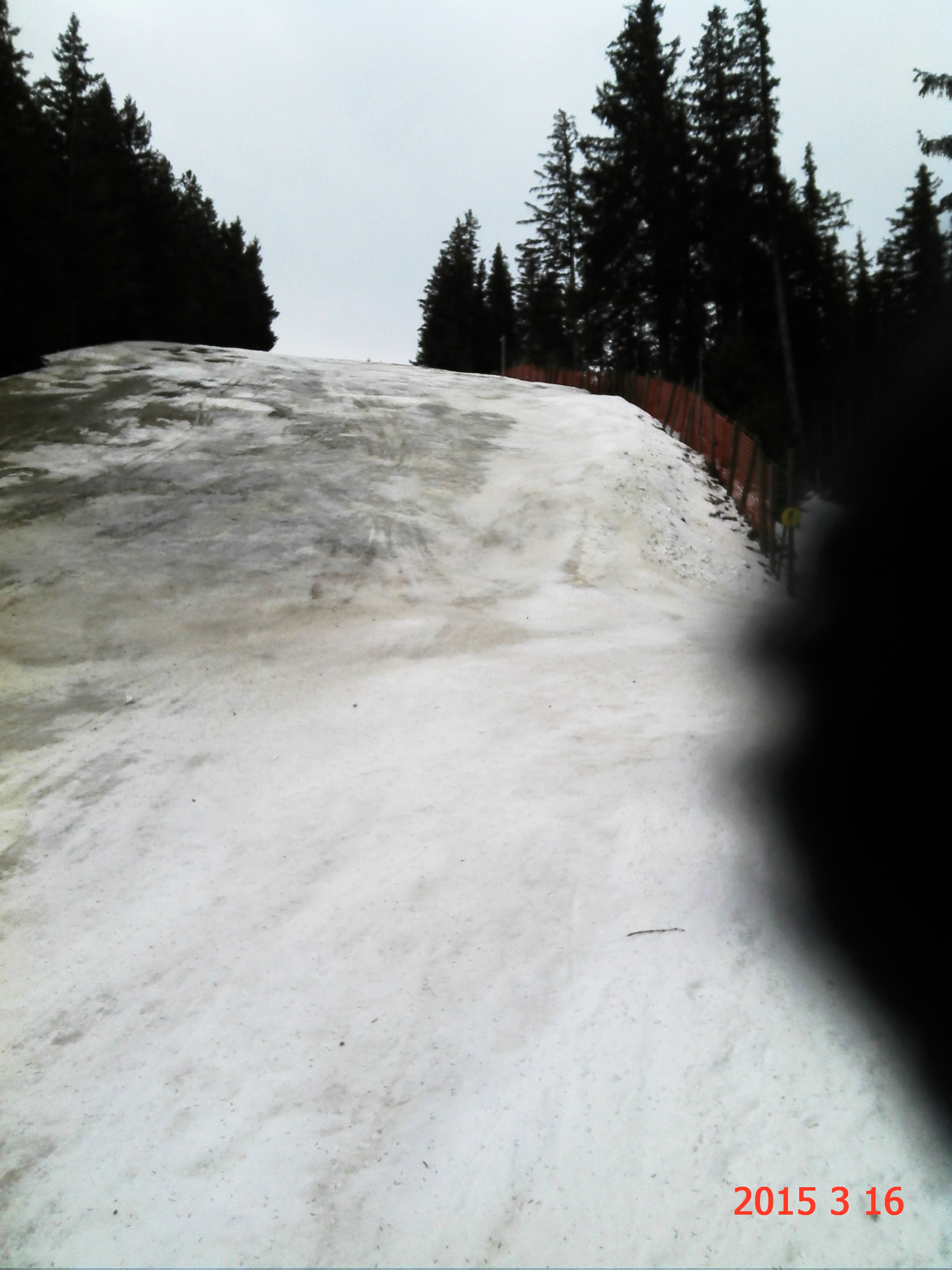 Prognose: auf dieser Skipiste höchstens noch ein paar Tage, abhängig von Sonnenscheindauer und vom Mitgefühl mit dem Skibelag
