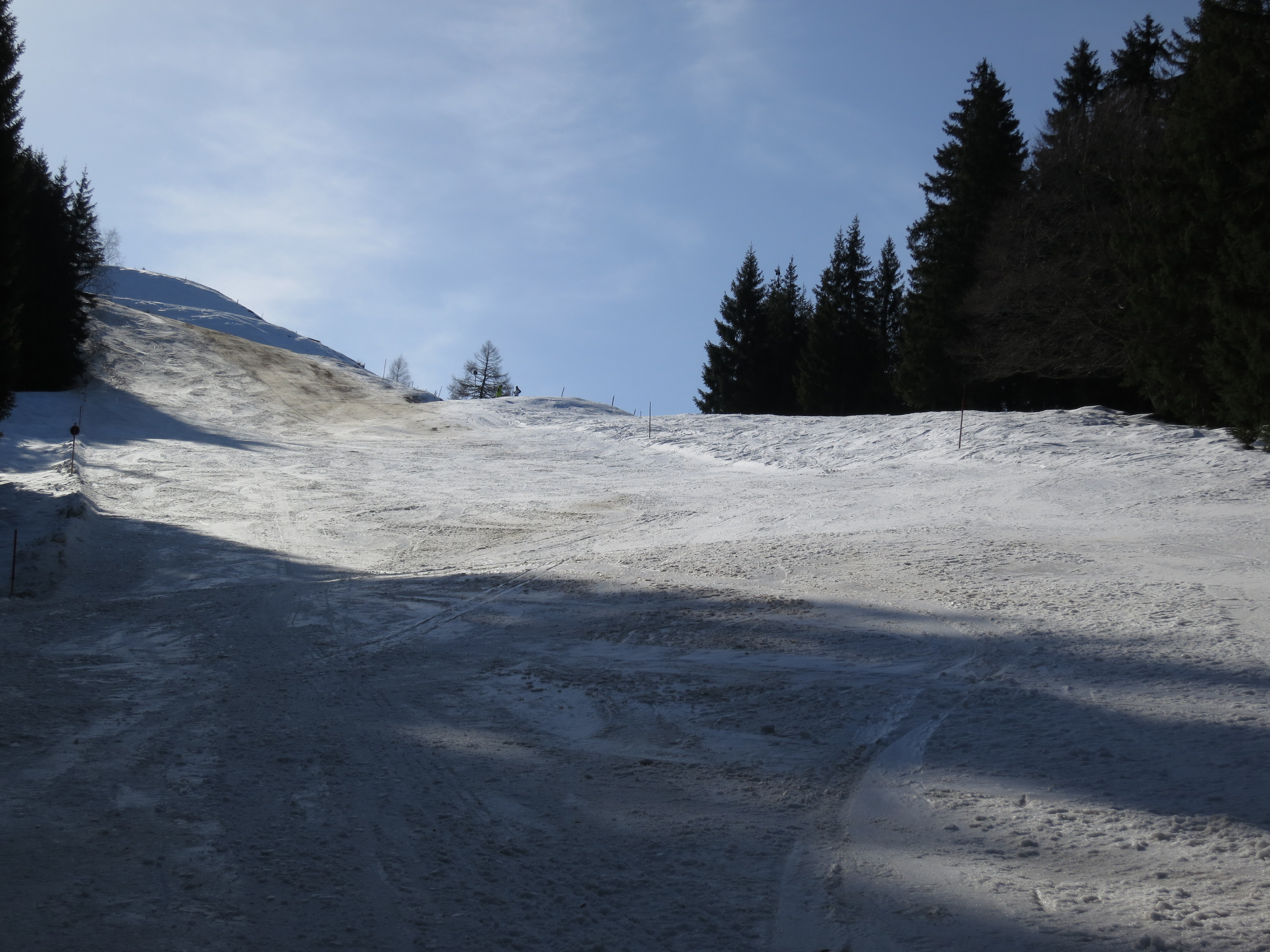 Prognose: geht noch ein bisschen, aber wird schlechter. Auch ein kurzer Hang der Piste beginnt bereits auszuapern.