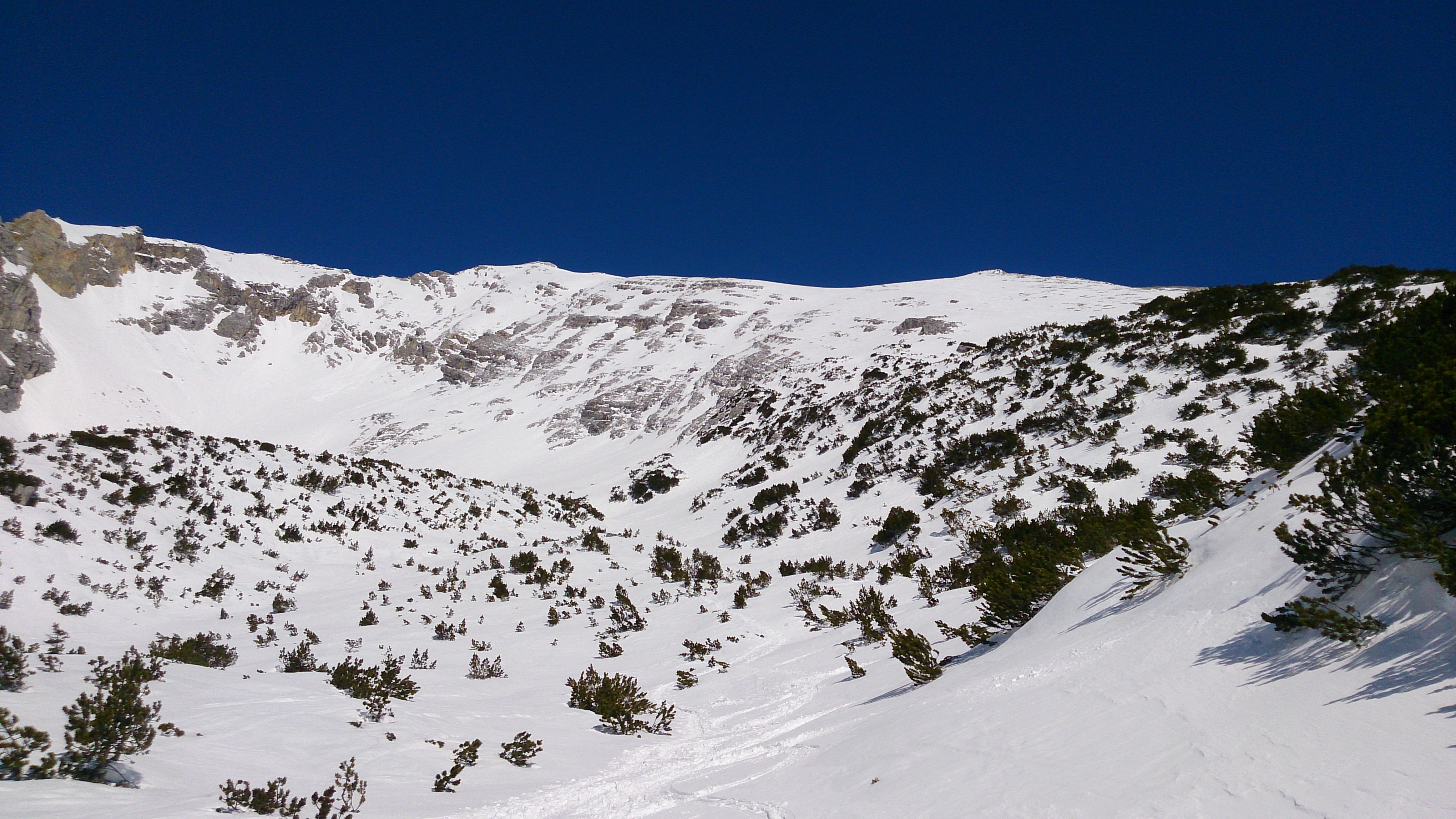Richtung Larchetkarspitz gab es auch eine Spur, eine Querung fängt aper auch schon zum Ausapern an.