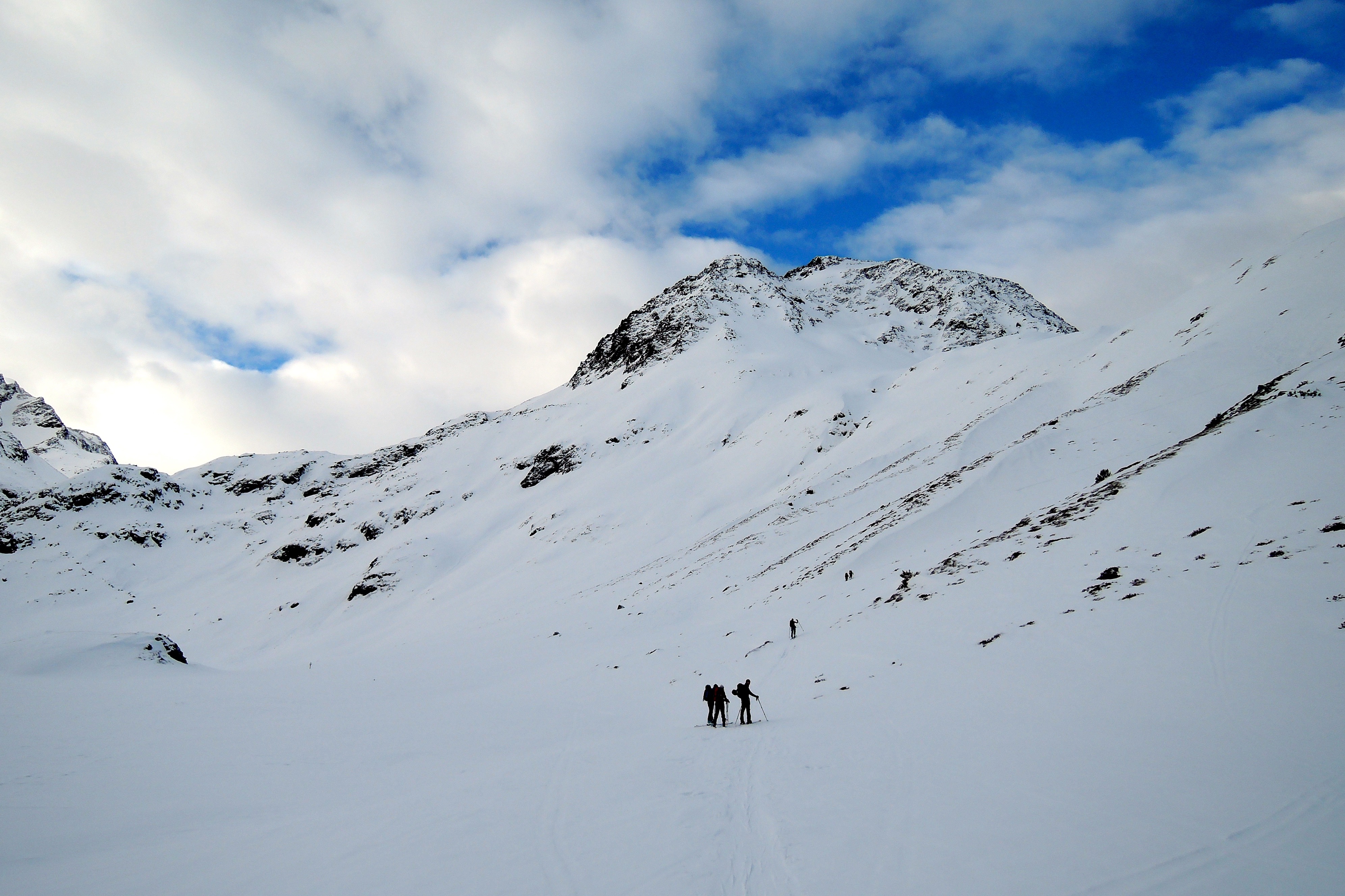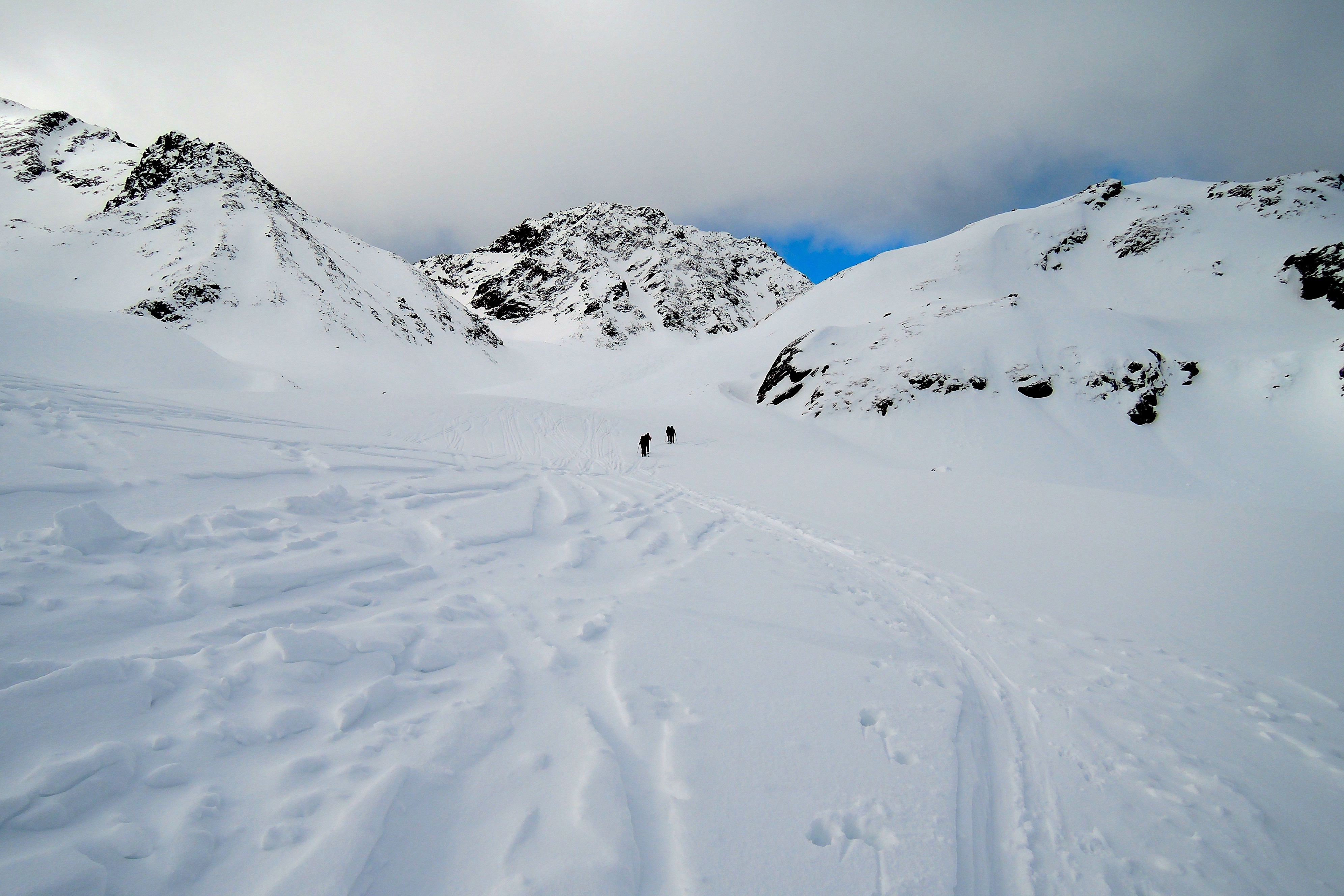 Tourenverhältnisse: Oben windgepresst, bald etwas pulvrig, meist firnig oder leicht harschig