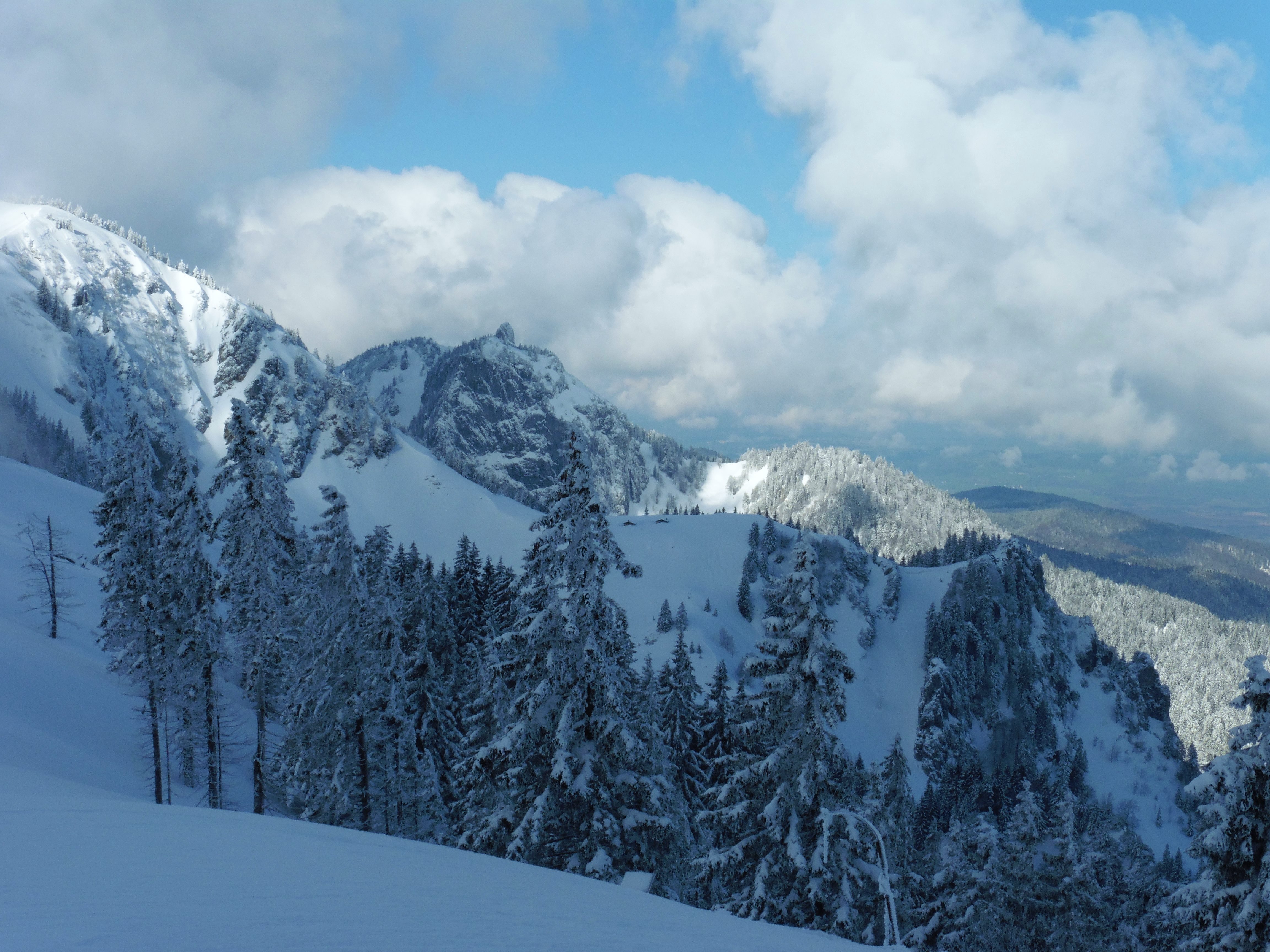 Gefahreneinschätzung: am Kamm zwischen Brauneck und Schrödelstein teilweise kompakter Triebschnee;