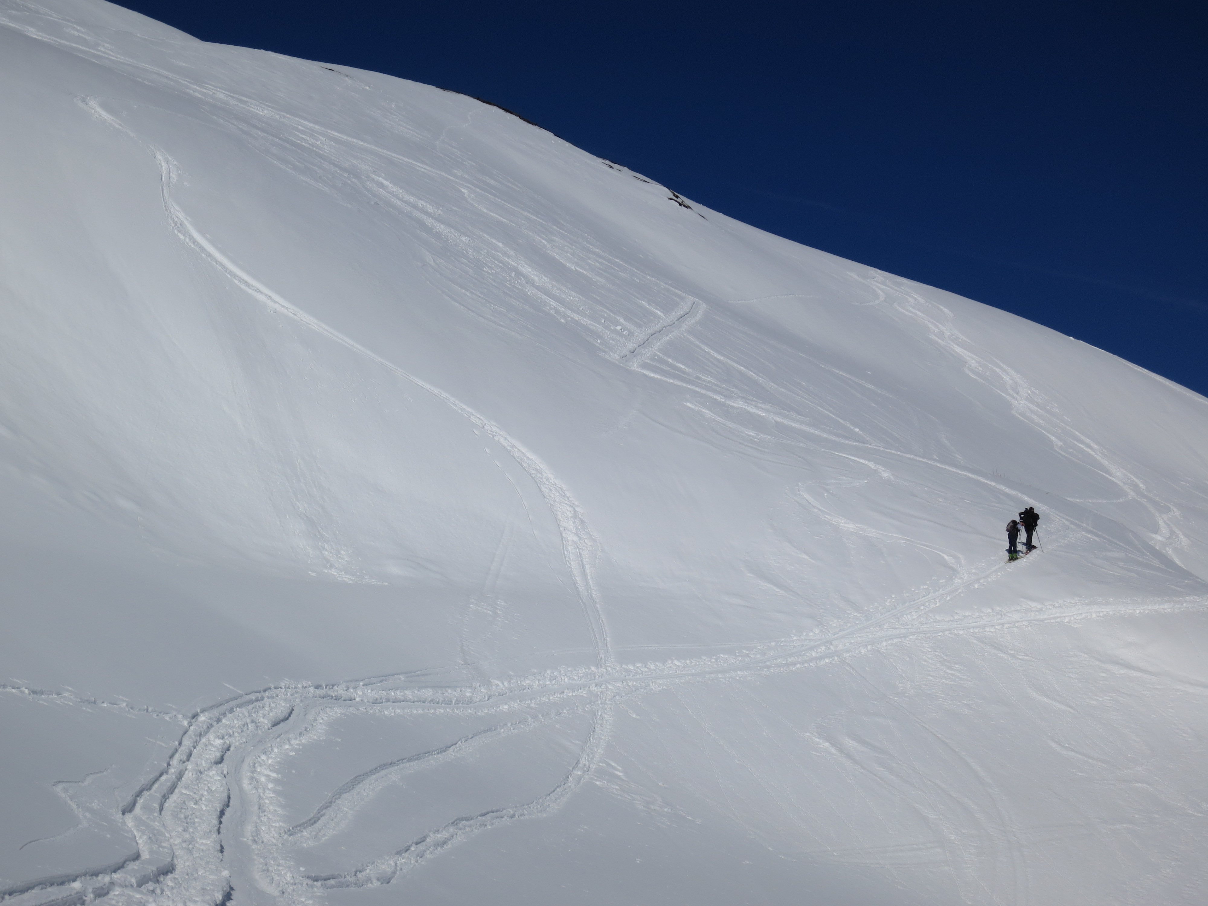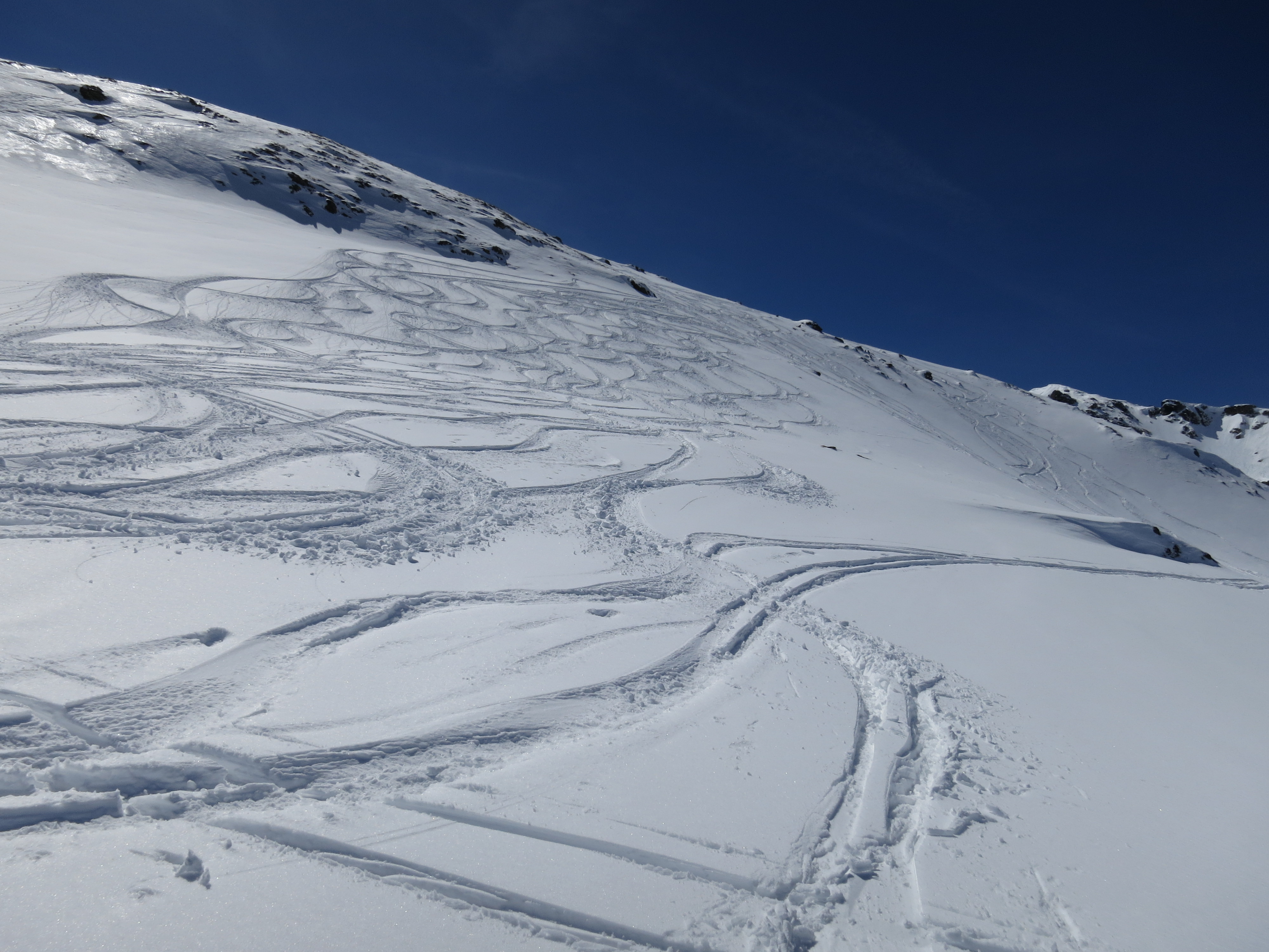 Prognose: auch morgen wird's ostseitig keinen Firn geben. Schnee liegt aber genügend - es geht noch eine Zeit lang.