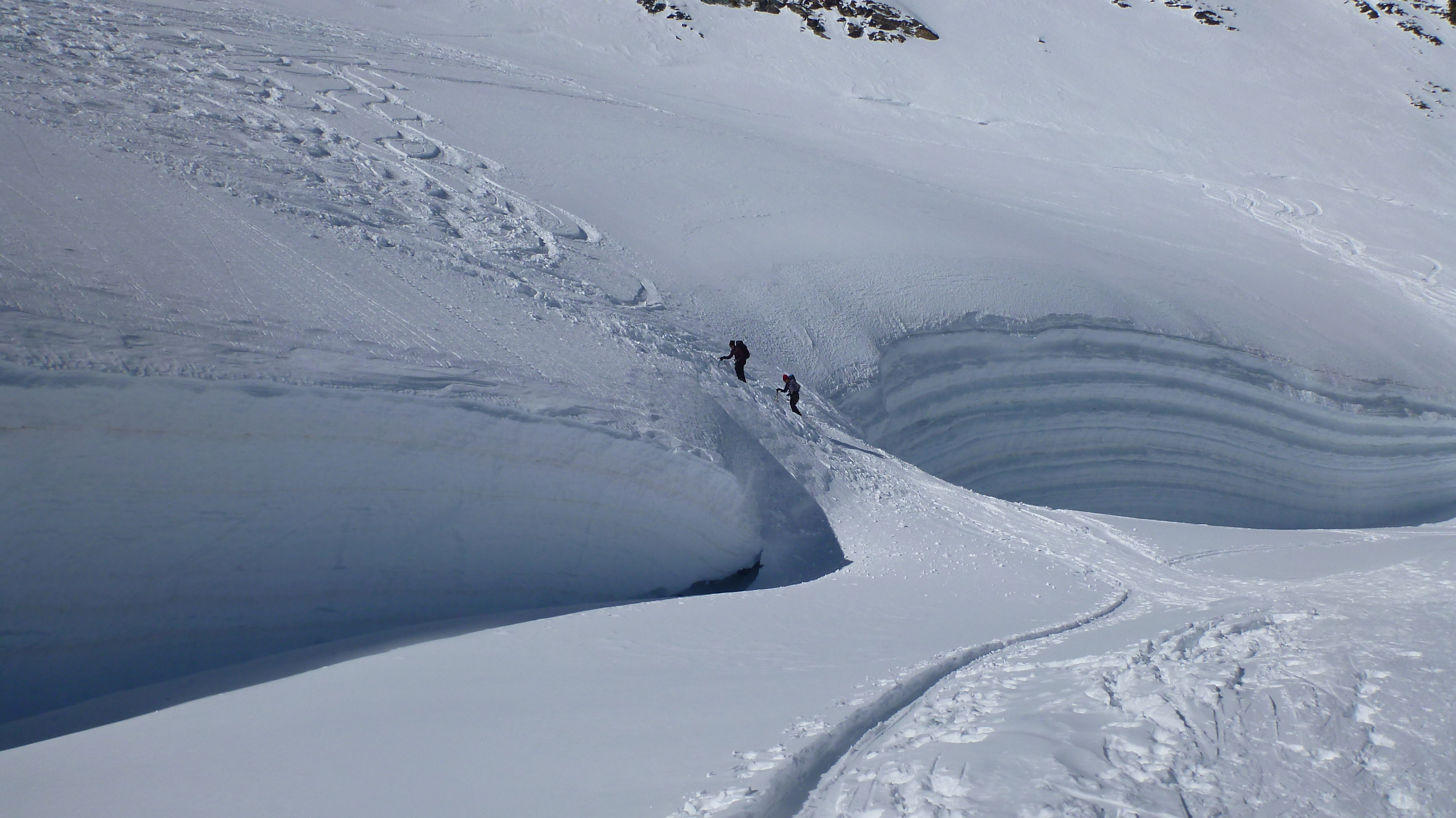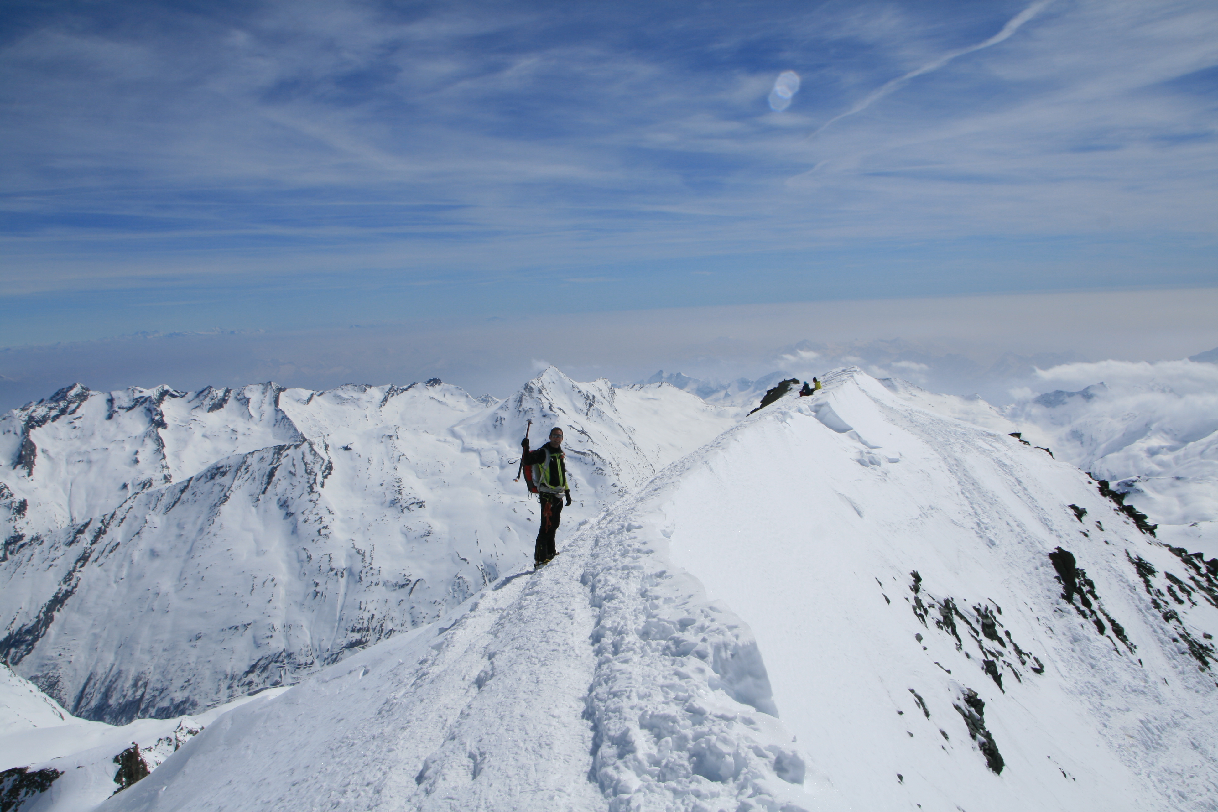 Gefahreneinschätzung: auf Gletscherspalten achten, Lawinengefahr Stufe 2