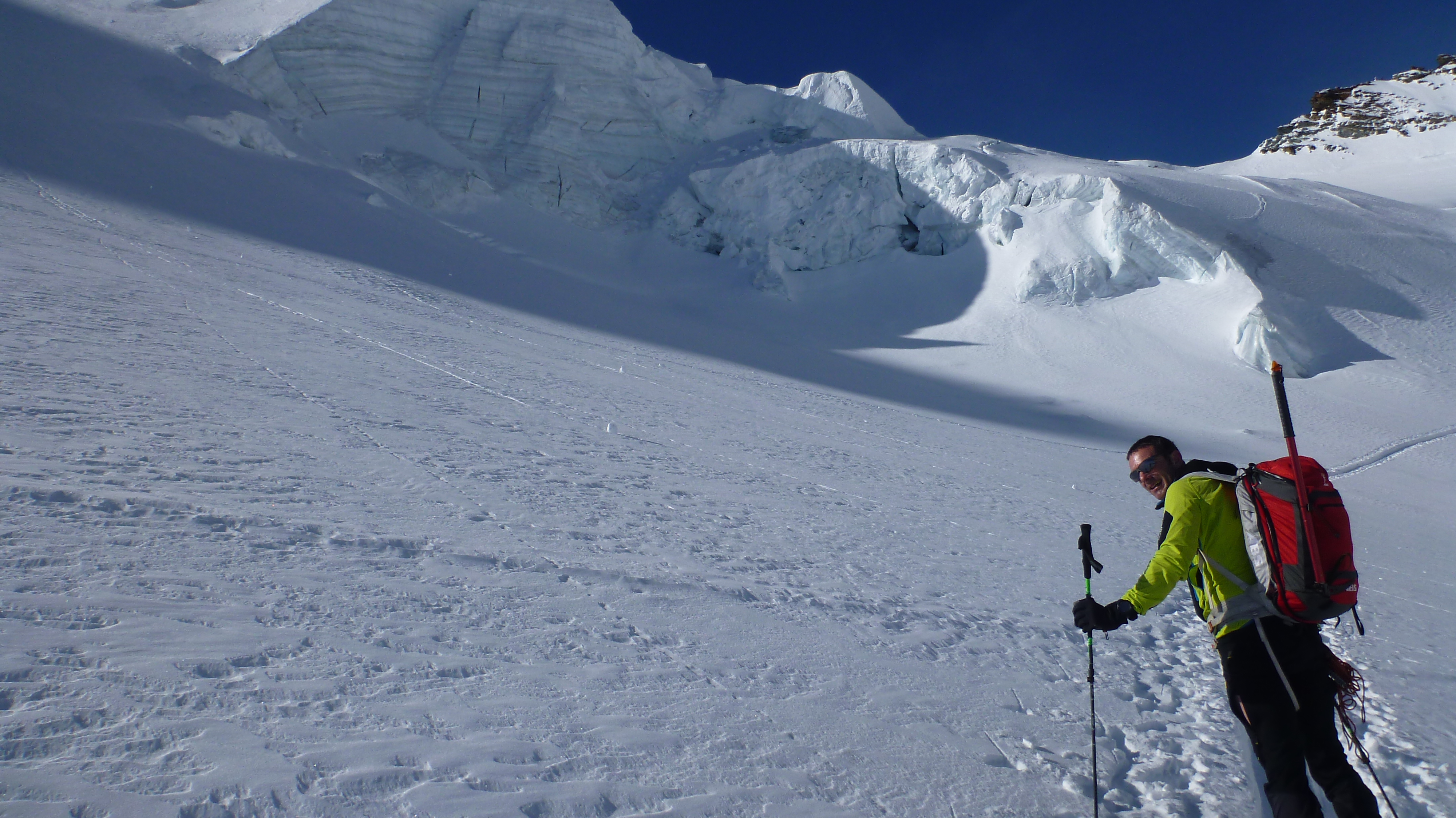 Gefahreneinschätzung: auf Gletscherspalten achten, Lawinengefahr Stufe 2
