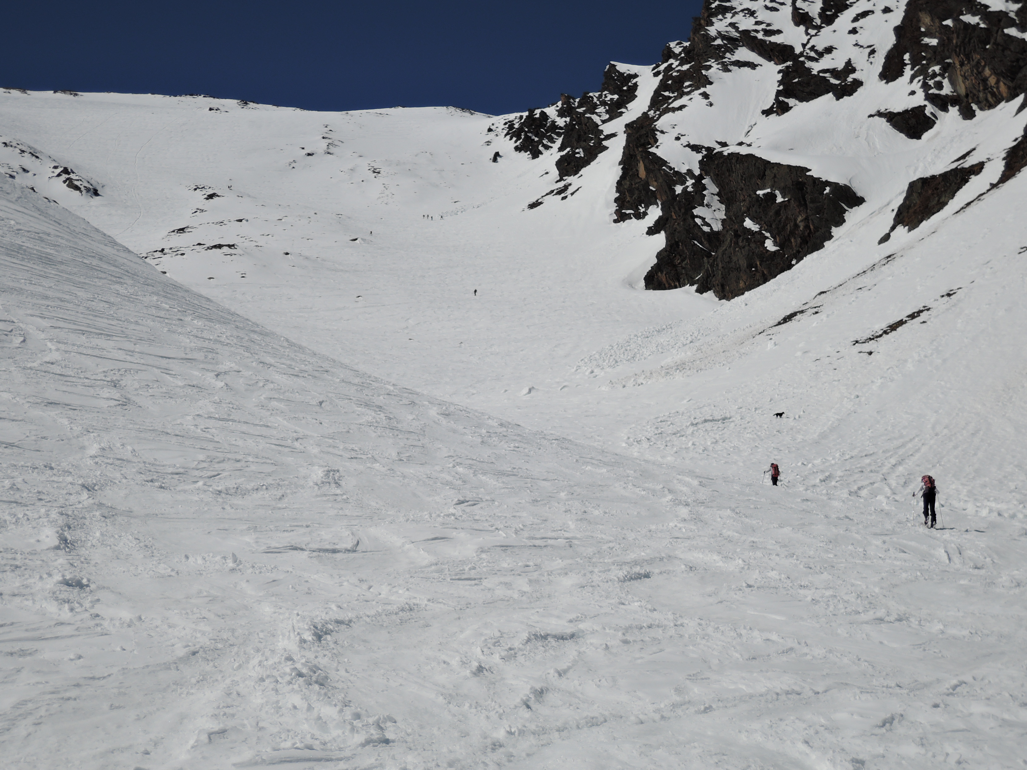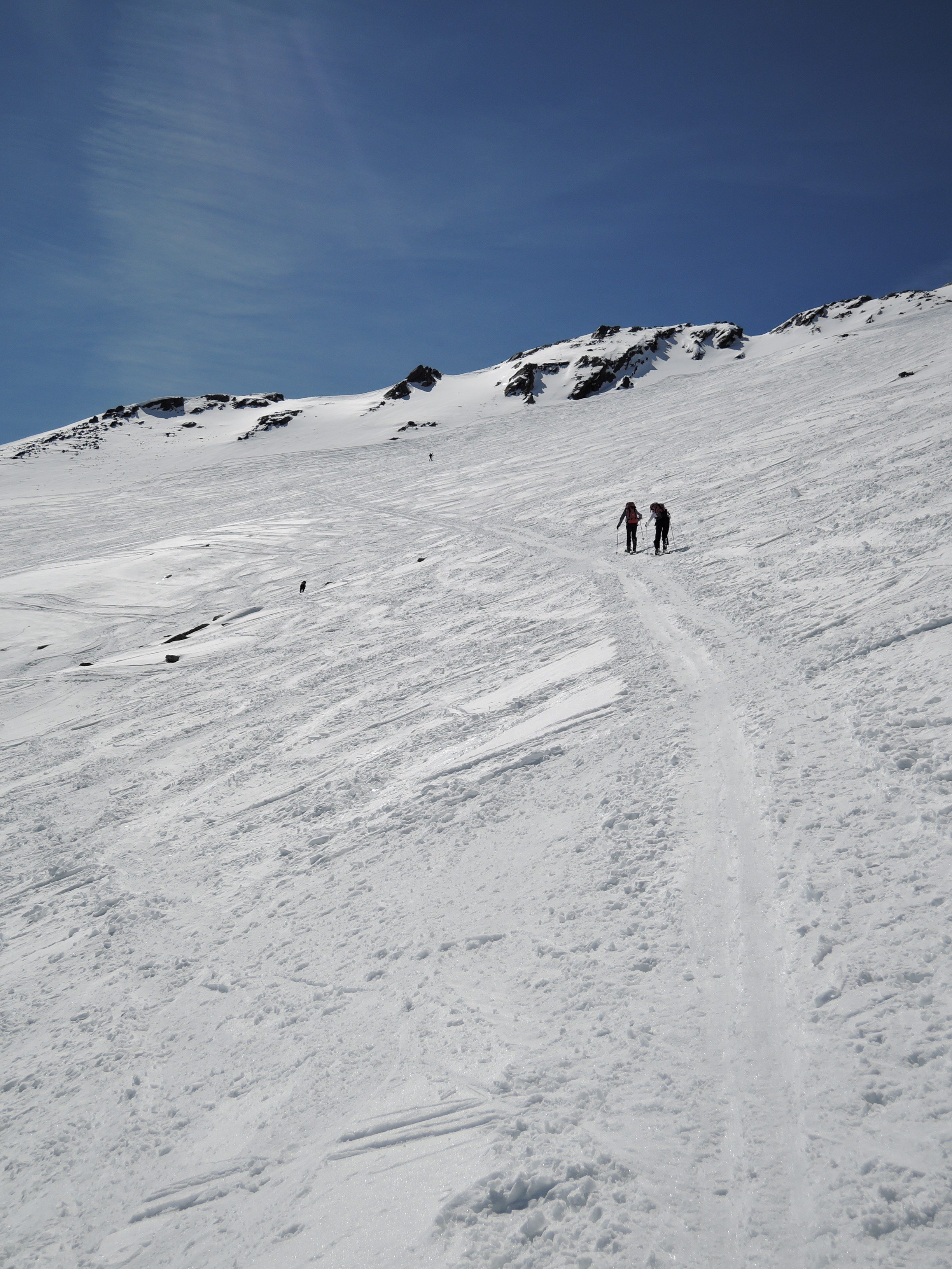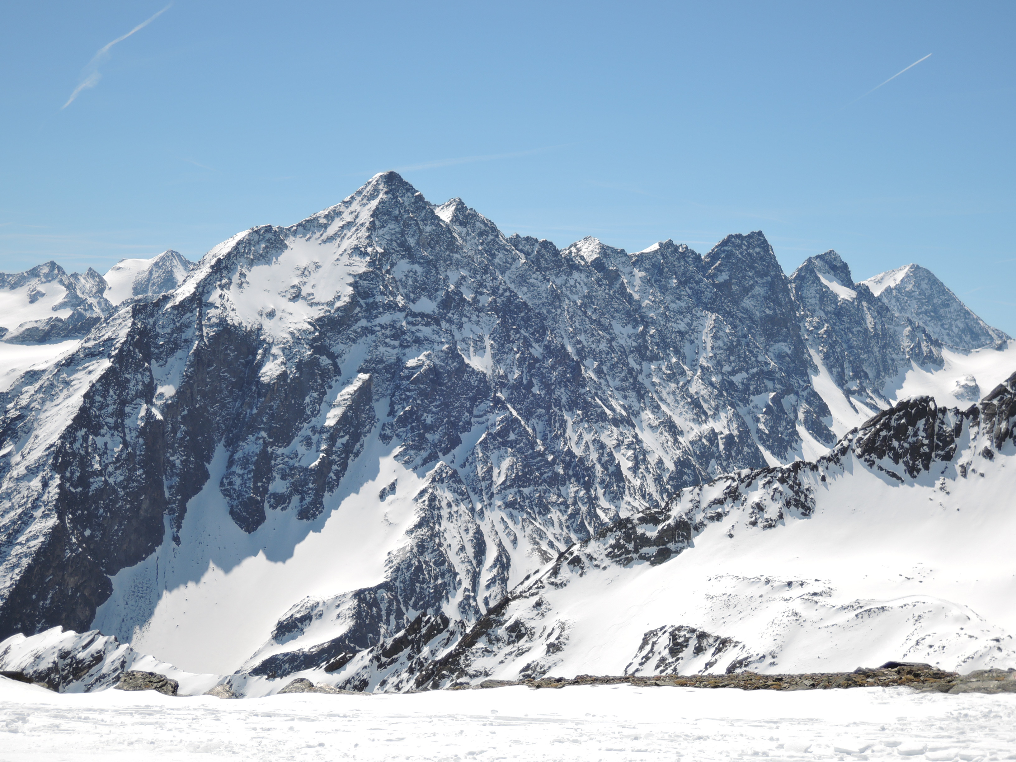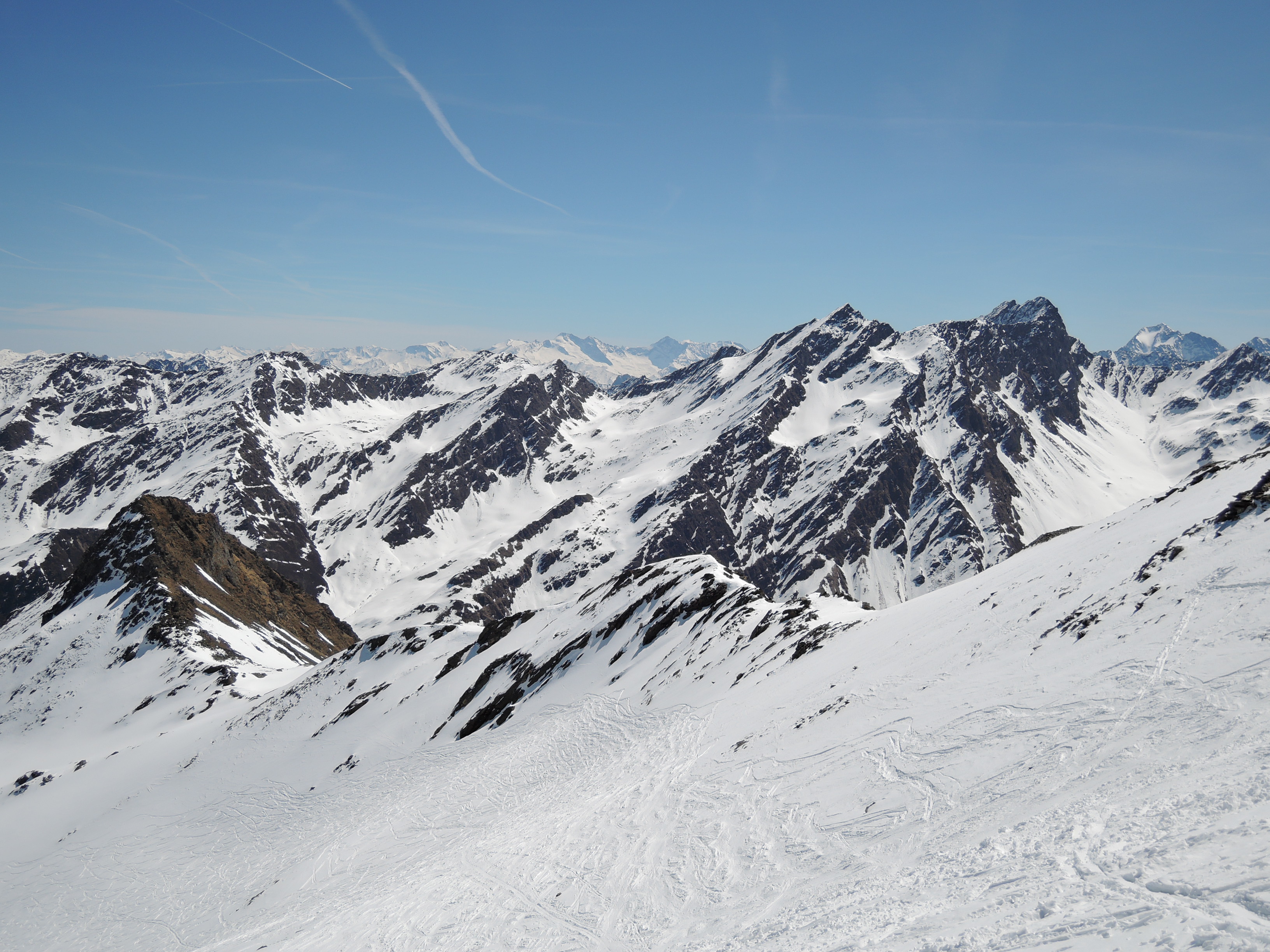 Tourenverhältnisse: Heute den so bekannten Zischgeles im Sellrain gemacht. Bedingungen trotz viel Sonne seit dem letzten Schneefall am Samstag immer noch ziemlich gut. Vom PP trägt man die Ski bis nahe der alten Liftstation und dann kanns auch schon losgehen. Wie am Sonntag schon berichtet ist der allermeiste Schnee an den Steilhängen abgegangen, also günstige Bedingungen. Aufsteigen ging sehr angenehm. Harscheisen sind nicht nötig. Ab Skidepot zum Gipfel ist der Weg griffig und gut zu gehen bis auf das Steilstück mit Kette und einen Felsen der zu überklettern ist. Heute perfekte Fernsicht bis Großvenediger und sehr schön auch das Karwendel auf der anderen Seite des Inntals. Die Abfahrt ein reiner Genuß. Es gibt zwar pistenmäßig eingefahren Passagen aber im oberen Drittel findet man auch noch tollen Pulverschnee. Weiter runter dann ziemlich angenehm zu fahrender Firn.