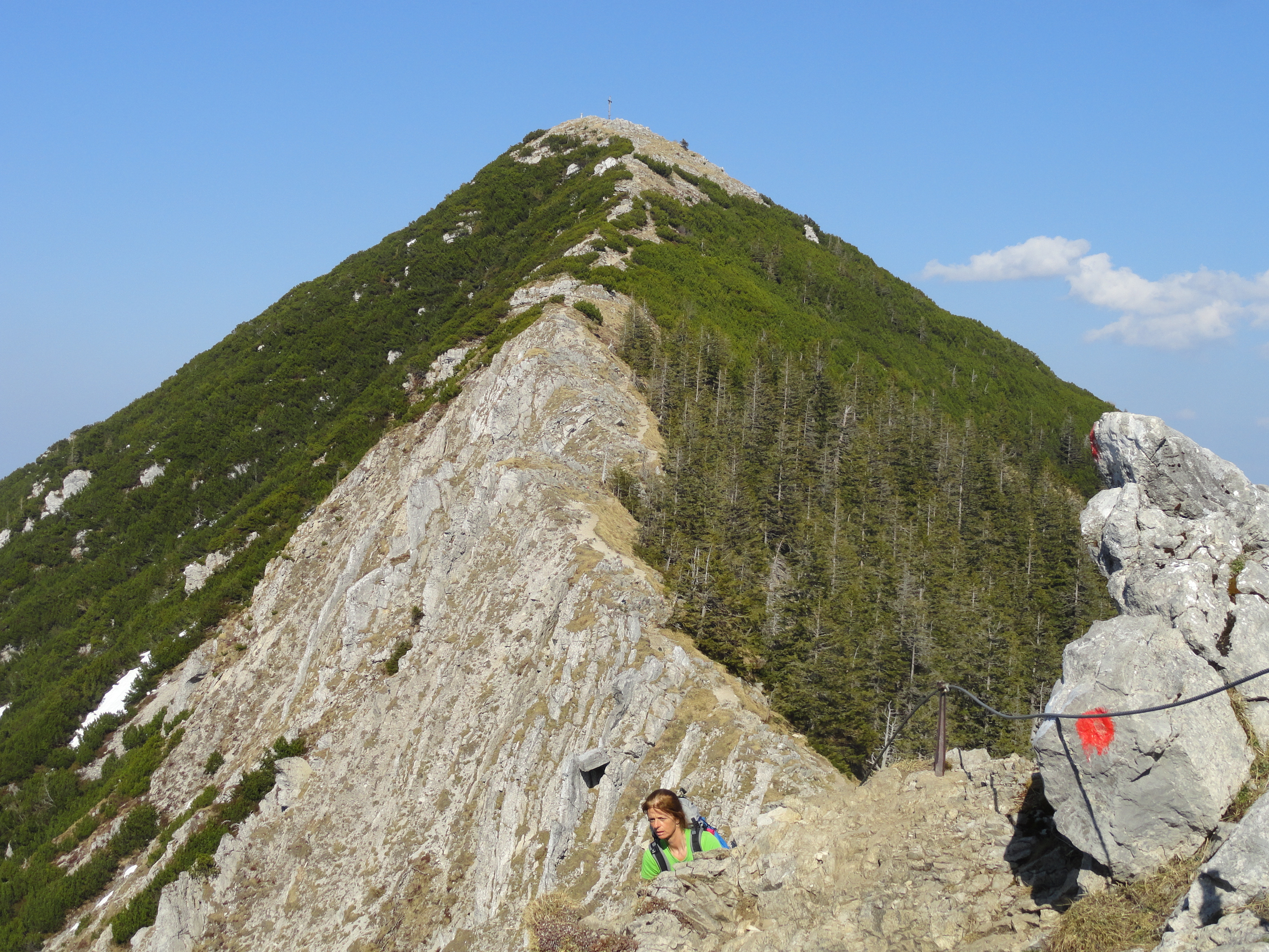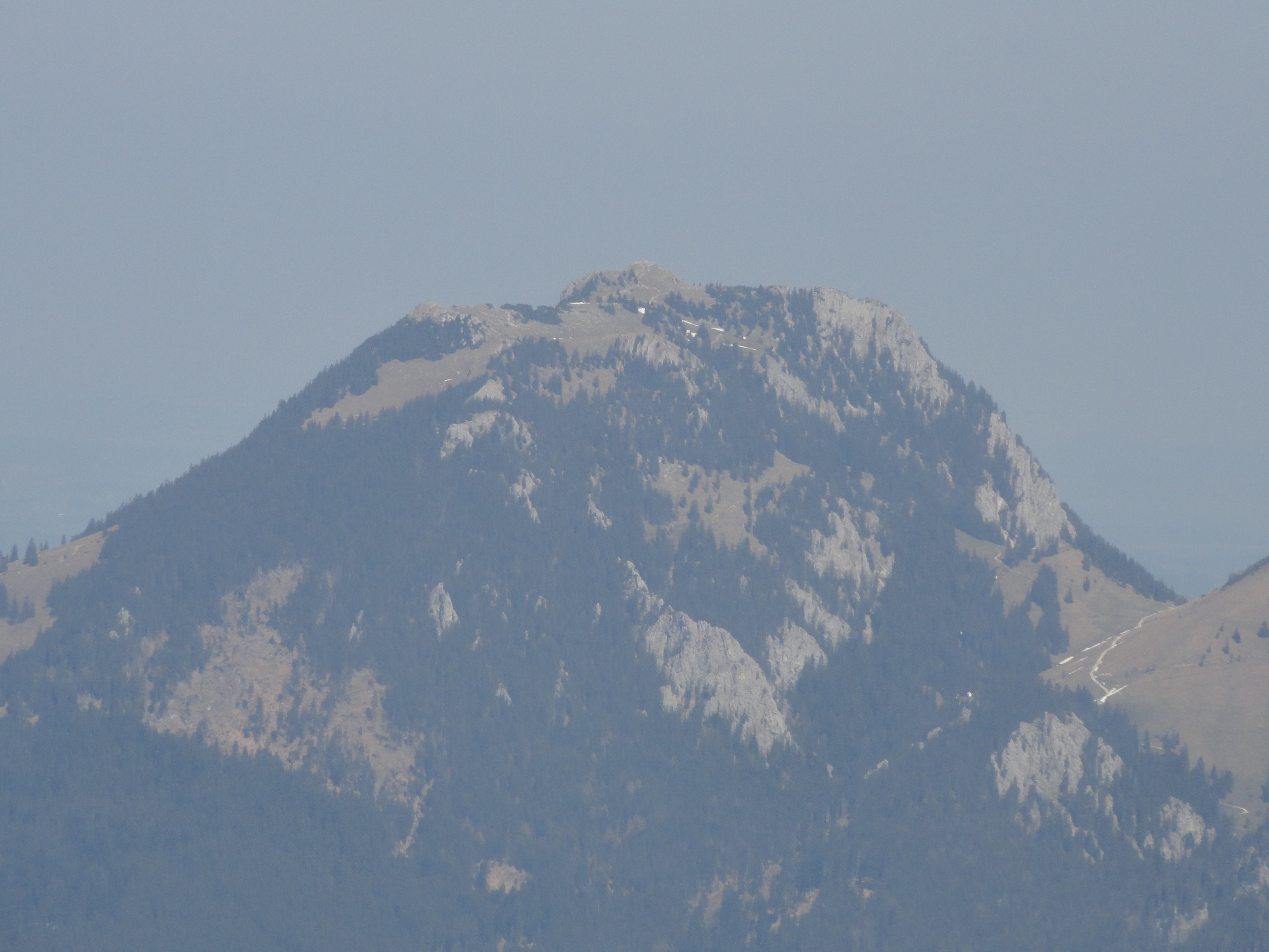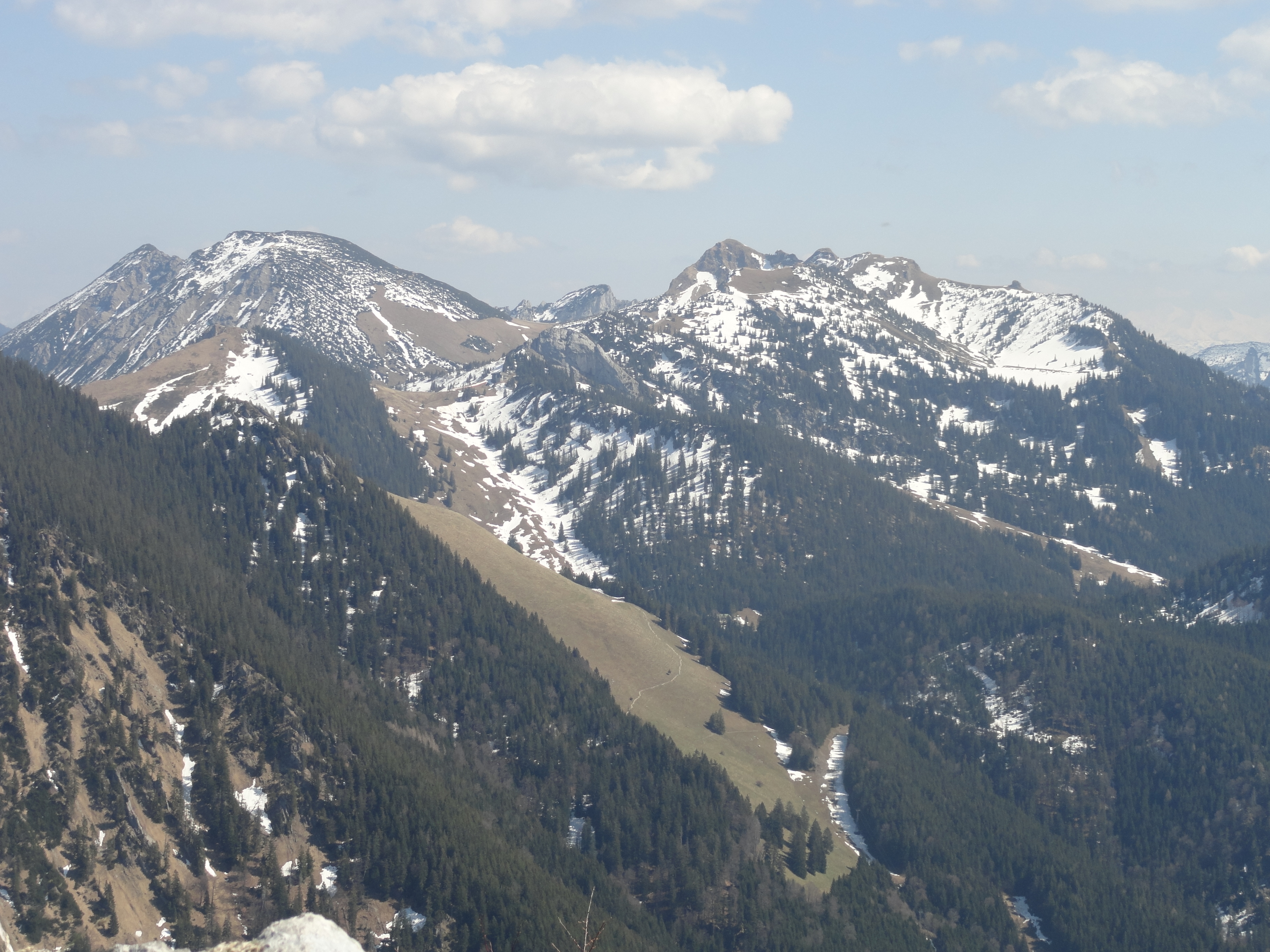 Tourenverhältnisse: bestens, der Aufstieg vom Spitzingsattel über den Südostgrat ist völlig schneefrei, erst im obersten Bereich, der gefahrlos ist, hatscht man durch zwei, drei kleine Schneefelder; Abstieg Richtung Westen/Obere Firstalm ist ebenfalls im obersten Bereich an den etwas ausgesetzten Stellen, wo die Seilsicherungen sind, schneefrei.