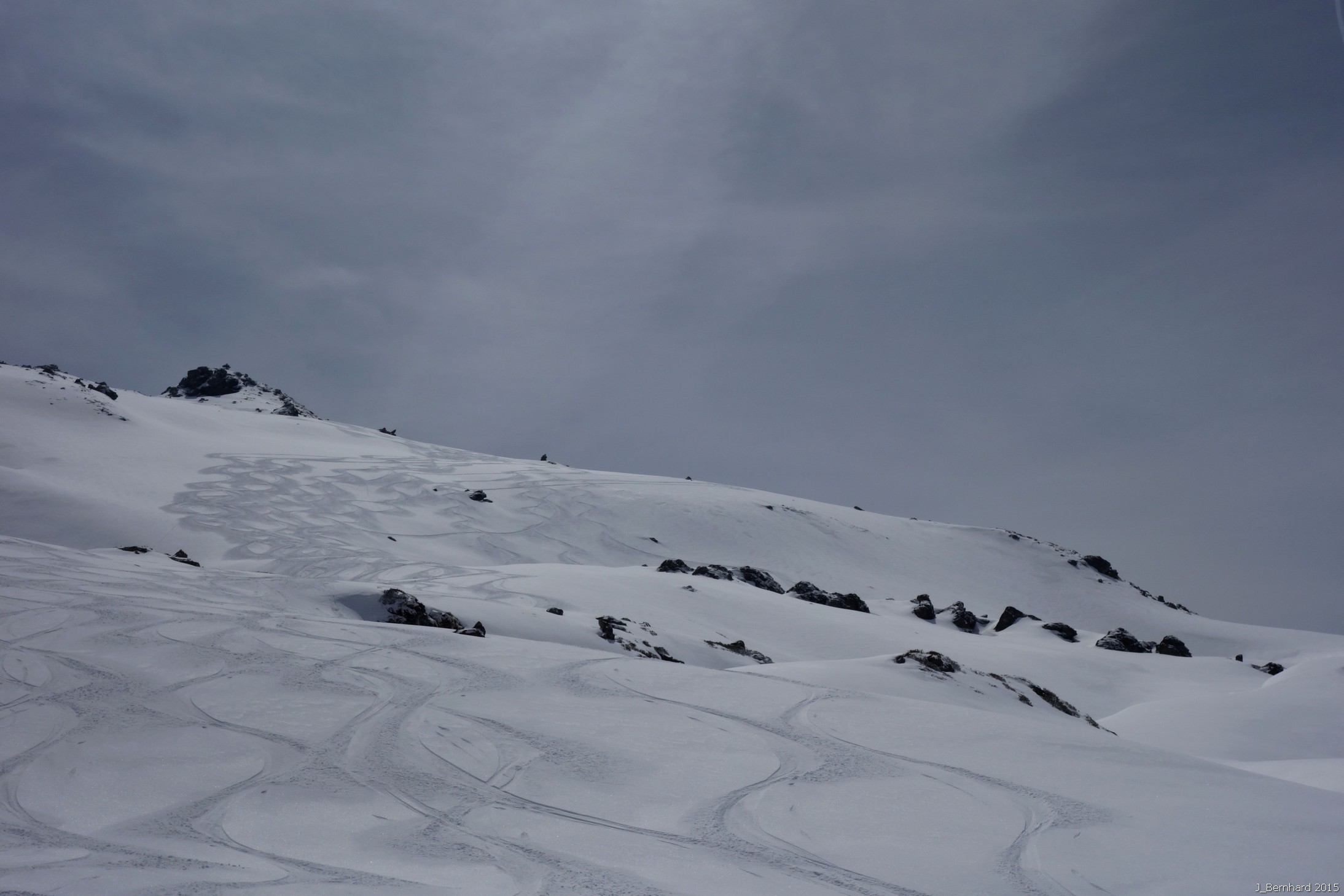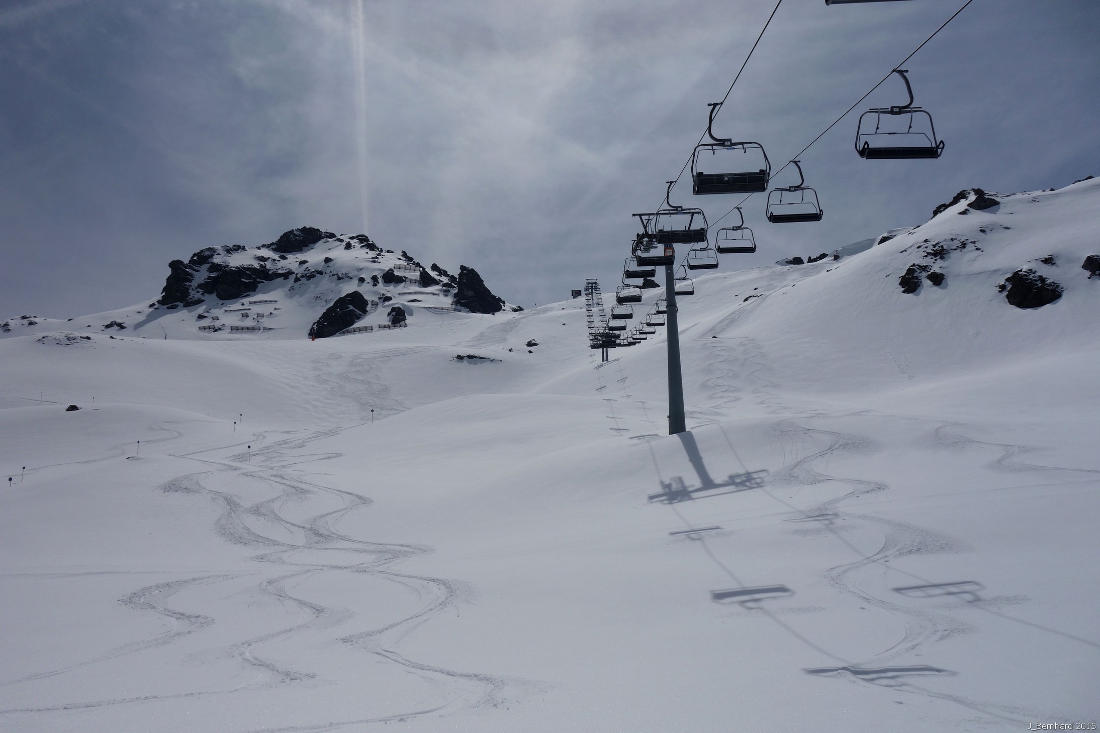 Meine Hoffnungen auf etwas frischen Pulverschnee haben sich erfüllt, mit zunehmender Höhe bis zu 10 cm auf festem Untergrund.