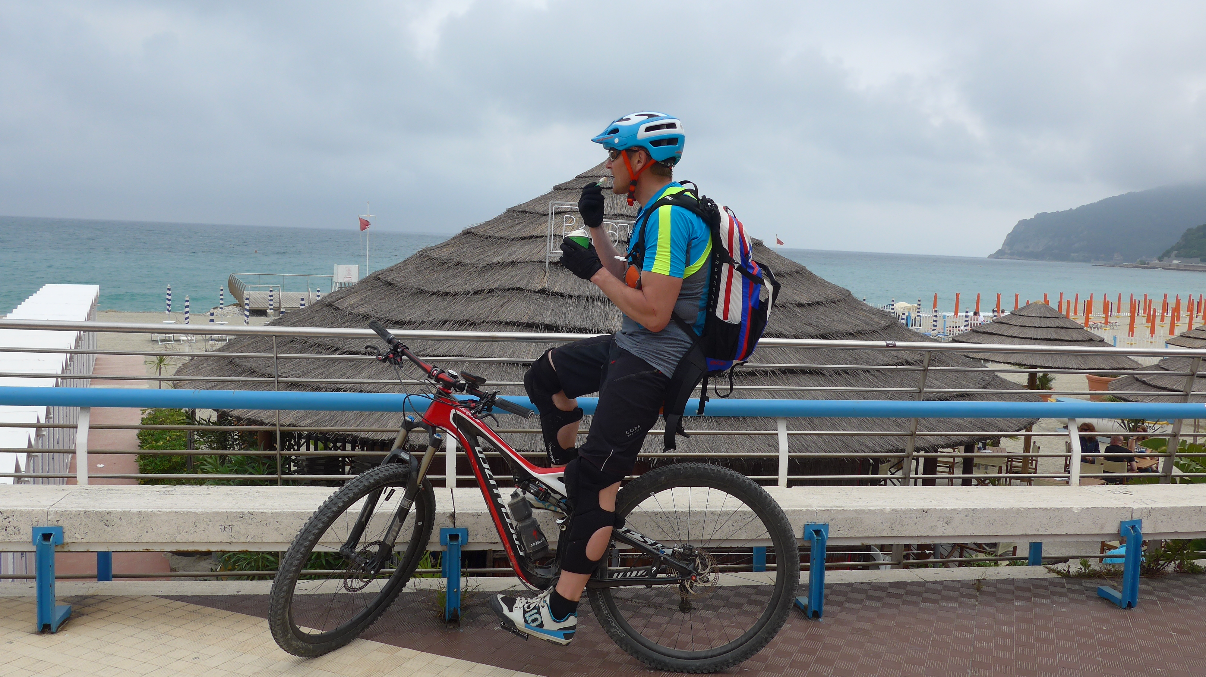 Strecke zum M. Mao etwas eintönig. Dann Abfahrt nach Spotorno ( Eis + Kaffeepause am Meer) super schön! Eindrückliche Ausblicke auf's Meer. Auffahrt auf Teerstraße nach Manie.