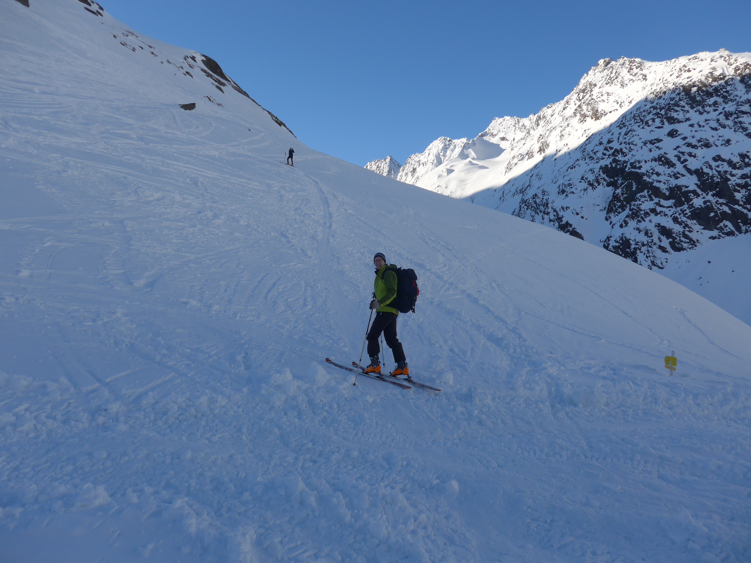 Sonstiges: lohnende Tour. Empfehlenswerter ist Aufstieg übers Langtal, dann nach Osten steil die Seitenmöräne hinauf: schneller, da keine ausgeapertern Stellen mit Ski-abnehmen und wieder einsteigen. Schöne, gastfreundliche Hütte.