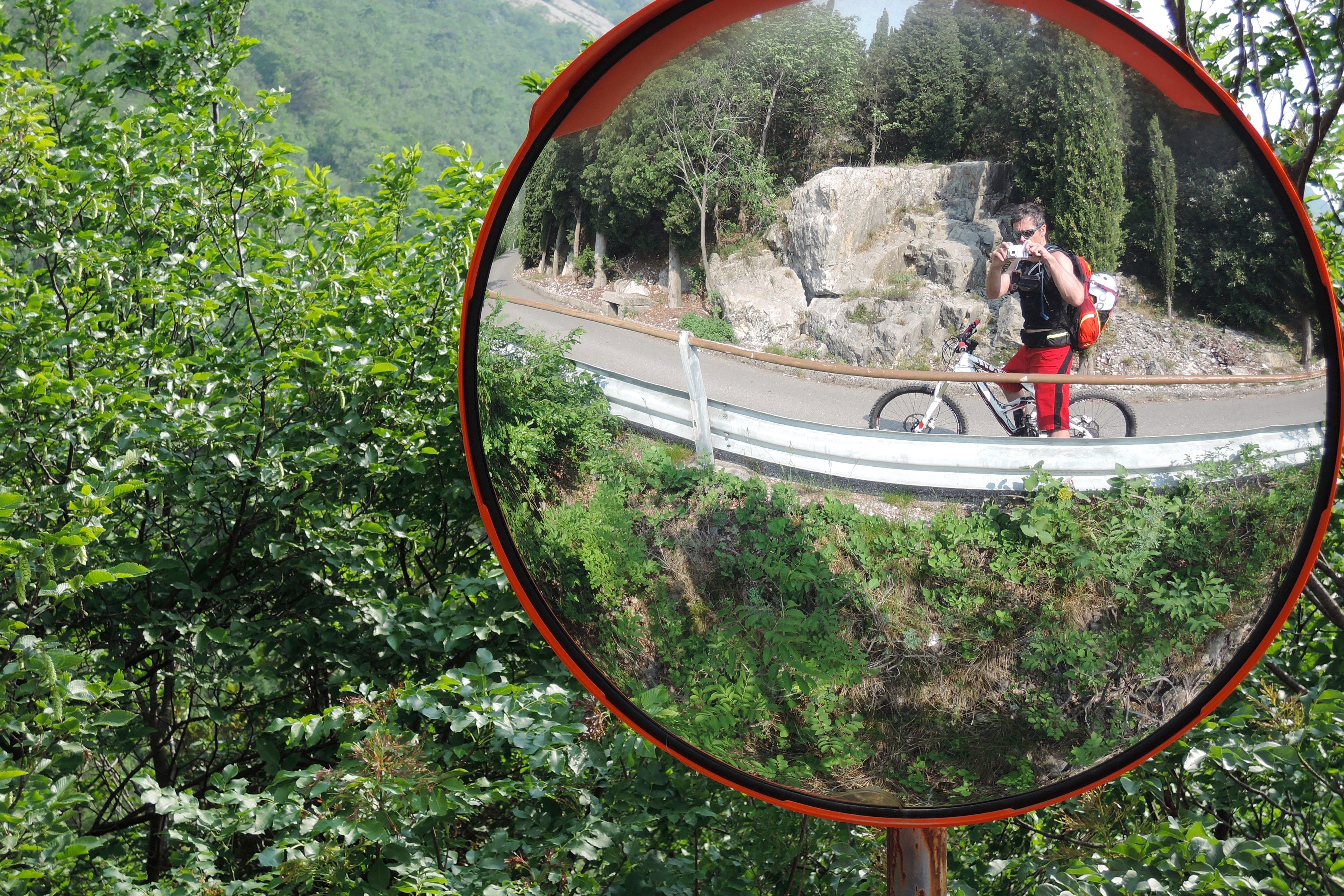 Runter von der Strasse links den zweiten Abzweig in den Trail. Nach der Querung der Strasse wird es ernst. Irgendwo bleibt das Vorderrad stecken und ich fliege… Später wieder durch die zum Fahren zu engen Schützengräben bzw. rechts daran vorbei. Danach entspanntes Trailen.