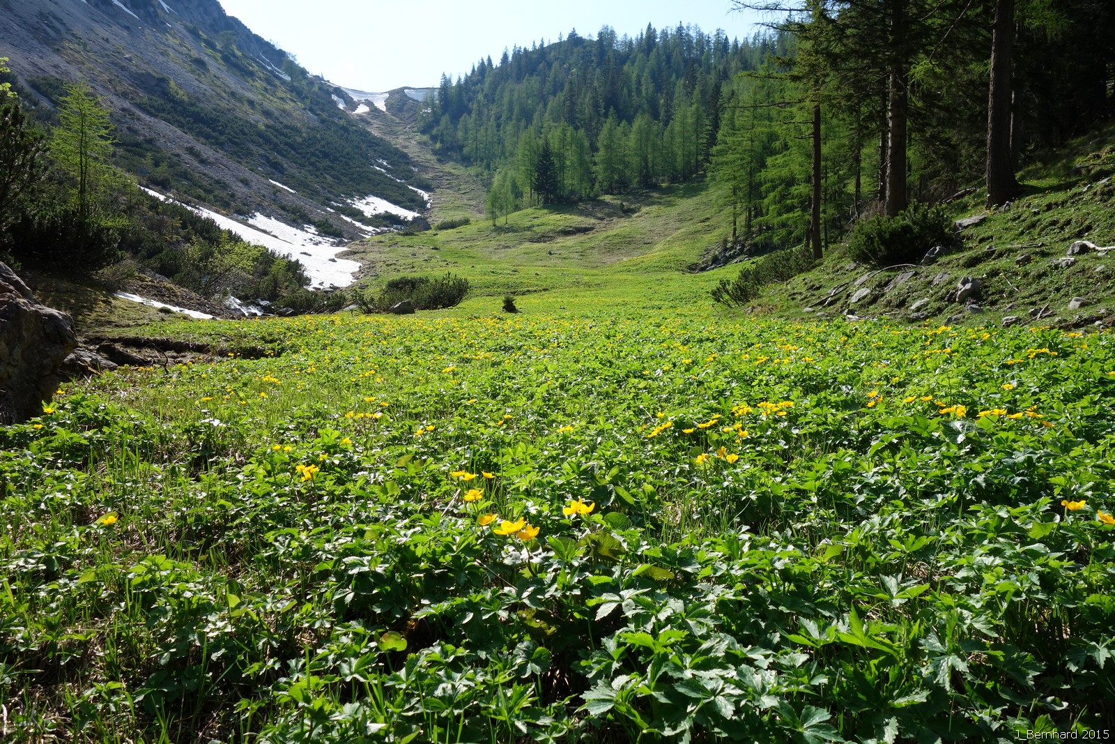 Vom Kohllahnersattel nach Osten fast weglos absteigen und den Pfadspuren bis zur Almstraße folgen, die zur Kohlalm hinunterführt.