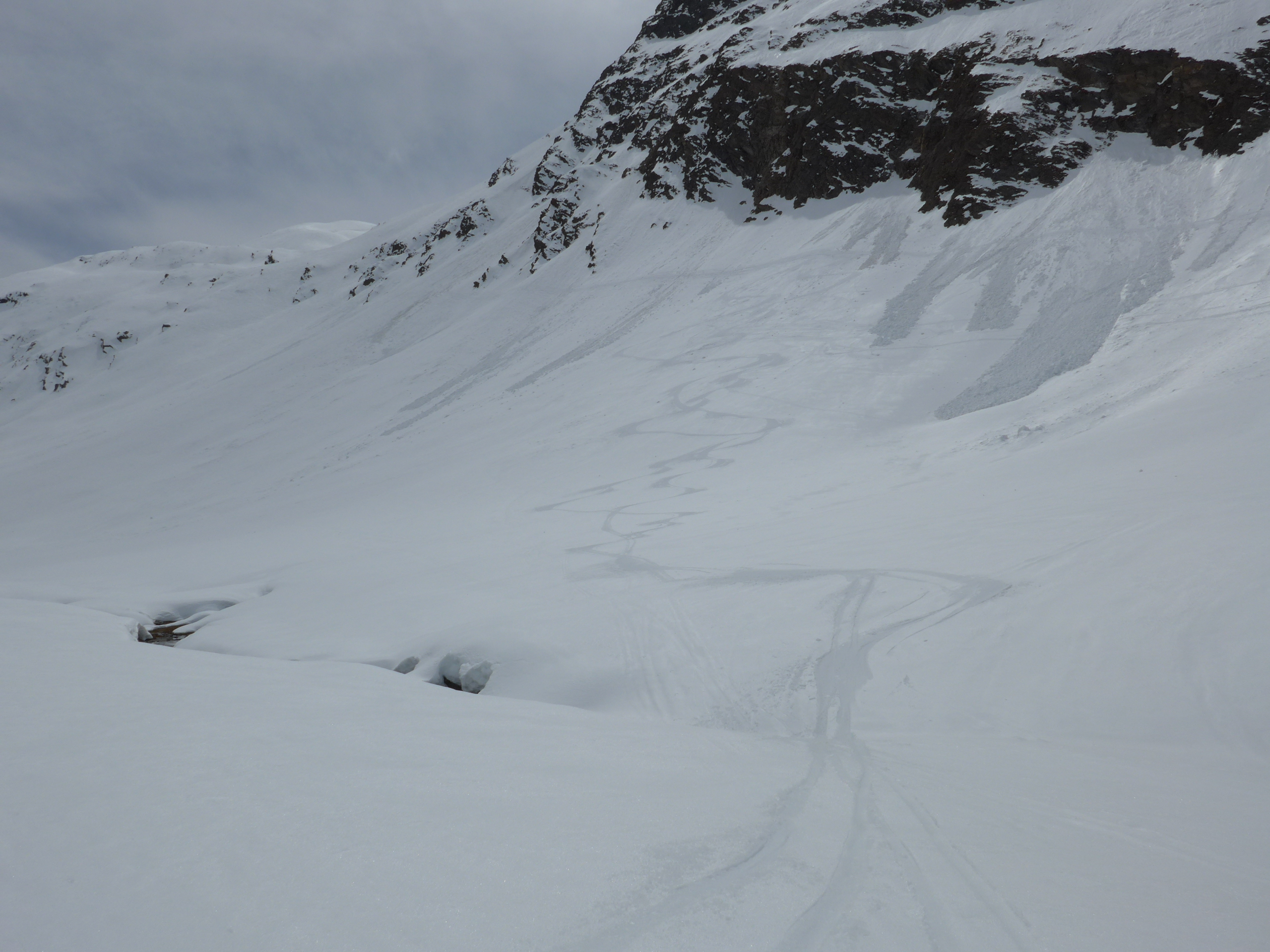Gefahreneinschätzung: Morgens 1-2, nachmittags Wärme bedingt 2-3,v.a. im Ost-orientierten Steilhang zum Rotmoostal.