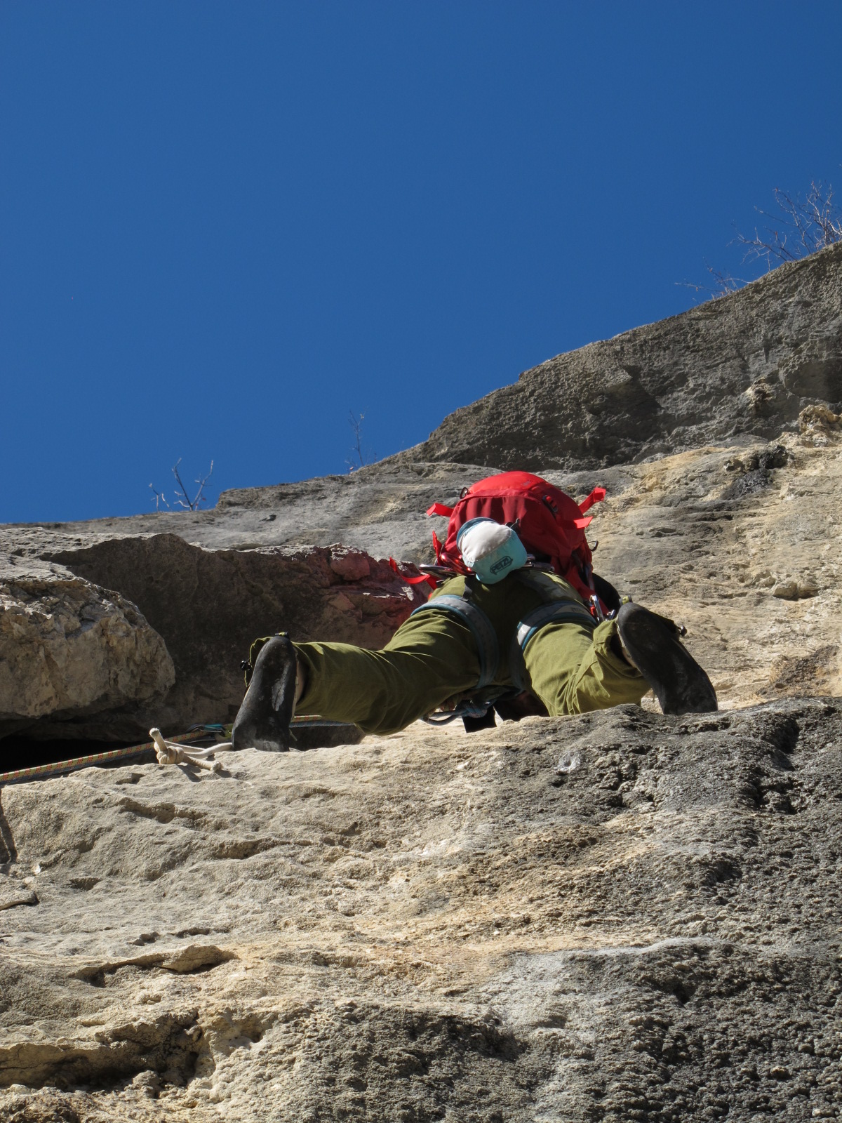 Gefahreneinschätzung: Standplätze mit Bohrhaken, Zwischensicherungen ein Mix aus Normalhaken, Bohrhaken und fest angebrachten Sanduhrschlingen. Ein paar Keile sollten dabei sein.