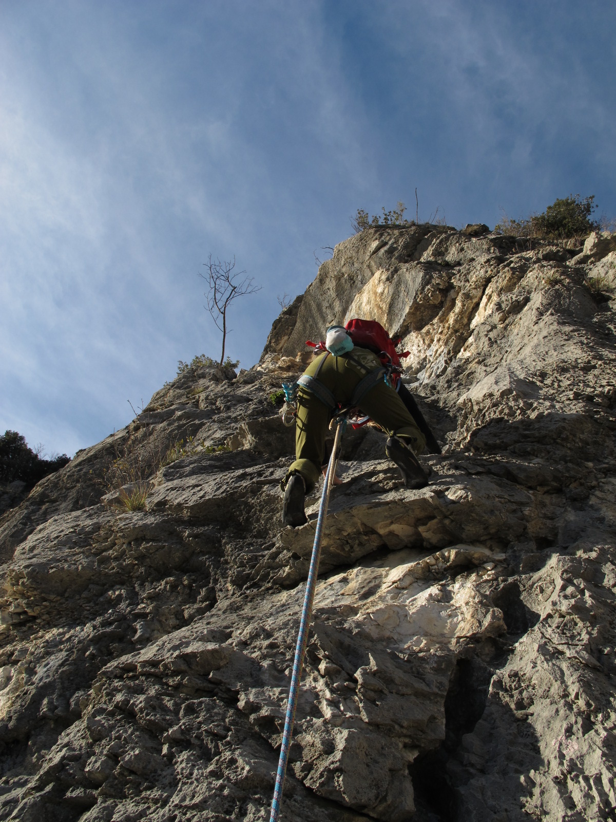 Sonstiges: Superschöne alpine Kletterei, Risse, eine schöne Piazschuppe(VI), Verschneidungen und schöne Wandstellen, Abstieg nach rechts haltend über Wanderweg und leichten Klettersteig nach Dro, 1 Stunde knapp.