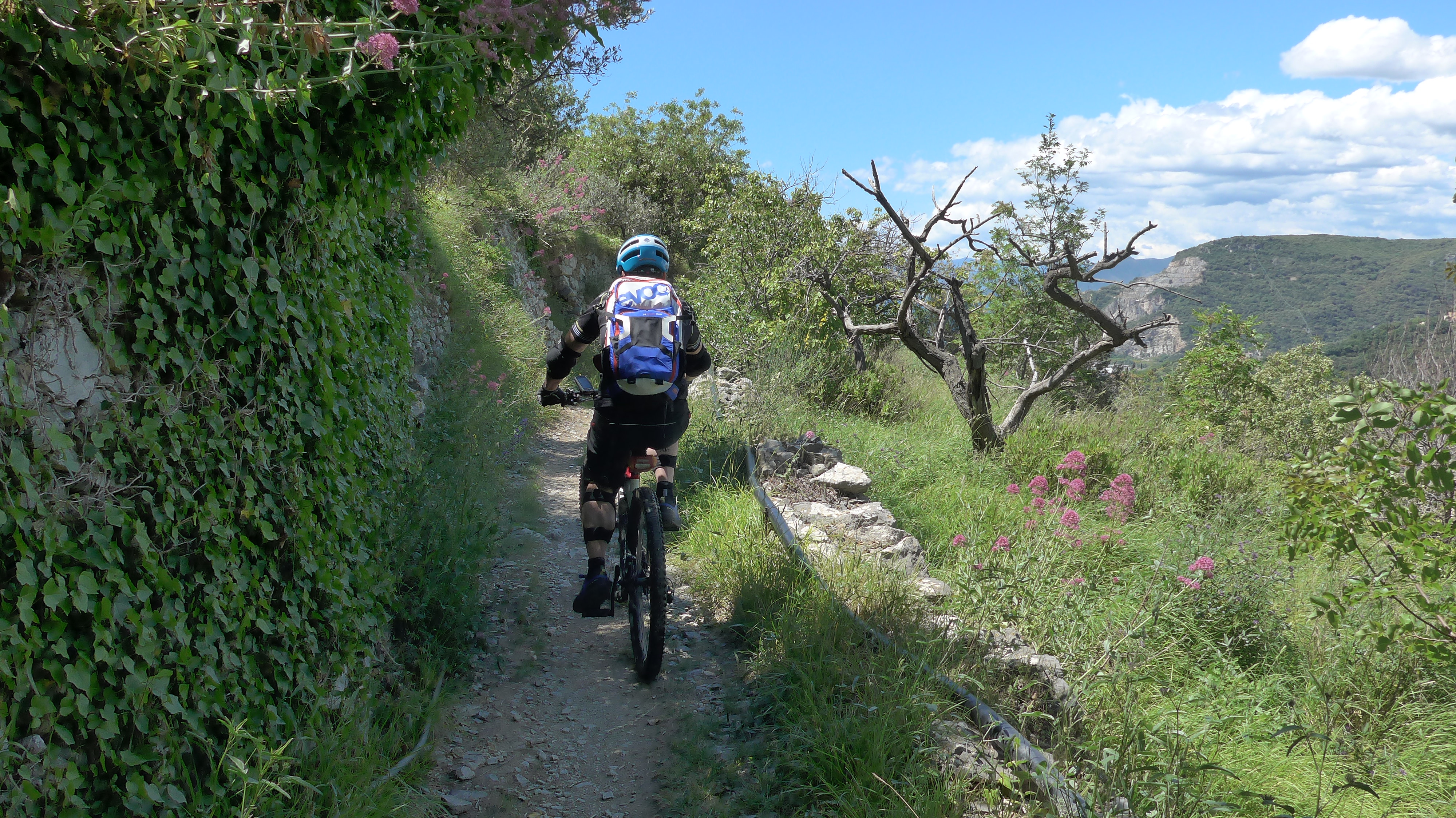 Kurze einfache Trailabschnitte in der Auffahrt. Übung macht den Meister :-). Am höchsten Punkt Möglichkeit der Einkehr in einer alten Trattoria.