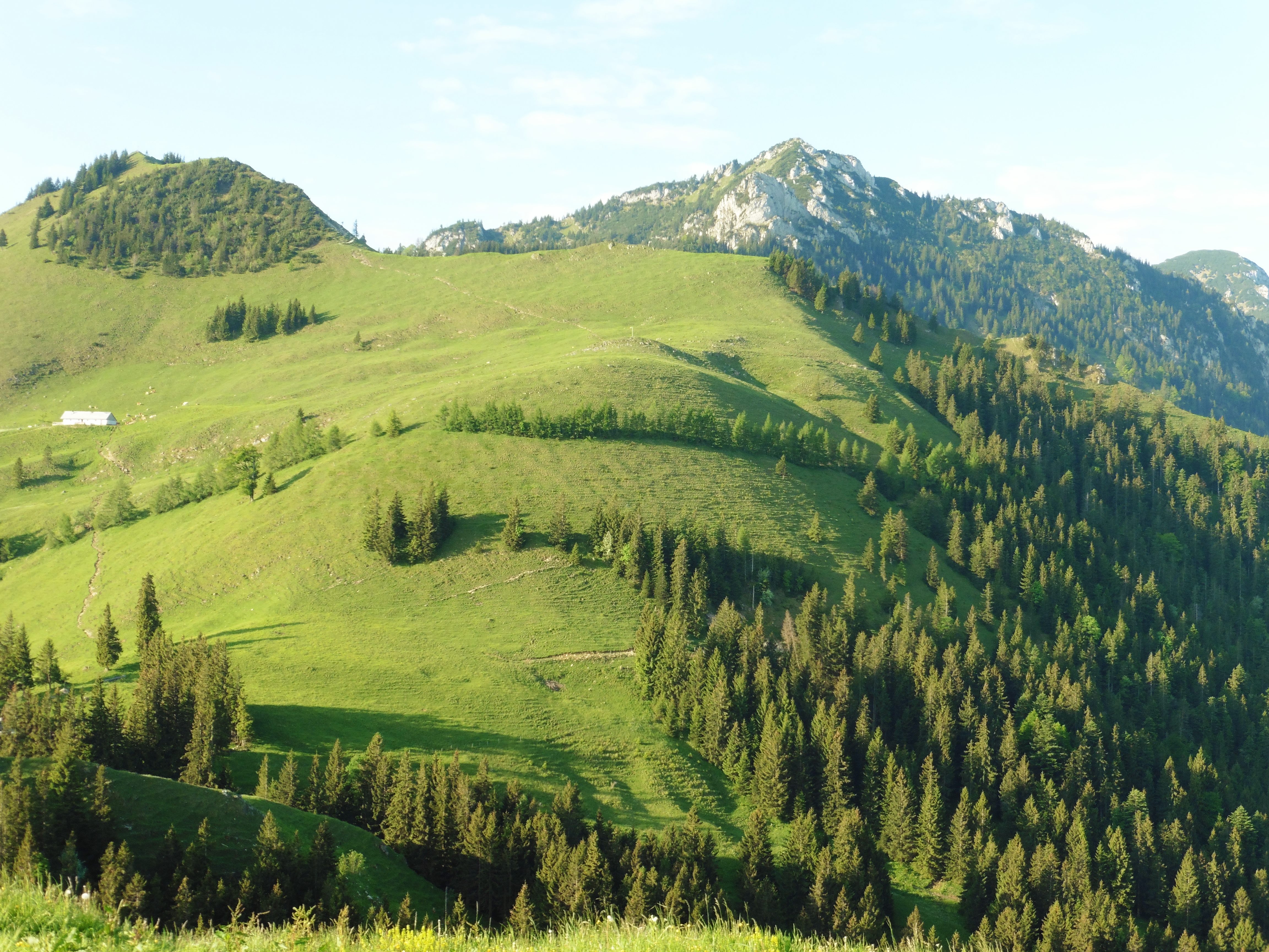 zu Bild 1: Blick vom Mitterberg zur Rampoldplatte (links ) und Lechnerkopf / Hochsalwand (rechts);