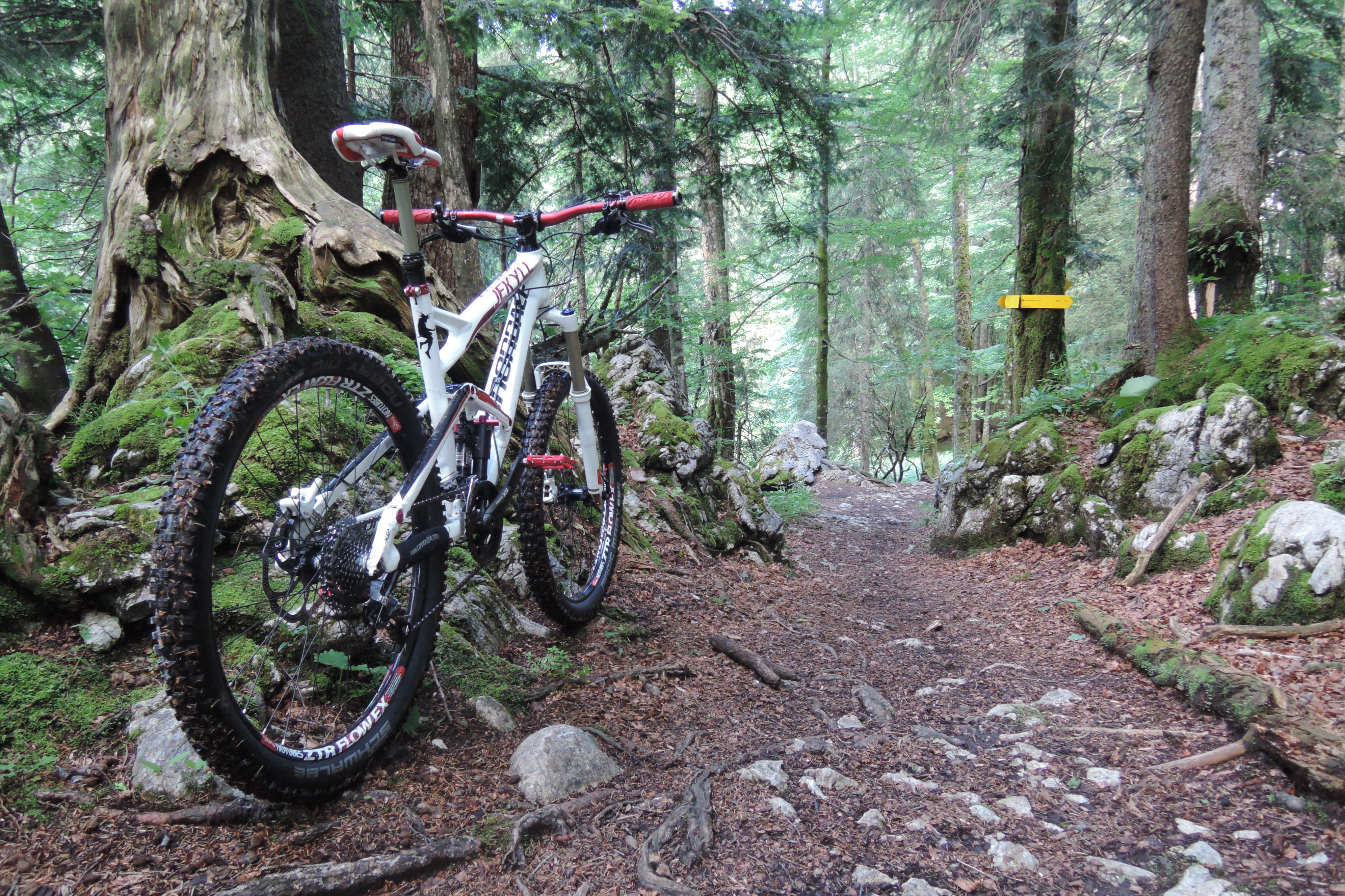 Sonstiges: Von Kreuth (780m) auf dem Radweg die Weissach entlang Richtung S nach Wildbad Kreuth (820m). Von dort weiter Richtung Klamm, bald den Abzweig rechts auf den Singletrail direkt am Fluss entlang. Bei Klamm (830m) über die Brücke und auf den 604er Richtung Schwarzentenn. Am Abzweig auf 990m rechts Richtung Leonhardstein die Forststrasse steil hoch bis zum Abzweig auf 1170m rechts Richtung Kreuth. Über den Bach und nach links in den Leonhardsteintrail. Wo der Trail mal nicht verblockt war, war er meist so richtig sumpfig – fast bis runter nach Kreuth.