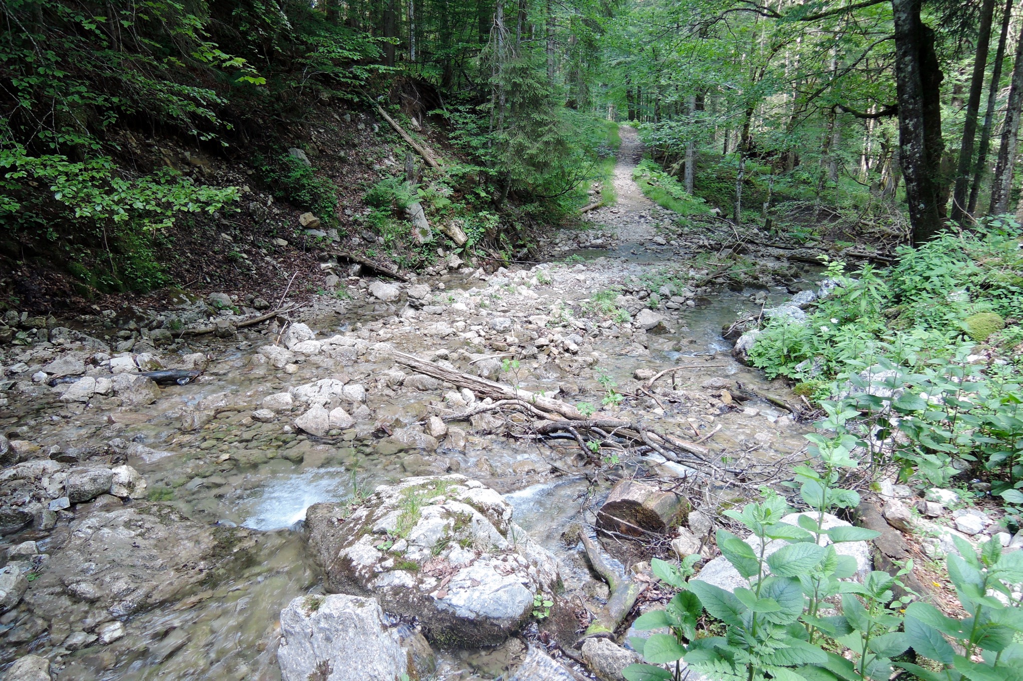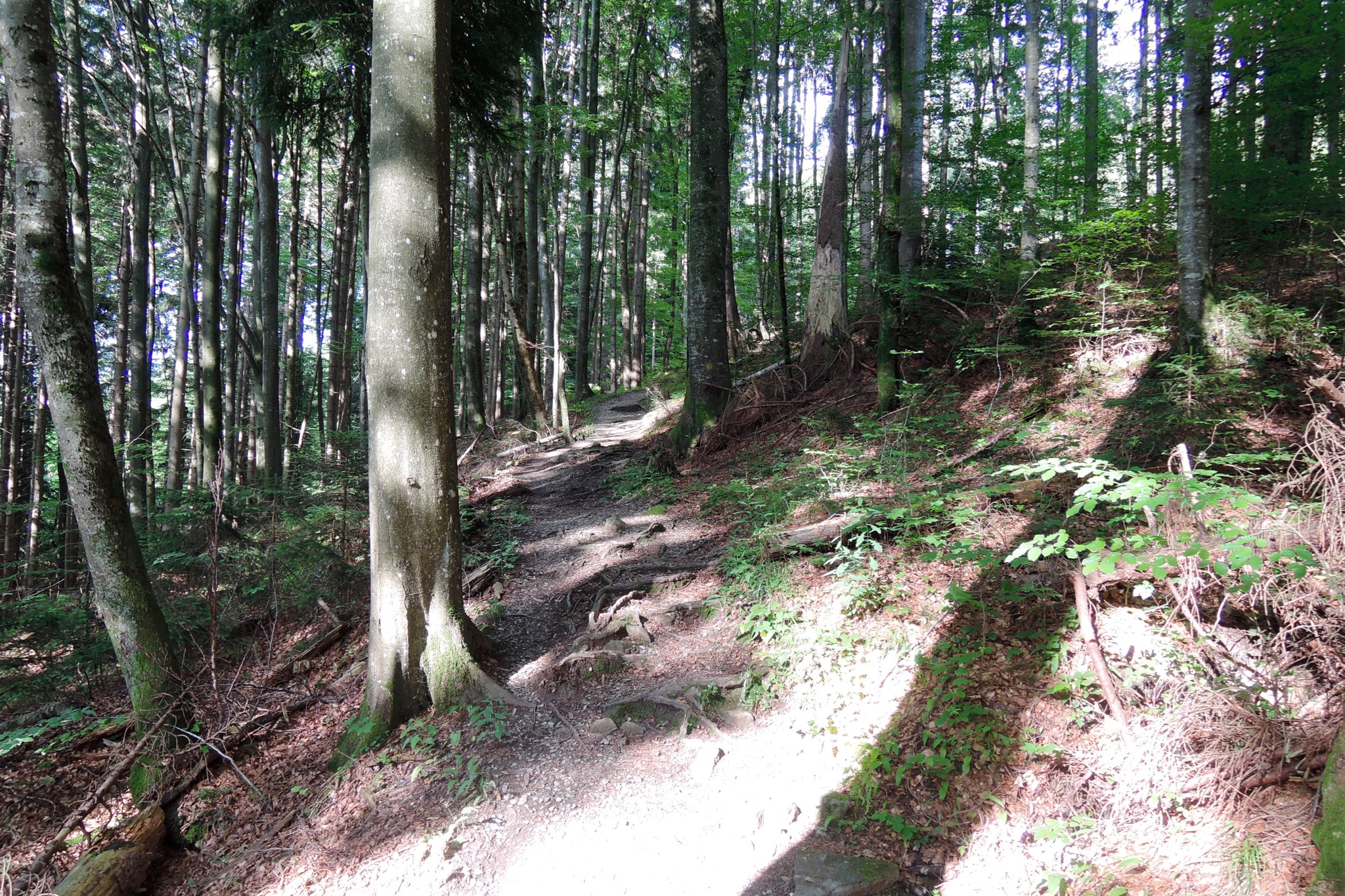Sonstiges: Vom Maibaum in Benediktbeuern (630m) zum Kloster und weiter Richtung W durchs Moos zur Loisach. Dort rechts Richtung NO den sehr schönen Singletrail entlang bis Schönmühl (600m). Dort Richtung O zur Strasse hoch und neben dieser auf dem Radweg 1km Richtung S. In den links einmündenden Forstweg hinüber gewechselt und den manchmal etwas eingewachsenen Singletrail entlang des Steinbach Richtung S, über die B11 hinweg, bis Hofstätt/Bichl. Auf dem Hinterholzweg weiter Richtung S bis Gschwendt (660m). Hier links Richtung SO auf die Forststrasse Richtung Arzbach, kontinuierlich bergauf. Bei der Nußstauden (980m) hat der Anstieg ein Ende, jetzt links weiter Richtung Arzbach, kurze Steigungen wechseln sich mit Flachstücken ab. Nach einer Abfahrt mündet die Forststrasse auf 1010m in einen kurzen Trail, der nach einem kleinen Anstieg auf einer Forststrasse mündet. Hier links Richtung Tutzinger Hütte. An der Melcherstefflalm rechts Richtung SW Richtung Tutzinger Hütte. Bis zur Sattelalm (1100m) gibt es nochmal ordentlich Prozente. Abwärts weiter Richtung SW Richtung Tutzinger Hütte/Benediktbeuern. Auf 1030m rechts hinunter Richtung Benediktbeuern über den Bach, drüben auf den Singletrail, der nach wenigen Metern hinauf und wieder hinab an der breiten Furt den Sattelbach quert. Danach mündet der Singletrail auf der Forststrasse zum Elend (960m). Von dort gehts zusehends steiler und schottriger ins Lainbachtal hinab zur Kotleine (832m). Auf der Schotterstrasse das Lainbachtal abwärts Richtung NW bis Maria Brunn in Gschwendt (660m). Es geht weiter Richtung SW zum Warmbad, dahinter links rauf Richtung Pessenbach nach Pfisterberg (700m). Auf 720m geht der steile, mit Wurzelteppichen und Felsblöcken garnierte Singletrail rechts hinunter nach Pessenbach (640m). Von Pessenbach Richtung NW über die B11 und in einem weiten Bogen Richtung NO drehend zurück zum Kloster und auf dem Prälatenweg zum Maibaum.