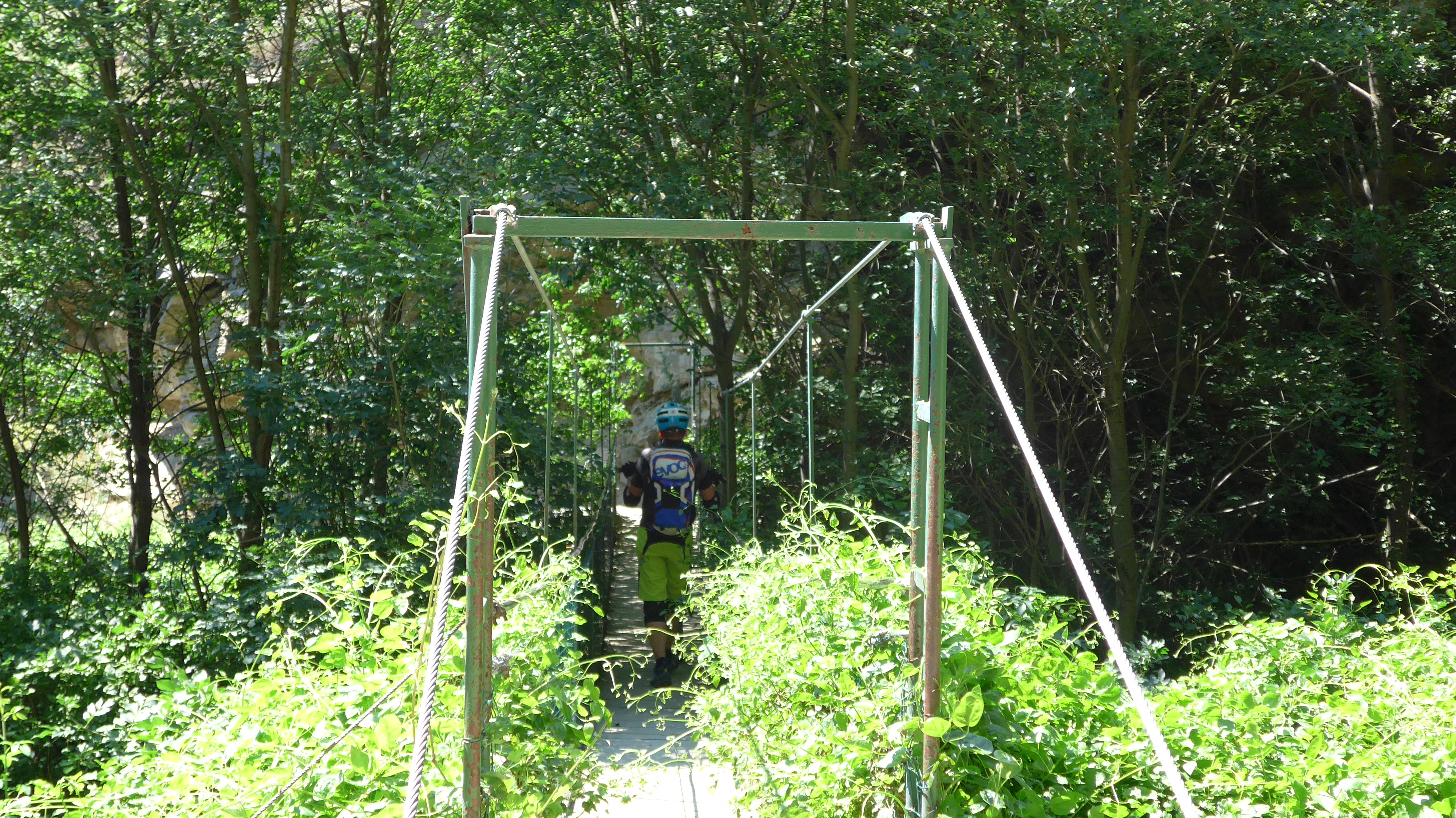 Man fährt dann wieder nach Track weiter nach Annenberger Böden. Folgt dem Panoramaweg nach Goldrain. Dieser führt einen über eine schmale Hängebrücke. Vorsicht hier nicht mit zuviel Zunder abfahren sonst fährt man schnurstracks in die Stahlseilaufhängung der Brücke (auf Halshöhe).