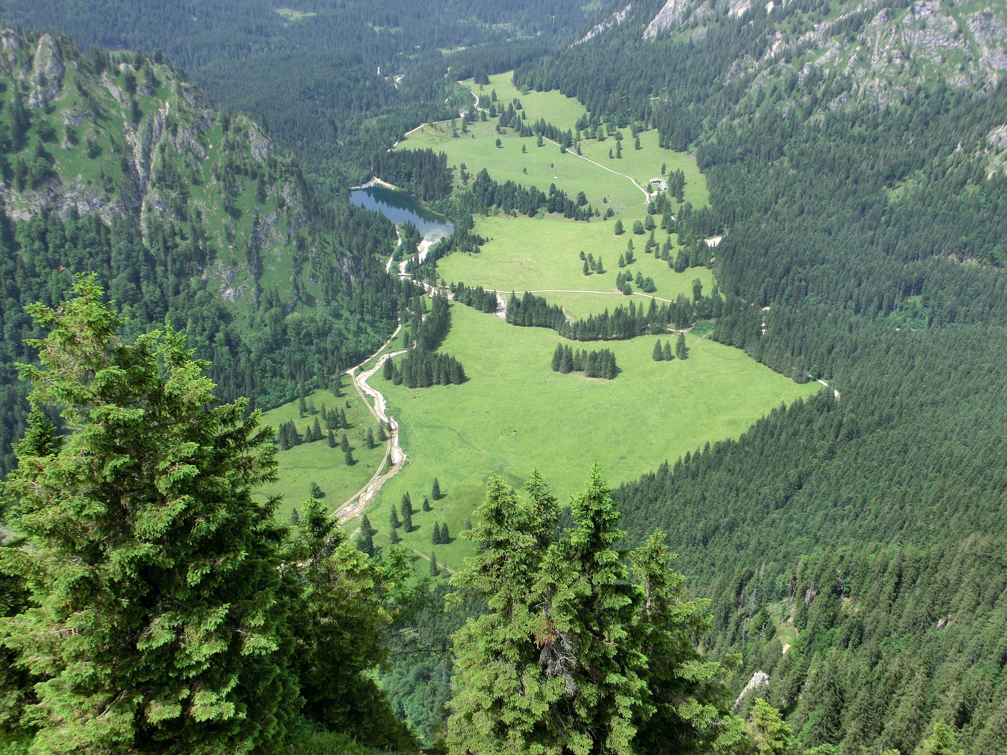 Dann über den Wanderweg in südwestlicher Richtung durch herrlichen Bergwald auf den Sattel unter den Geiselstein (ca. 1720m). Vom Sattel etwas absteigend in südöstlicher Richtung das große Hochtal unter der Hochplatte zum Kenzensattel 1650m queren.
