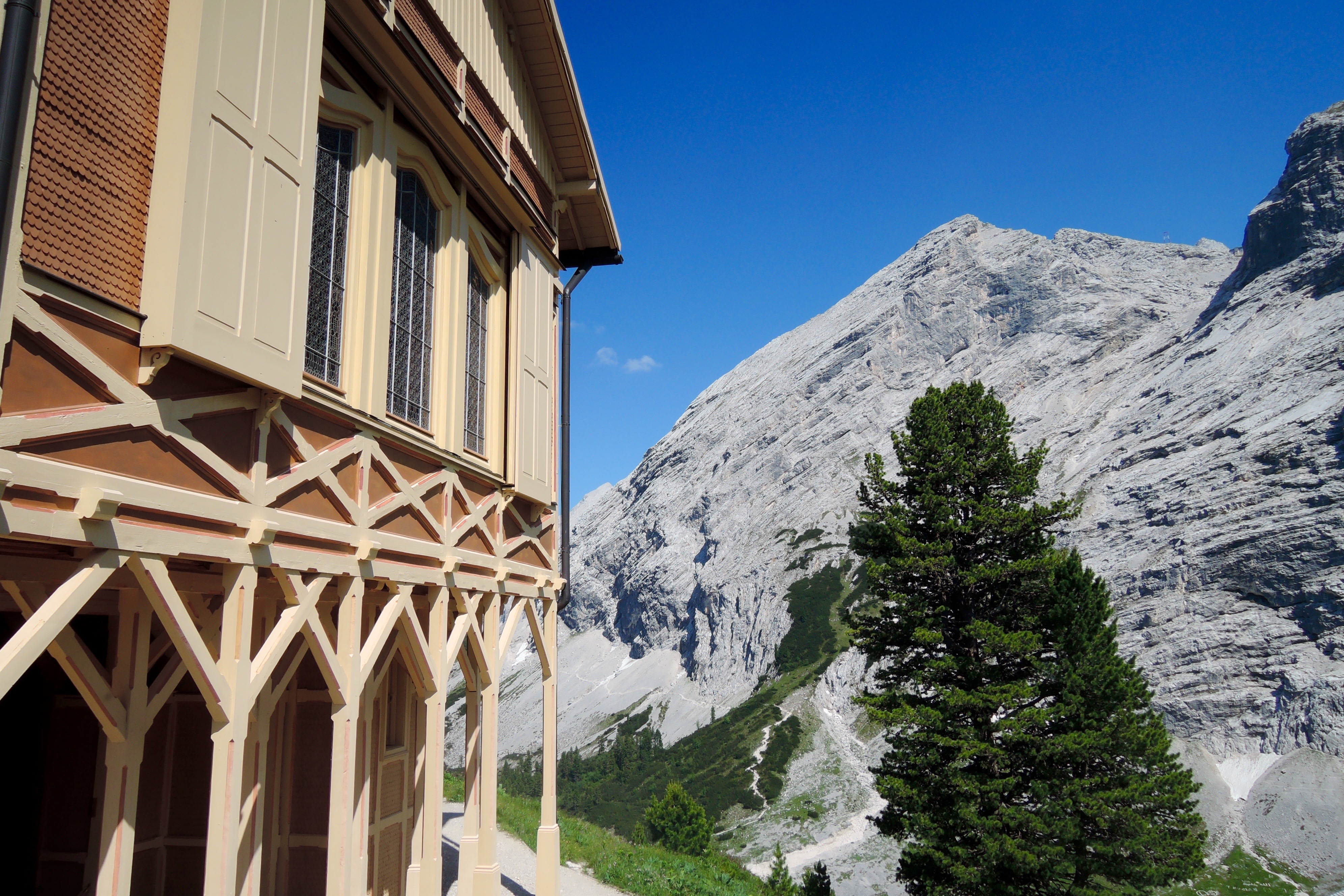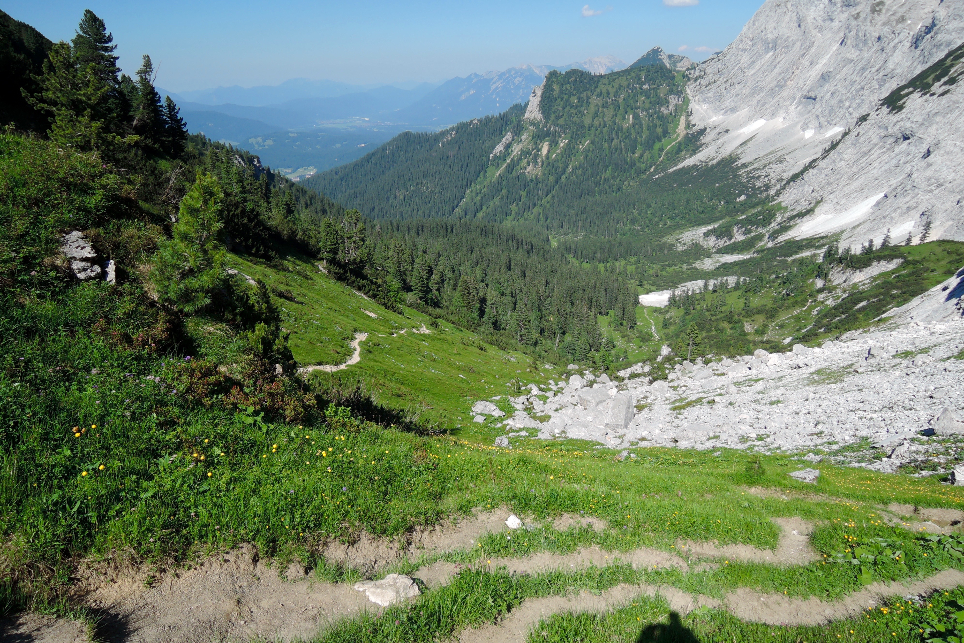 Sonstiges: om WP in Elmau (1020m) Richtung SW den Elmauer Bach entlang auf dem Königsweg Richtung Wettersteinalm (1460m) hinauf. Kurz vor dieser rechts hoch über einige Serpentinen durch den Alpenpark. Auf 1710m kommt das Ziel zum ersten Mal ins Blickfeld. Eine kurzes Stück steil hinab am Schachensee vorbei mit Blick auf die steil abfallenden Nordwände des Frauenalpls (2202m) und der Törlspitze (2444m), ehe es die letzten Kehren zum Schachenhaus (1866m) hinauf geht. Die Abfahrtsvariante übers Schachentor ist anstrengend. Bis zum Schachentor hinauf heißt es meist schieben, wenn es nicht bergauf geht, kann man im tiefen Schotter ein wenig fahren. Zur Wettersteinalm hinunter gehen die ersten Meter noch vergleichsweise flüssig... Im Talgrund dann wieder beinahe schon Flow, ja wenn nicht hinter Grasbüscheln versteckt immer wieder Felsen lauerten… Hinter der Wettersteinalm noch rechts den Schützensteig versucht, aber für weitere Experimente war die Euphorie verflogen. Den Königsweg runter geheizt und auf 1300m rechts den unscheinbaren Abzweig die Böschung steil hoch in den Bannholzweg. Der erste Teil des Bannholzwegs ist dann doch noch Singletrail in bester Roller Coaster Manier . Der Rest ist leider zur Forstautobahn ausgebaut worden und führt ostwärts Richtung Mittenwald recht steil hinab. Am Ferchenbach entlang Richtung NW zurück nach Elmau.