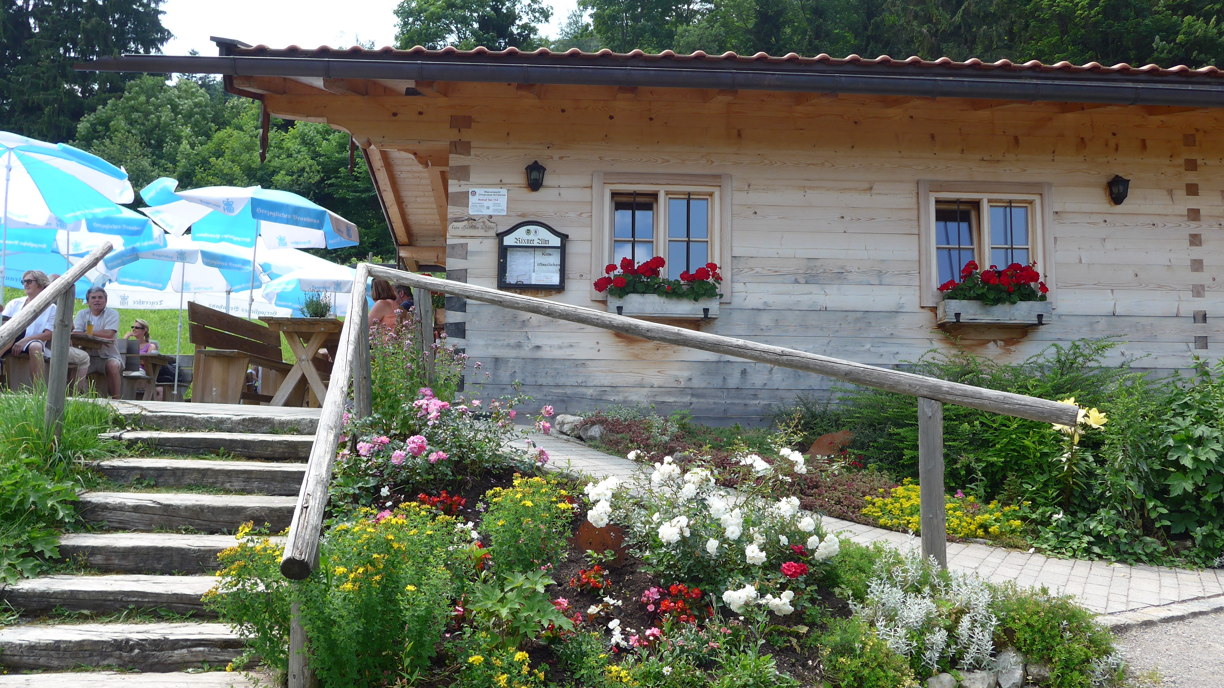Genüssliche Einkehr beim Gasthof Zenzinger auf der schönen Sonnenterrasse. In Wörnsmühl an der Hauptstraße von Miesbach nach Hundham am Straßenknick.