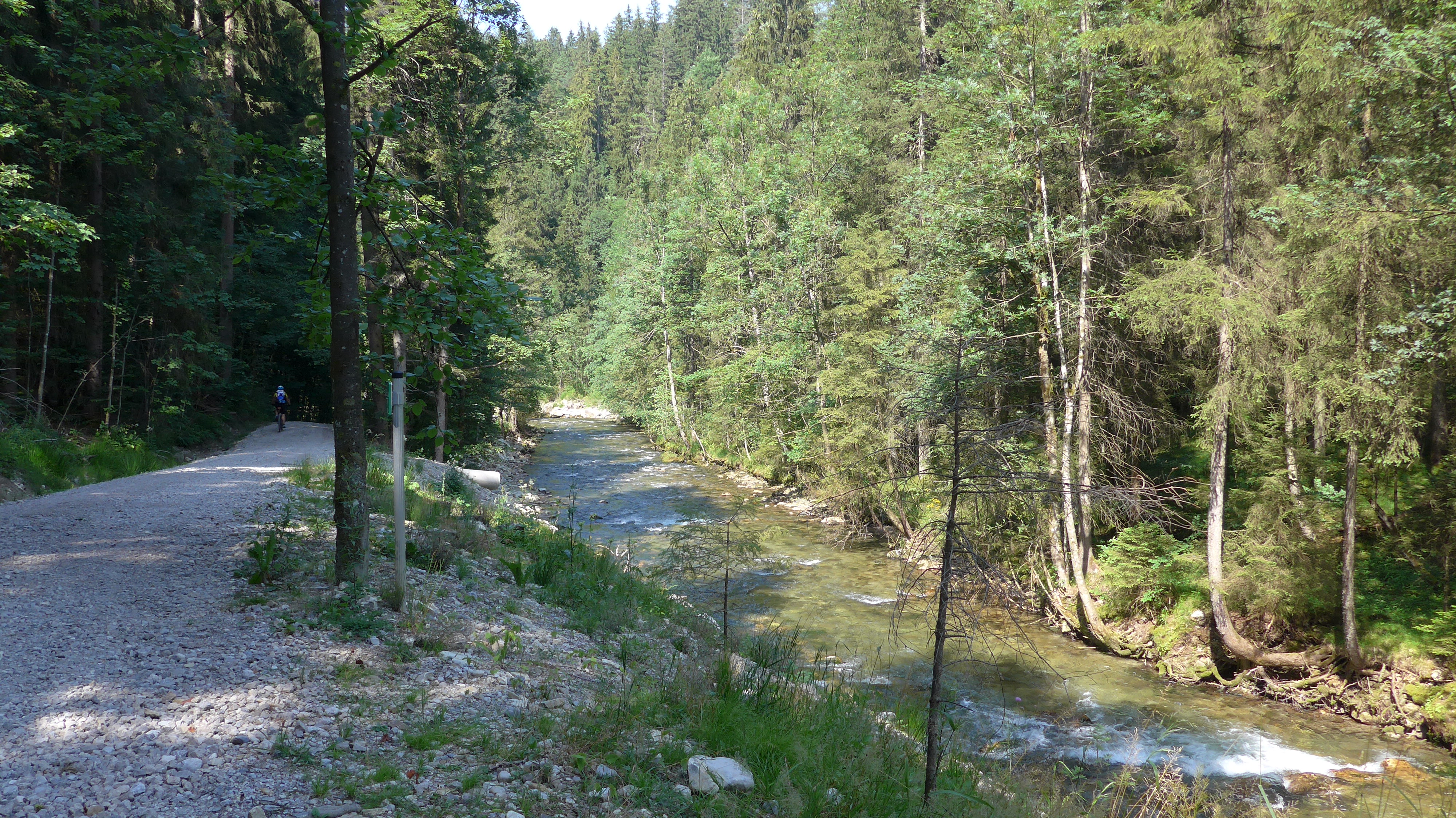 Überwiegend Forststraßen mit angenehmer Steigung, ab und zu mit schönen Ausblicken in den Waldfahrten. Kleine Highlights. Trail in Summe, etwas wenig, wir hatten mehr erwartet. Einige Badeplätze an der Strecke.