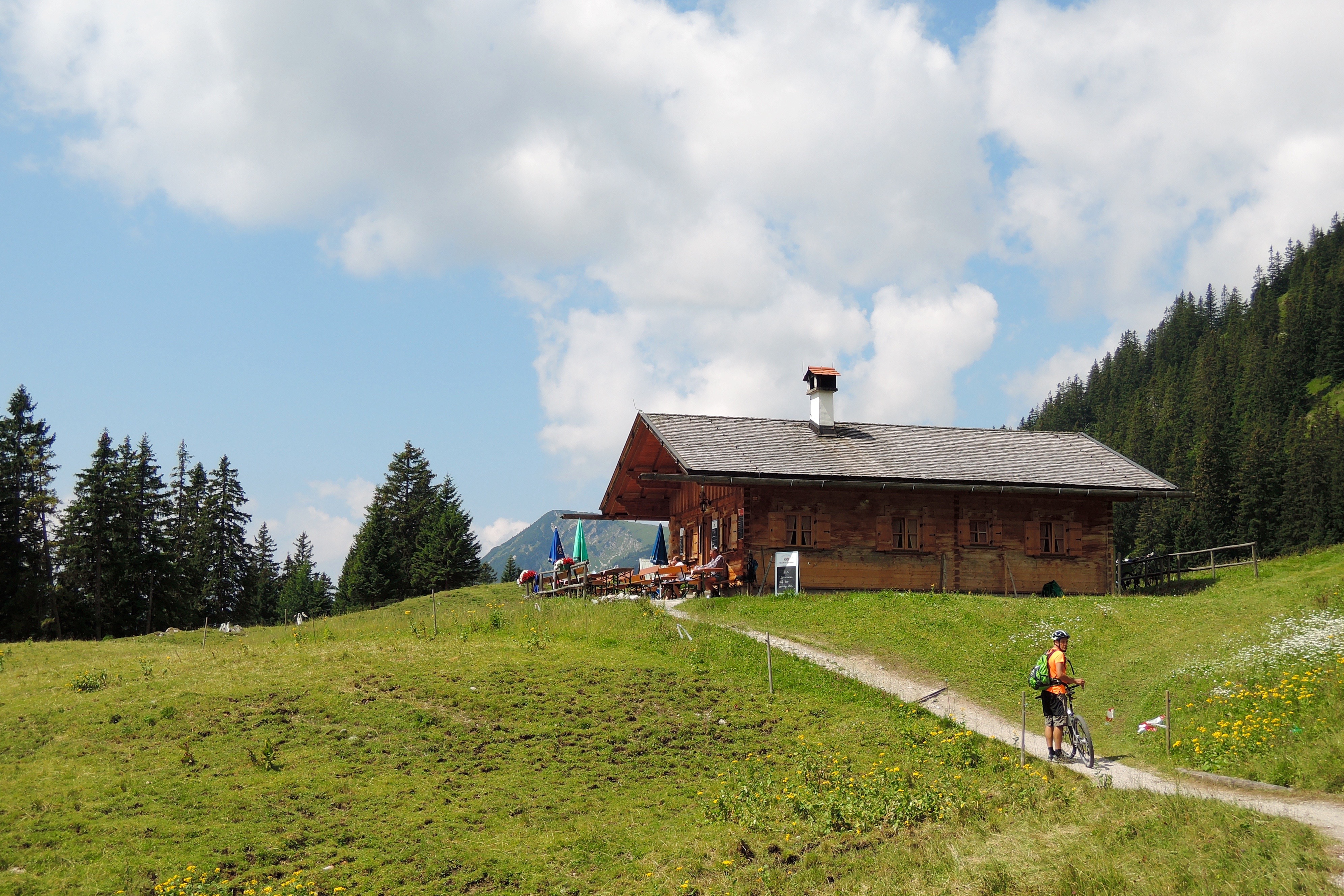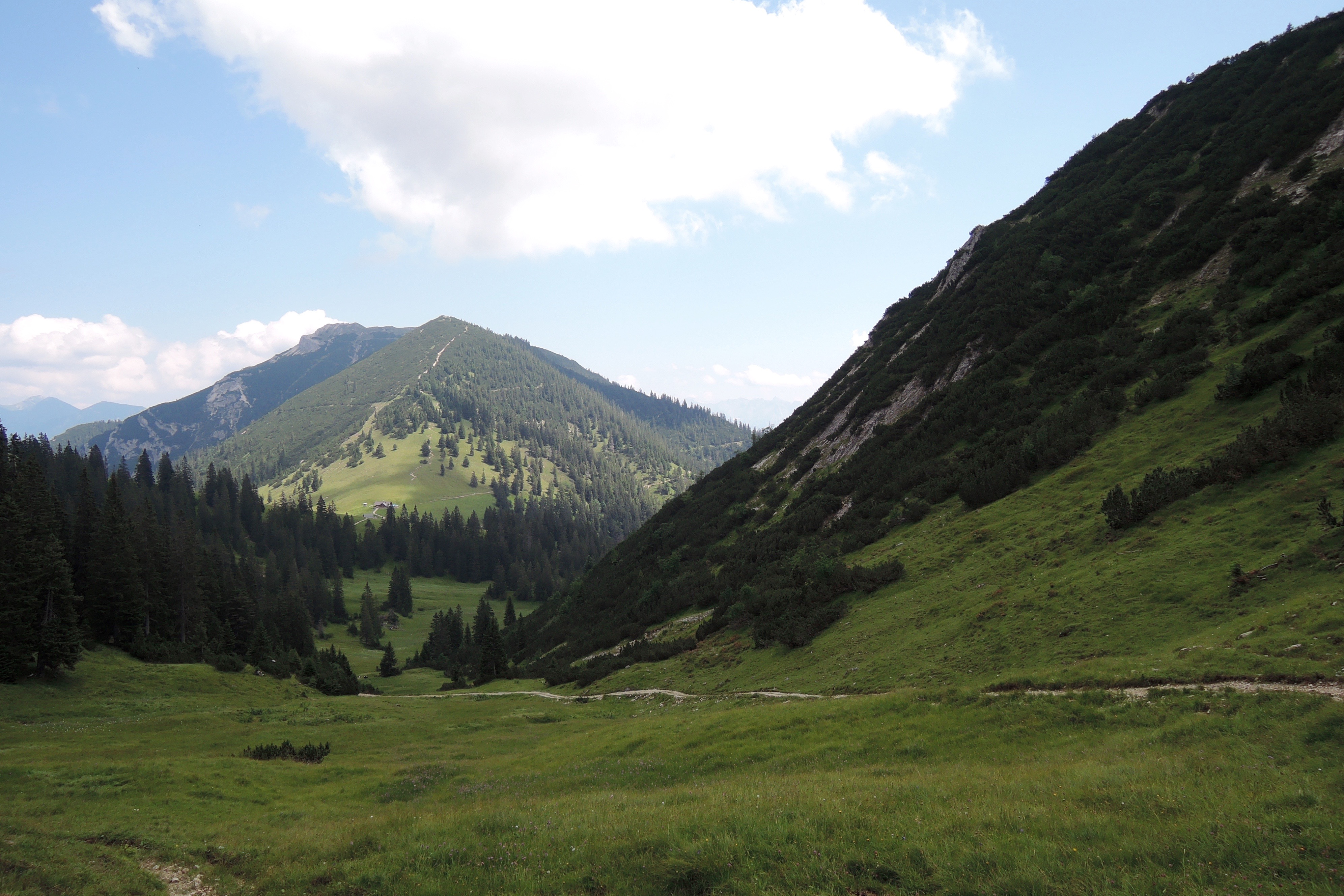 Sonstiges: Vom Stadion Am Gröben in Garmisch (720m) Richtung NO zur Via Alpina Purple und weiter auf den Kramerplateauweg. Den Pflegersee (860m) im Norden passierend Richtung NW über den Lahnenwiesgraben (880m) hinweg. Nun nicht weiter auf der Via Alpina, sondern rechts die flachere Variante der Forststrasse. Auf 1120m trifft man wieder die Via Alpina Purple, welche nun Richtung W mäßig ansteigend bis auf 1480m führt. In einer weiten Linkskehre rechts auf den Karrenweg zur Enningalm (1544m) hinauf. Von der Enningalm in Richtung SW der sich hier zu einem flowigen Singletrail verjüngenden Via Alpina Richtung Rotmoosalm folgen. Auf 1330m am Beginn des Forstwegs im späten Winkel den linken Abzweig Richtung O in vielen Kehren sehr steil zum Sattel (1640m) nördlich der Vorderen Ziegspitz hinauf. Von dort auf dem einfachen Singletrail zur Stepbergalm (1592m) hinab – Wettersteinpanorama.