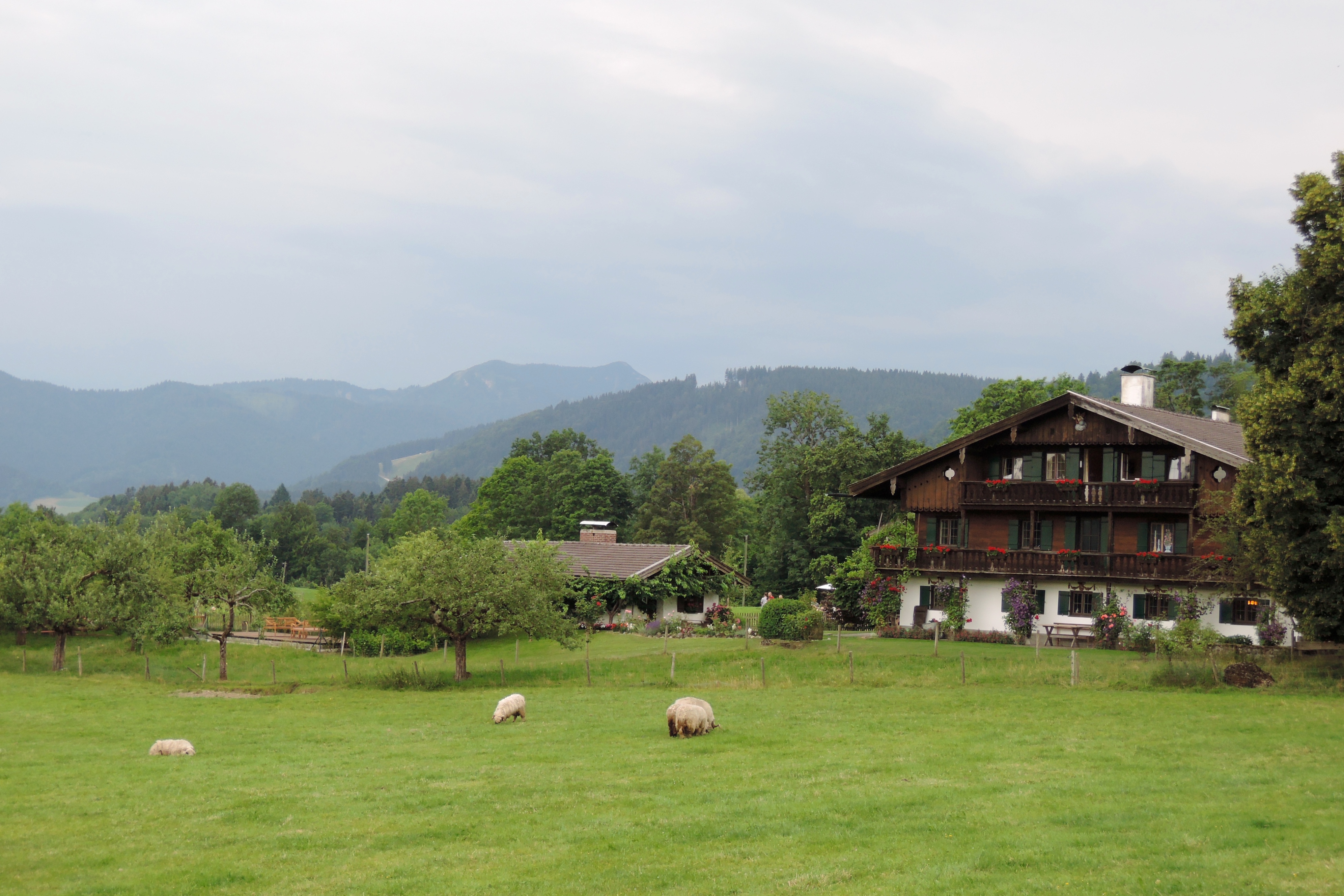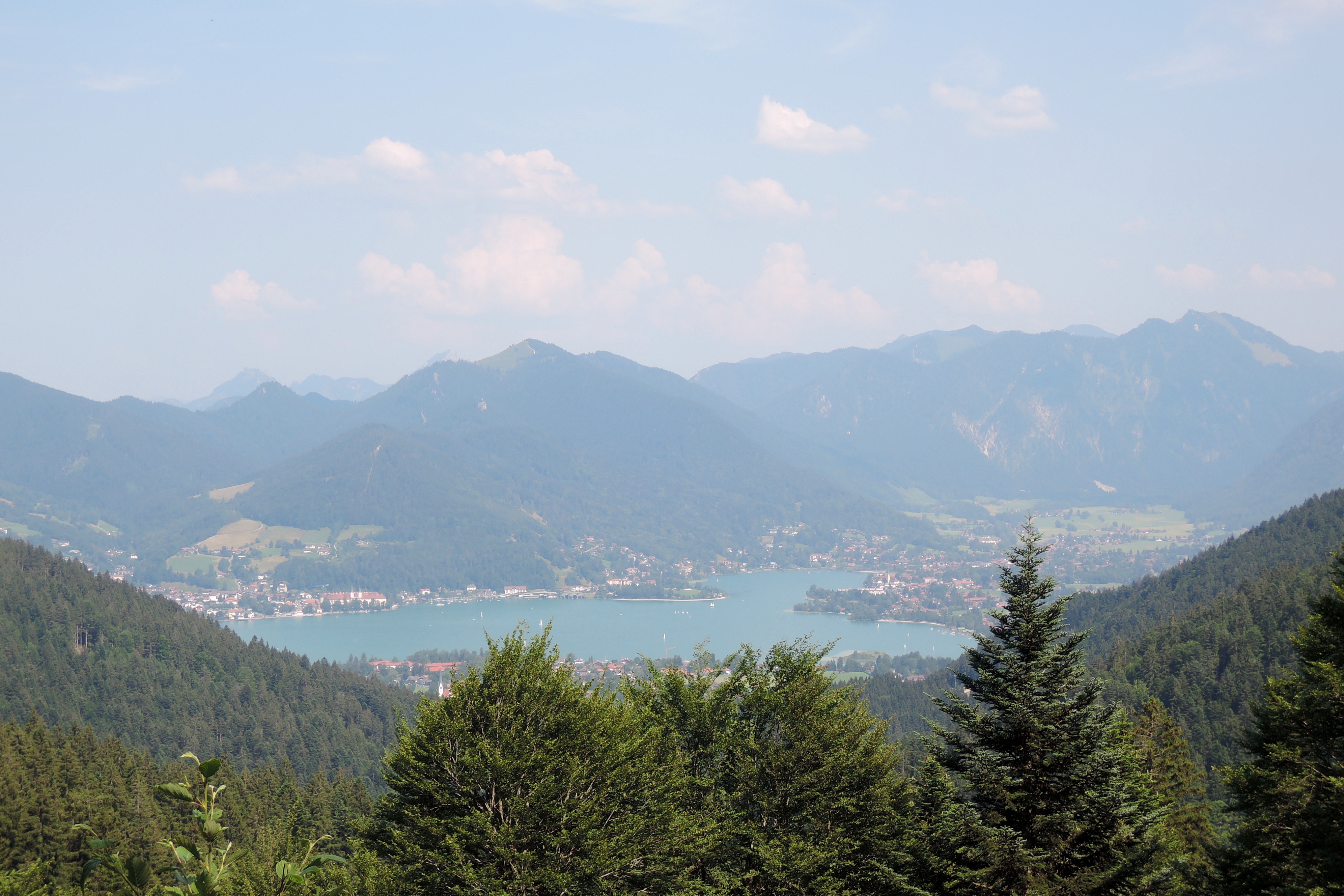 Sonstiges: om Parkplatz beim Skatepark in Finsterwald (780m) auf dem Holzeralmweg am Dürnbach entlang Richtung W. Über Am Steinberg (780m) zum Golfclub Margarethenhof (850m) hinauf, dort rechts vorbei auf dem Sträßchen nach Marinestein (810m). Am Ortsausgang links Richtung SW dem Wegweiser "Aueralm über Gmund" folgend auf die Forststrasse zur Holzeralm. Anfangs gemächlich ansteigend, zieht die monotone Forststrasse bald Richtung SO merklich an. Nach einer Abfahrt steigt sie zur Aueralm (1270m) nur mehr mäßig an. Weiter Richtung SW auf dem 601er Richtung Hirschtalsattel. Nach einem Sattel geht es zur kultigen Neuhüttenalm (1324m) hinab, dort kann man sich für 2€ je Getränk selbstversorgen. Hier dem Wegweiser "Kampen" links Richtung S über den Wirtschaftsweg hinunter und durch ein Gatter linker Hand auf den recht einfachen Singletrail zum Hirschtalsattel (1227m) hinab folgen. Dort dem Wegweiser "Bad Wiessee - Söllbach" Richtung NO über die Almwiese folgend hinab in den flowigen Wurzeltrail. Am Wegweiser "Bad Wiessee - Söllbach" unbedingt rechts durch die Kehren hinab und unschwierig weiter zum Söllbach (900m). Hier links die Forststrasse Richtung NO talauswärts an der Söllbachklause (800m) bis Bad Wiessee. An der Söllbachtalstrasse (770m) links steil hinauf zum Skizentrum Sonnenbichl (820m). Dort nach der Brücke auf den hier asphaltierten Panorama-Wanderweg steil hinauf Richtung N zum Freihaus Brenner (820m). Weiter Richtung NW zum Breitenbach, dort links ein kurzes Stück bergauf und an der Brücke den Abzweig rechts auf den Waldtrail "Aueralm über Gmund". An dessen Ende links durch den Golfclub Bad Wiessee und auf dem malerischen Sträßchen über Schwaiger (800m) nach Baier (790m). Dort links auf dem Bodensee-Königssee-Radweg über Heinz (800m) und Ribisch (800m) Am Steinberg links liegen lassend auf den Holzeralmweg und auf diesem zum Ausgangspunkt zurück.