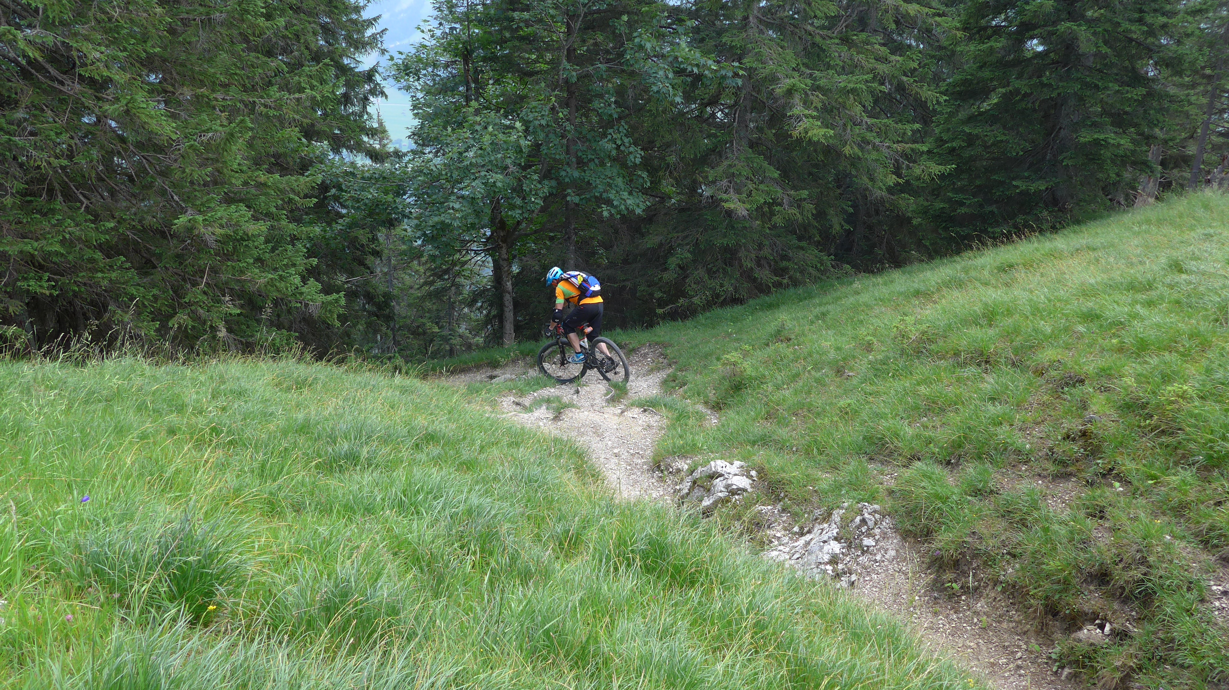 Flowiger leichter Trail (ab der Hälfte nass, sonst war alles trocken) mit vielen engeren Kurven zum Auf dem Tanzboden abfahren.