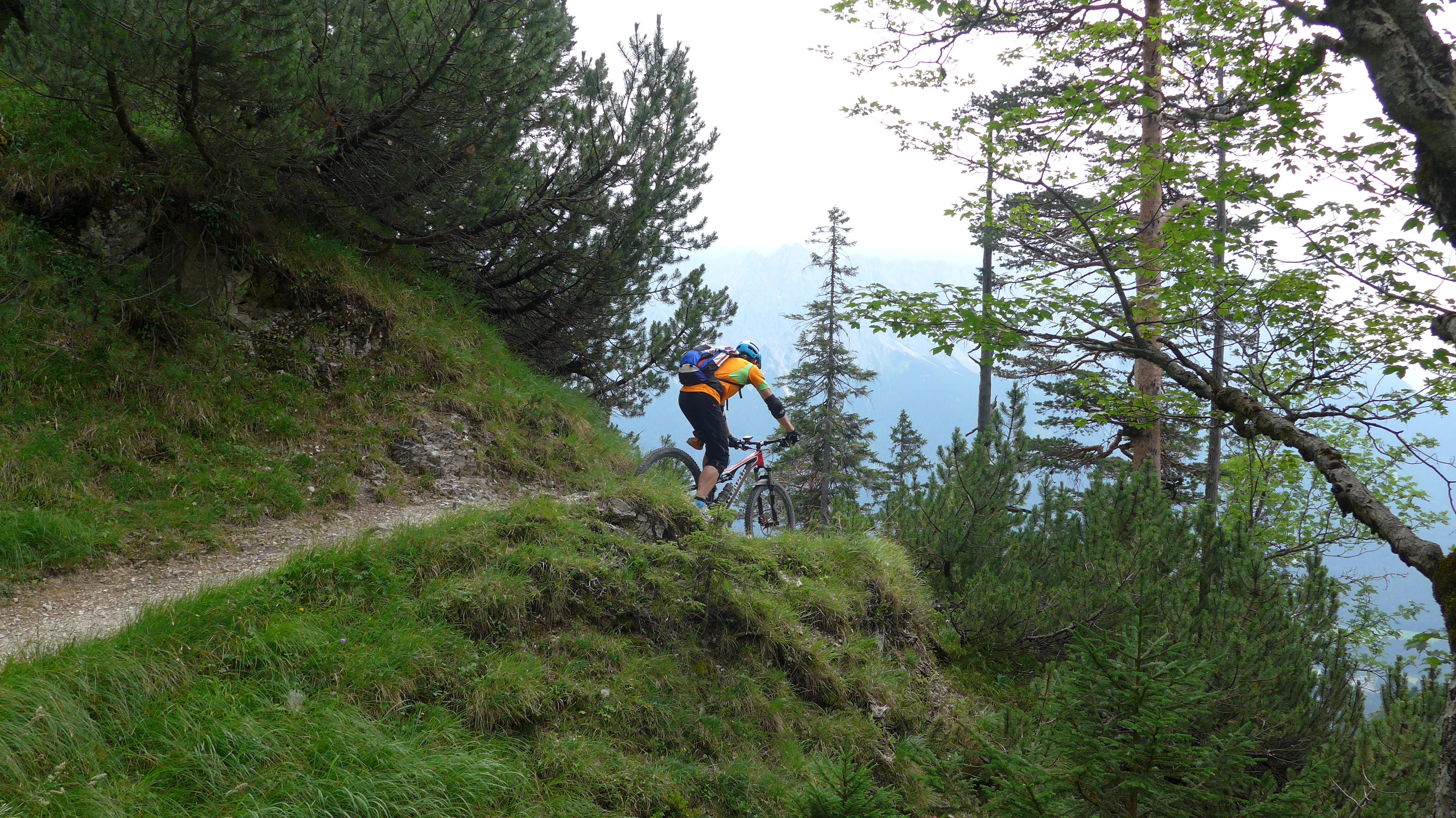 Gefahreneinschätzung: Absturzgefahr - sehr ausgesetzt. Protektoren für den 2. Trail sinnvoll.