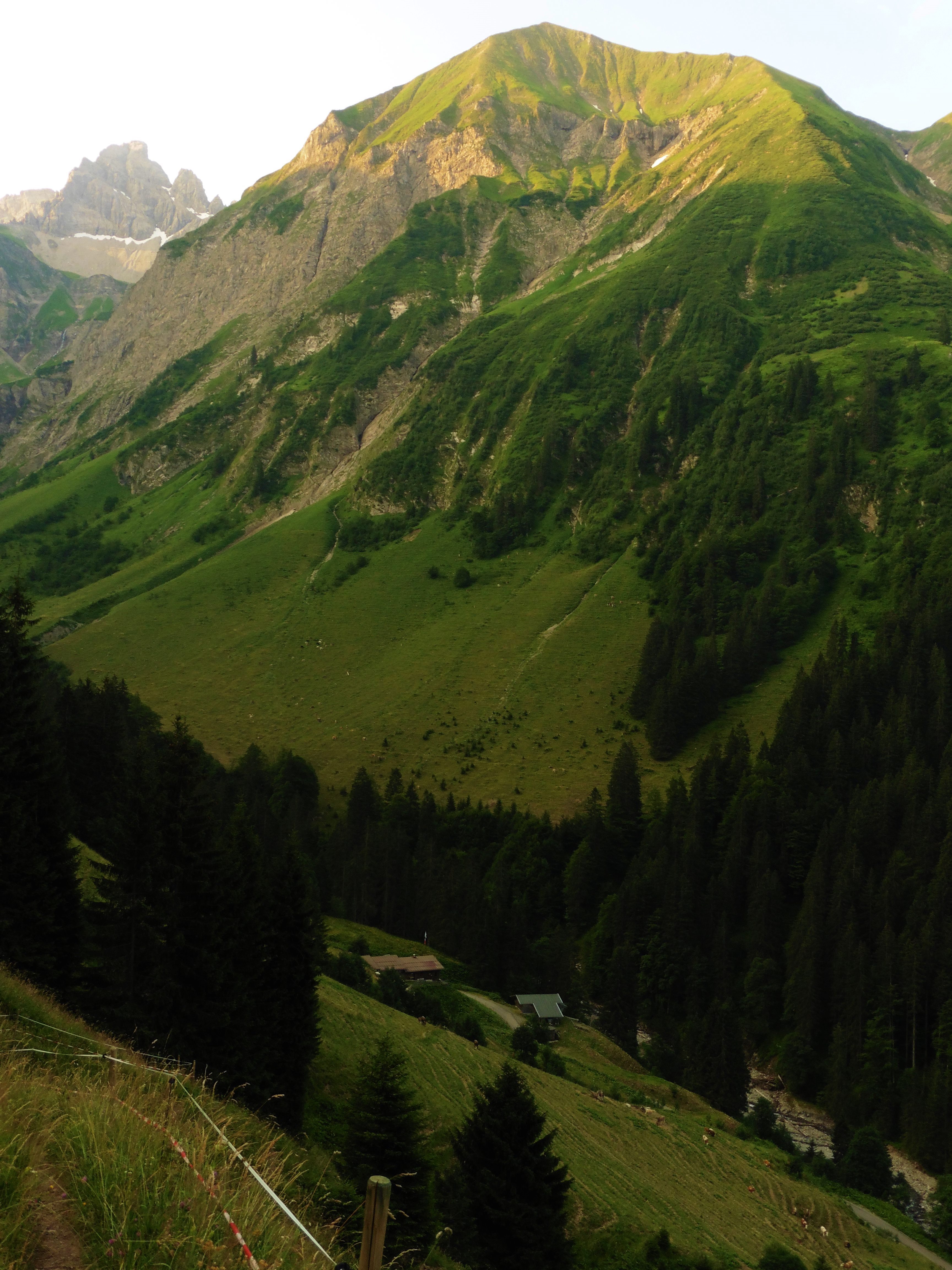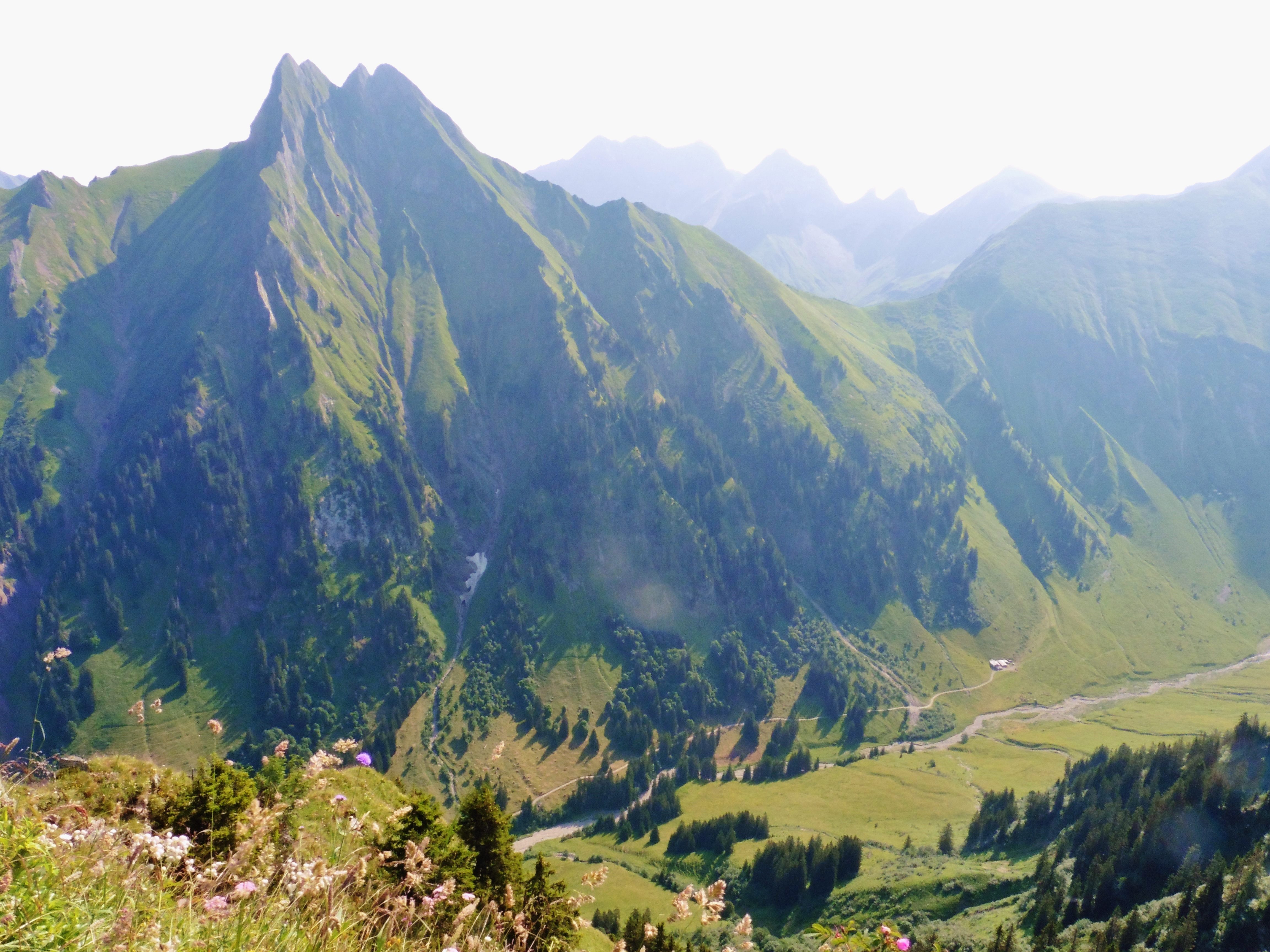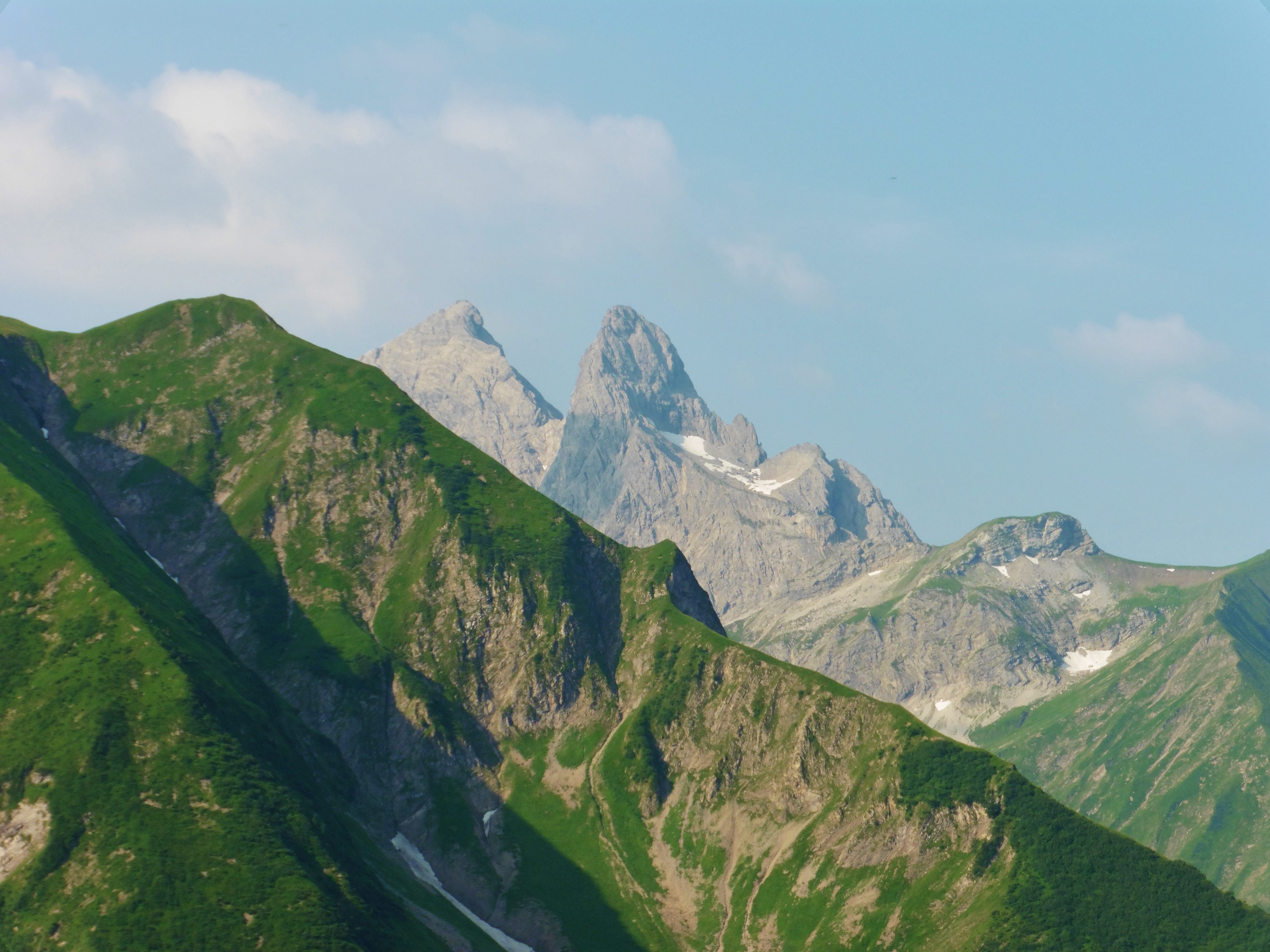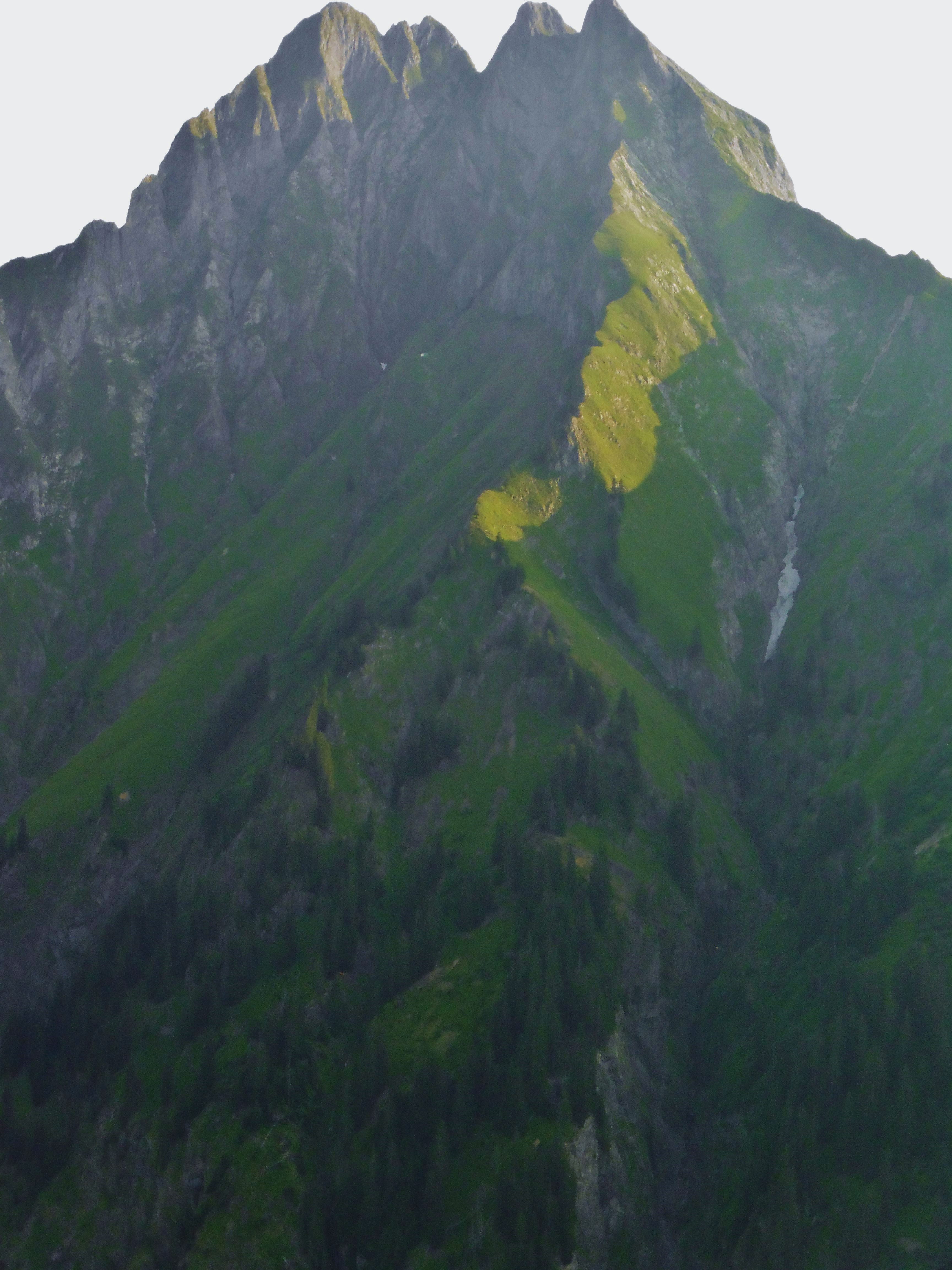 zu Bild 2: erster Blick auf die Höfats, ein Berg, der mich fasziniert und den ich schon ca. 20 Mal auf verschiedenen Routen bestiegen habe; der lohnendste Anstieg ist der SW-Grat auf den Westgipfel, dann die Überschreitung zum Ostgipfel und der Abstieg über den SO-Grat zum Älpelesattel;