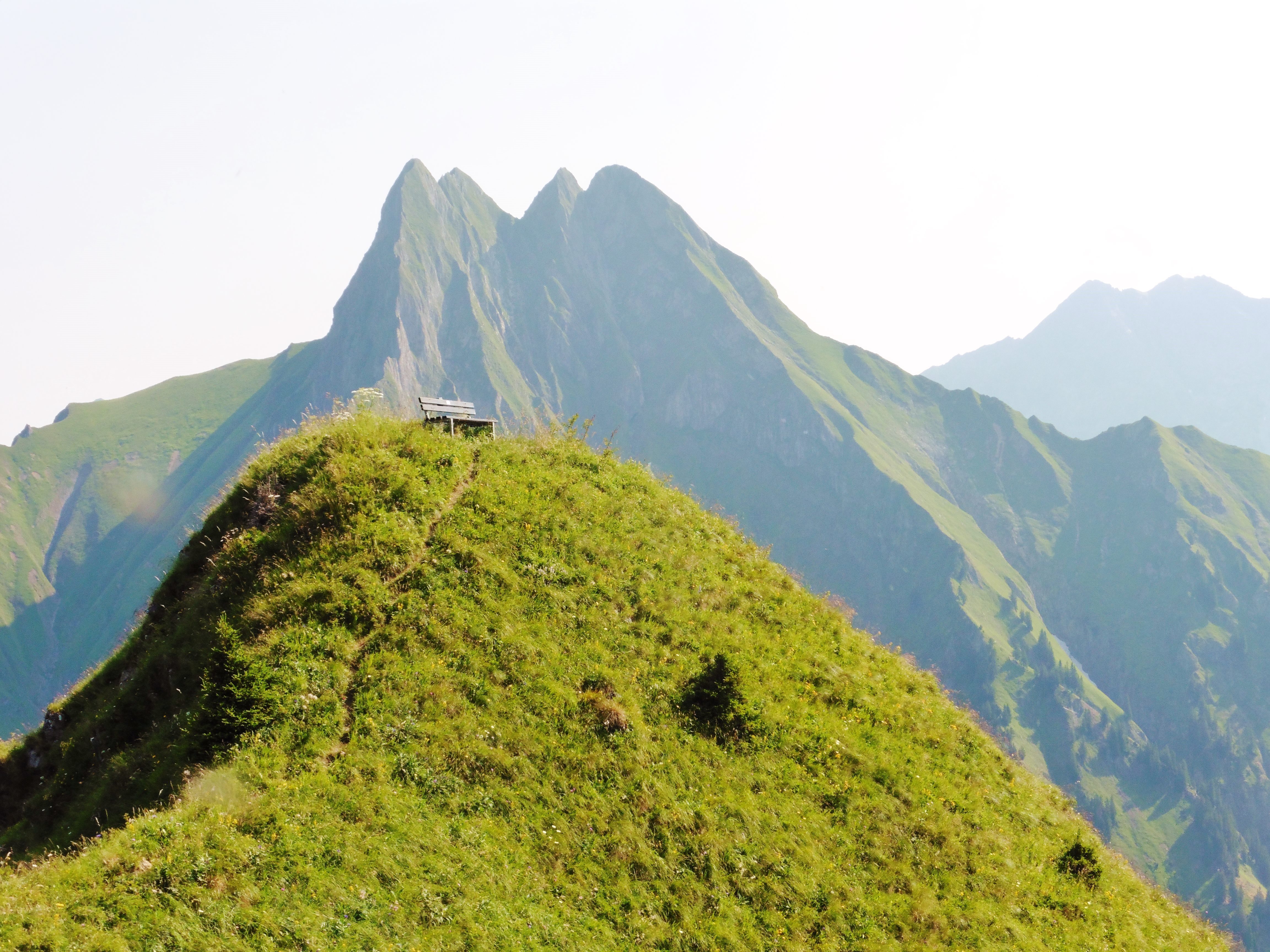 zu Bild 6: am Gipfel kein Kreuz aber dafür eine bequeme Bank;
