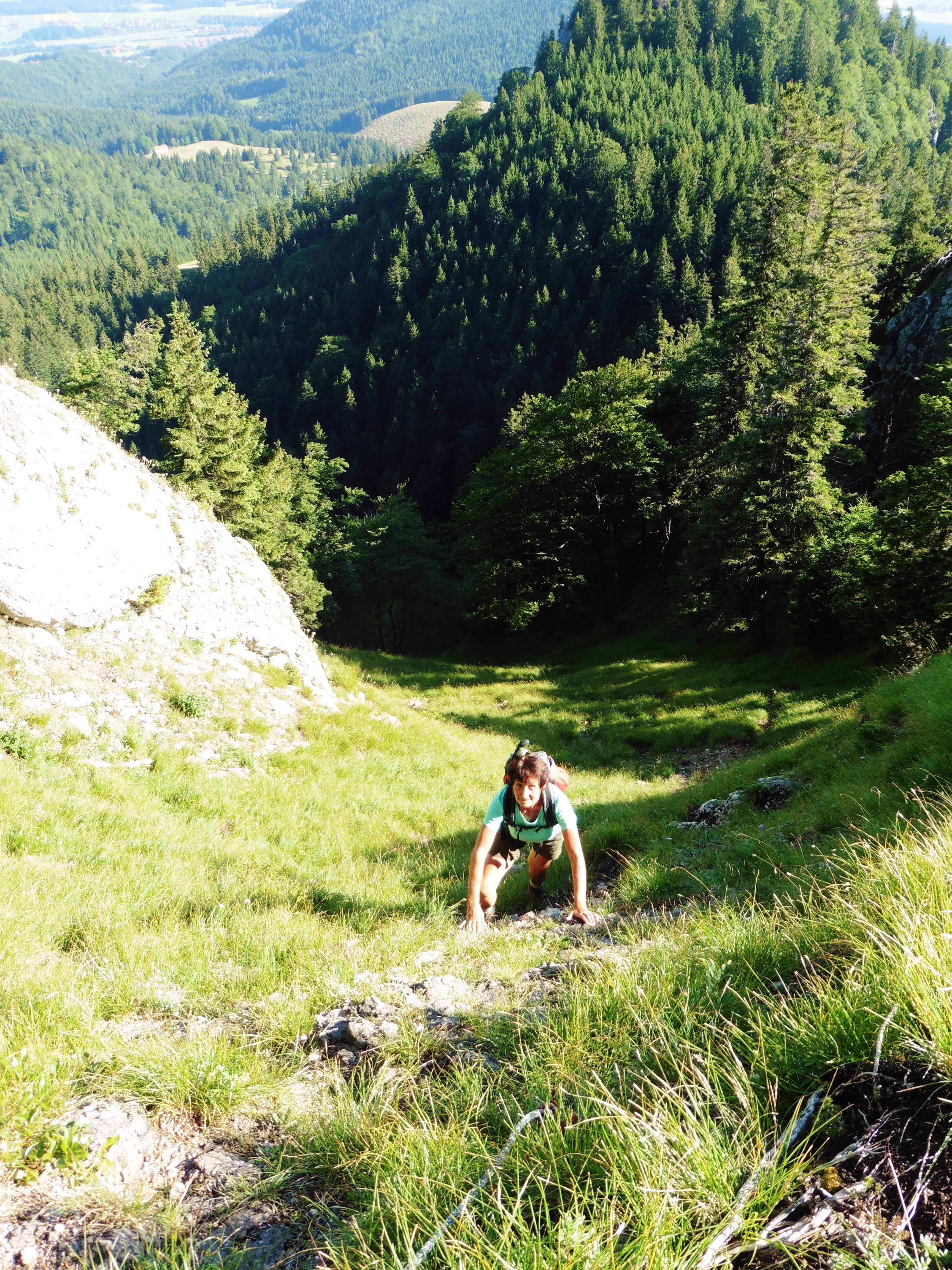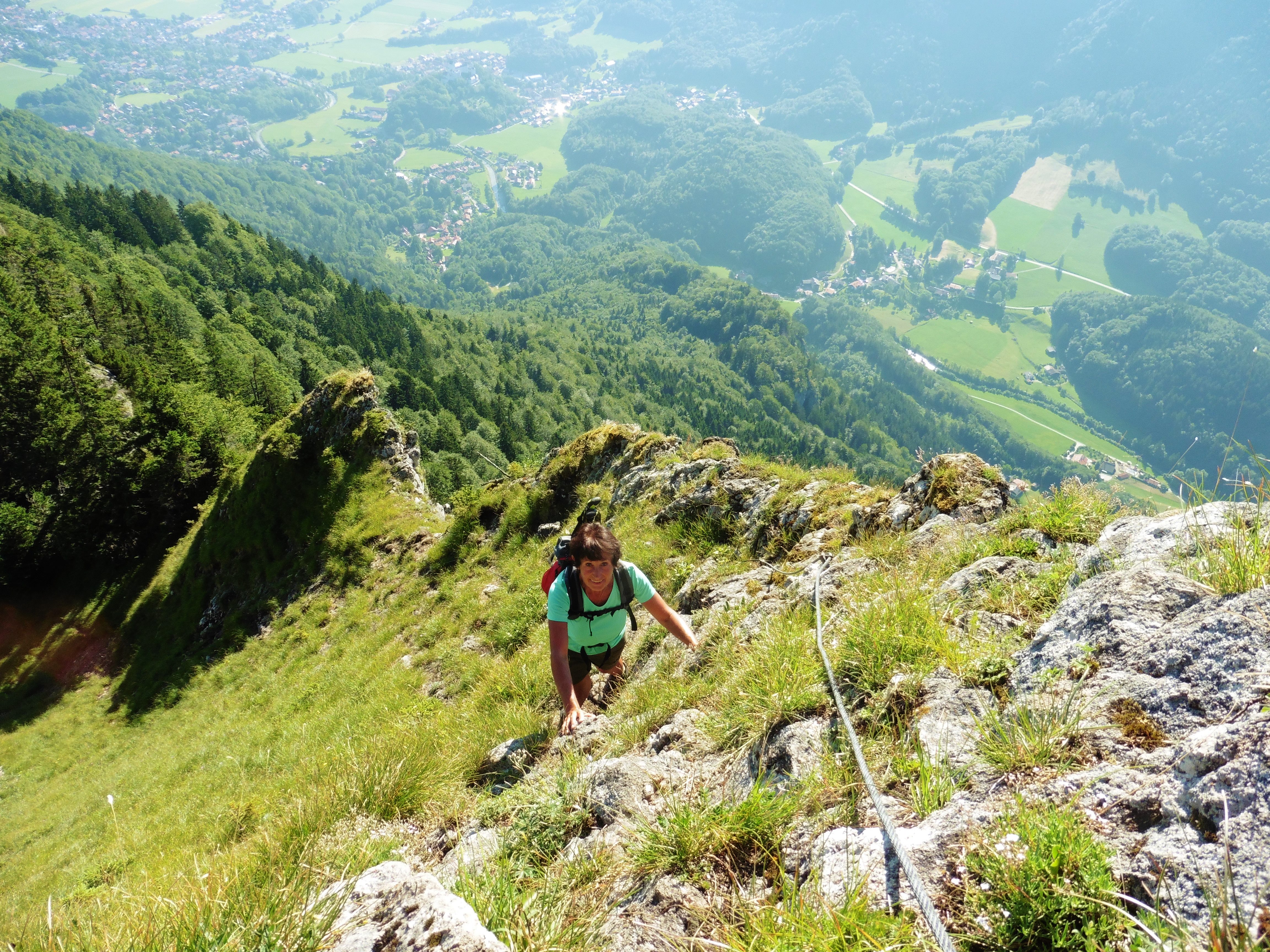 Sonstiges: vom Parkplatz entweder direkt (rechts des Zellgrabens - siehe AV-Karte) oder über Hammerstein zur Hofalm; auf der Alm weglos nach links auf den Kamm; ab dort sind gibt es deutliche Trittspuren, die über alle 3 Gipfel leiten (manchmal etwas verwachsen aber gut erkennbar, teilweise versichert); am Hammerstein ist ein kurzer Kamin zu durchsteigen, an den beiden anderen Gipfeln gibt es immer wieder ausgesetzte Passagen mit leichten Kletterstellen; von der Zellerwand auf den Steigspuren nordseitig hinab zur Laubensteinalm und von dort auf mark. Almweg in großem Bogen zurück zur Hofalm (bewirtschaftet) und weiter nach Aschau.