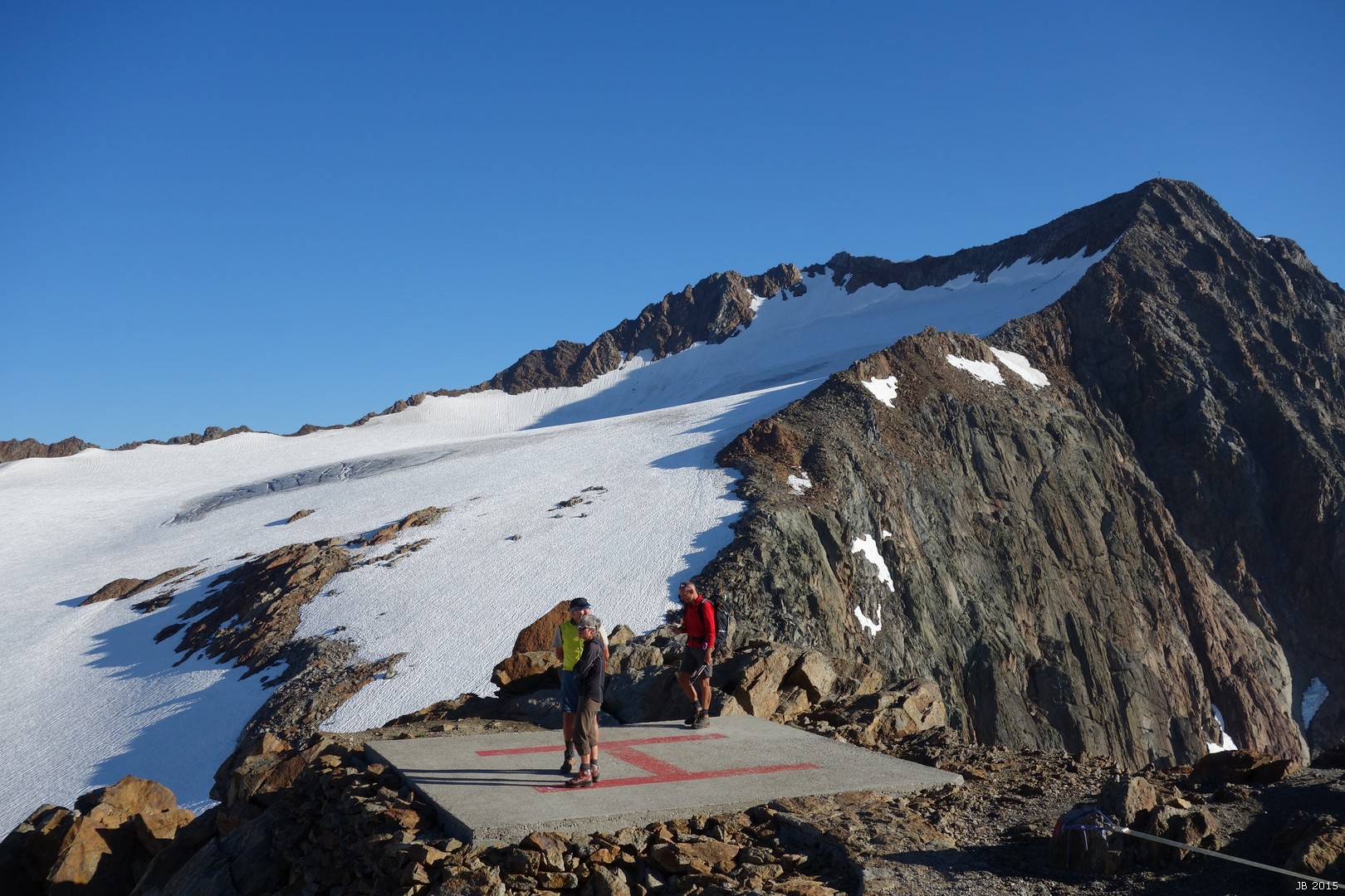 Derzeit läßt sich der Wilde Freiger ohne Steigeisen problemlos von der Nürnberger Hütte zum Becher-Haus überschreiten, der Restgletscher unter dem Signalgipfel wird nur am Rand betreten.