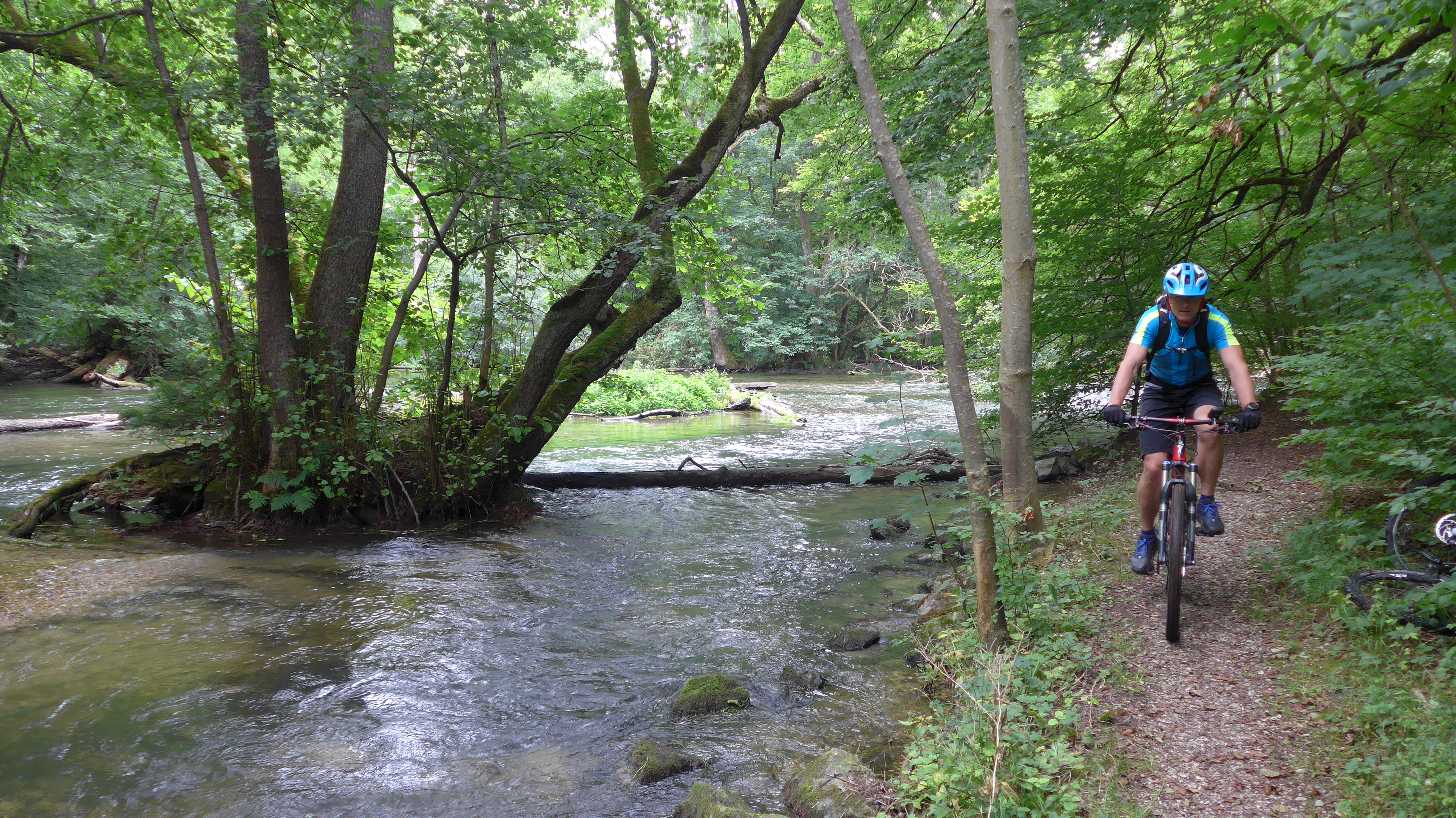 Nach ein paar Meter rollen fährt man Richtung Süden immer der Würm - ein Eiszeitjuwel - entlang. Es war meist trocken und fein zu fahren. Sehr abwechslungsreiche leichte Trails in zauberhafter Umgebung. :thumbsup: Bis zum Biergarten in Leutstetten. Die Arme kommen bei der Fahrt auch nicht zu kurz - es liegen zahlreiche große Bäume auf dem Weg.