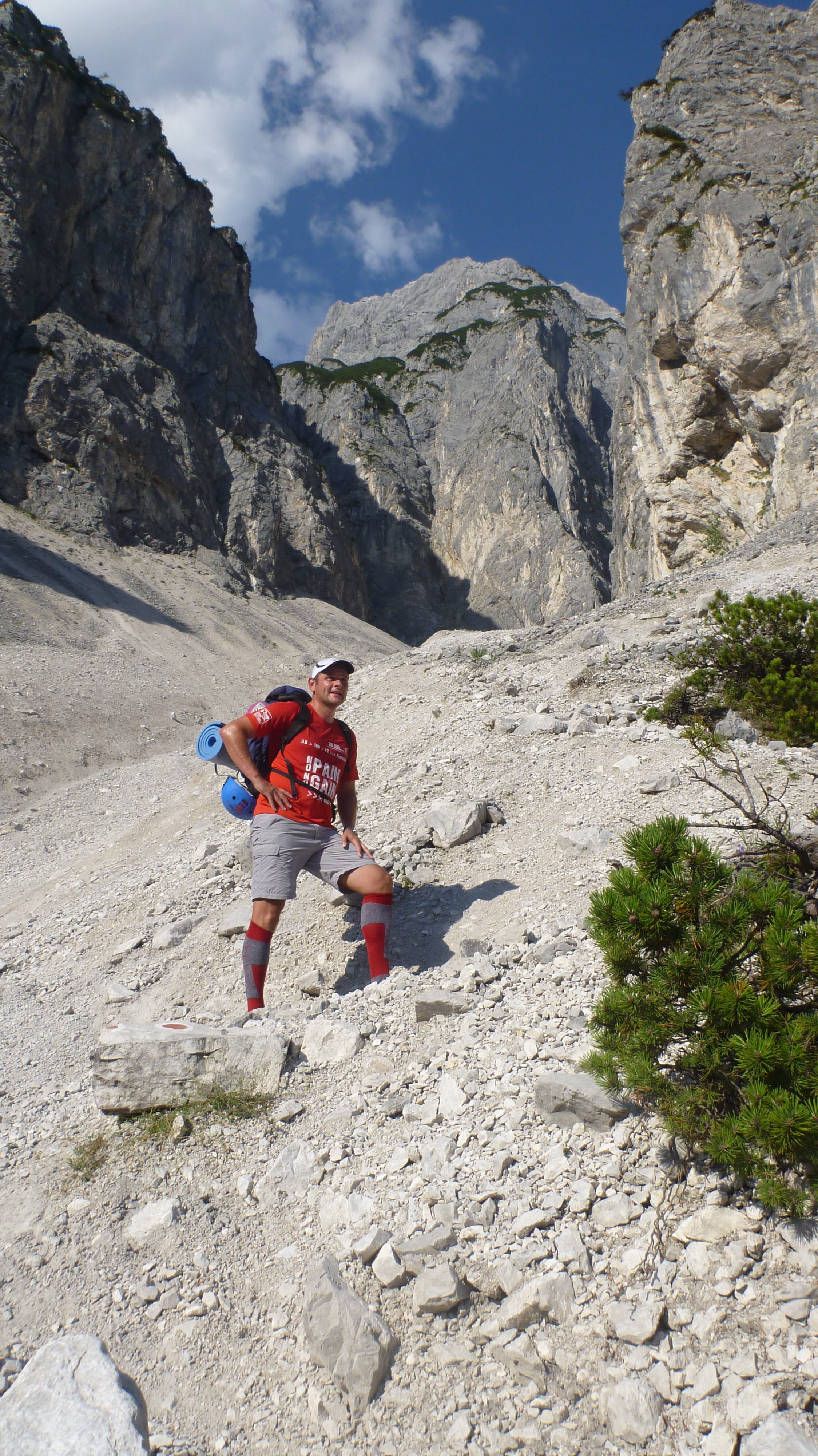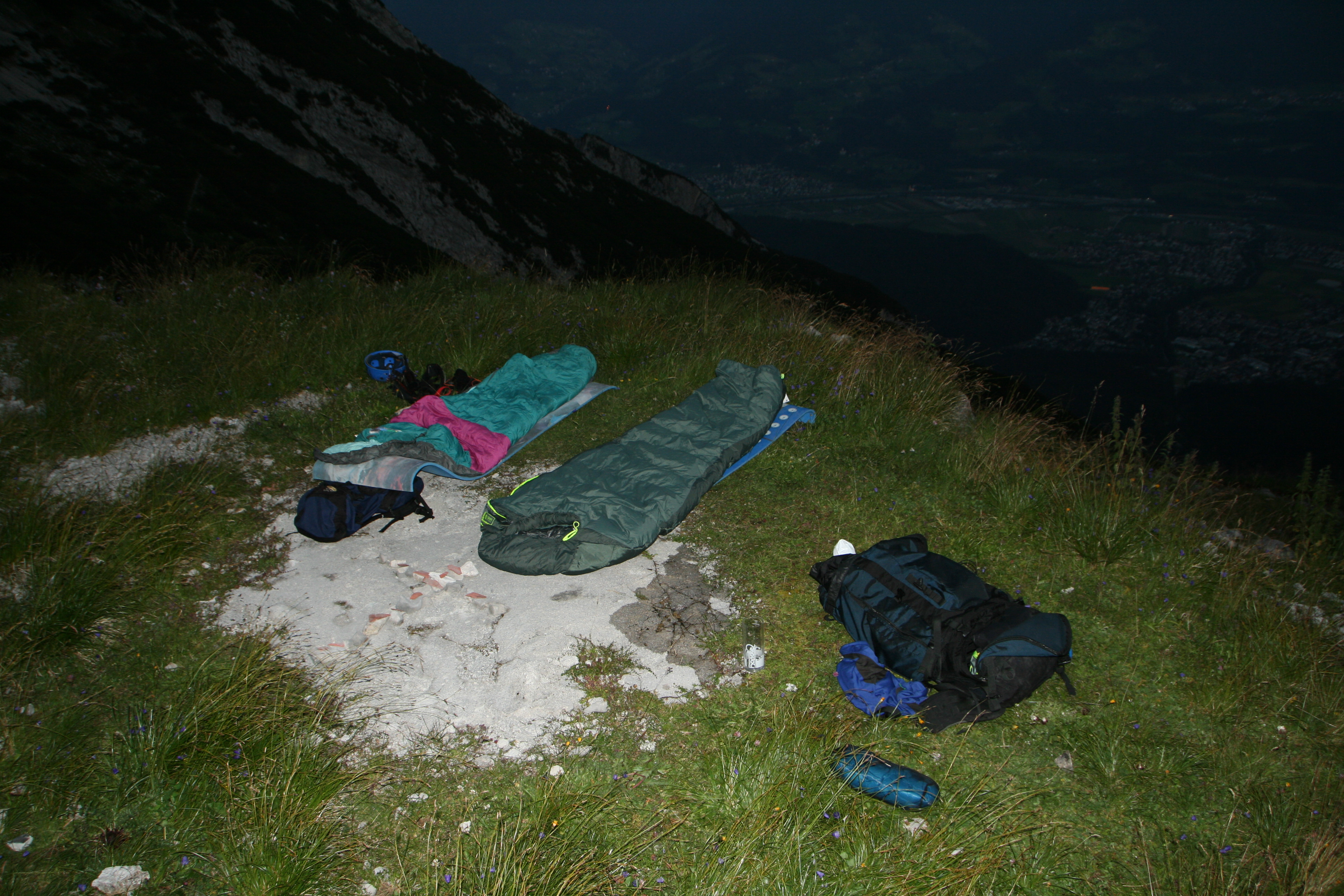 Aufstieg über Bettelwurfreisse zur Bettelwurfhütte, dort wegen Überfüllung Biwak, am nächsten Morgen über leichten Klettersteig (max. B) zum kleinen Bettelwurf, von dort zurück zur Scharte und über anspruchsvolleren Klettersteig (angeblich 2 D - Stellen) zum Gipfel. Abstieg über Eisengattersteig zurück zur Hütte und ins Tal.