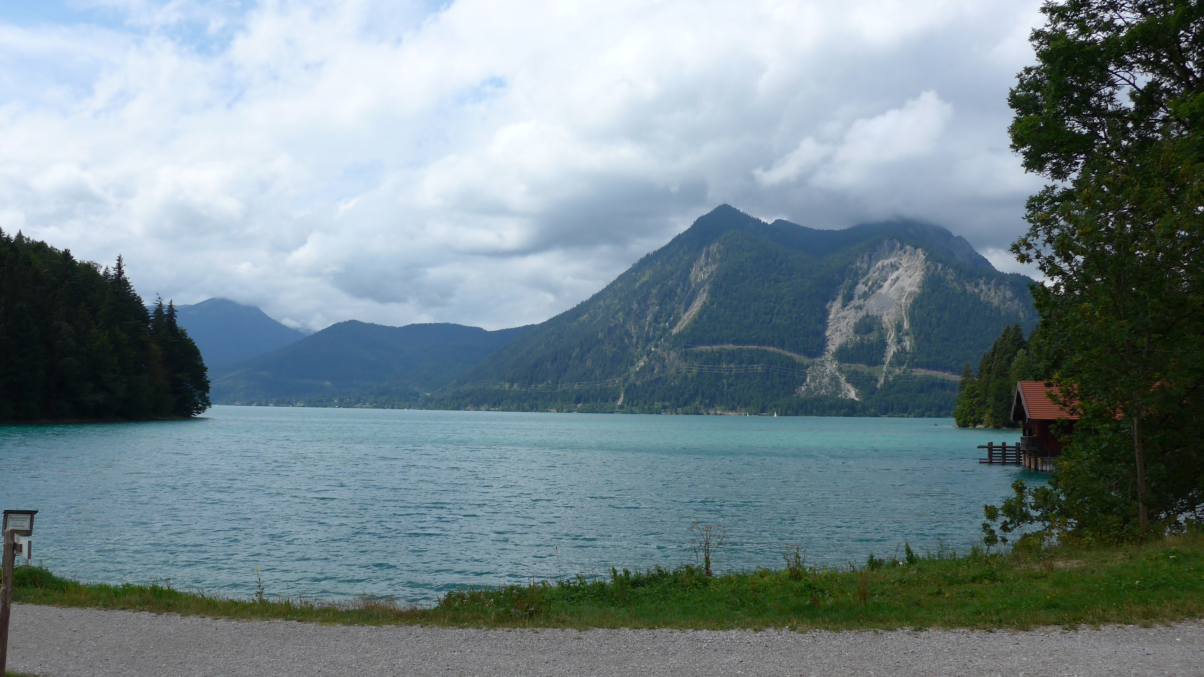 Direkt am Walchensee kann man eine verdiente Pause mit feinem selbstgemachten Kuchen einlegen - wer mag auch in´s kühle Türkis reinhüpfen. Am Walchensee nach Urfeld über die alte Kesselbergstraße hinunter zum Kochelsee.