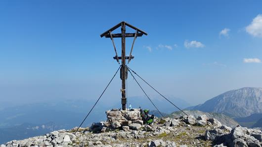 Vom Biwakplatz (2150m) dann weiter zur Scharte zwischen Leiterkopf und Graskopf hinauf. Auf der Scharte angekommen rechts haltend oberhalb durch die Steinerne Grube. Dann eher links haltend zum Stuhljochgrat hinauf. Den Grat folgend auf den Gipfel des Funtenseetauern (2578m). Am Gipfel herrliche Aussicht ins Steinerne Meer, Hochkalter, Watzmann, Hagengebirge, Königssee, etc. Abstieg über den gut markierten Steig übers Stuhljoch und den Stuhlwandrücken zum Funtensee. Am Kärlingerhaus (1638m) gemütliche Pause. Vom Kärlingerhaus der Beschilderung folgend über die Saugasse zum Königssee. Kurz in den Königssee zur erfrischung und dann weiter nach St.Bartholomä (630m).