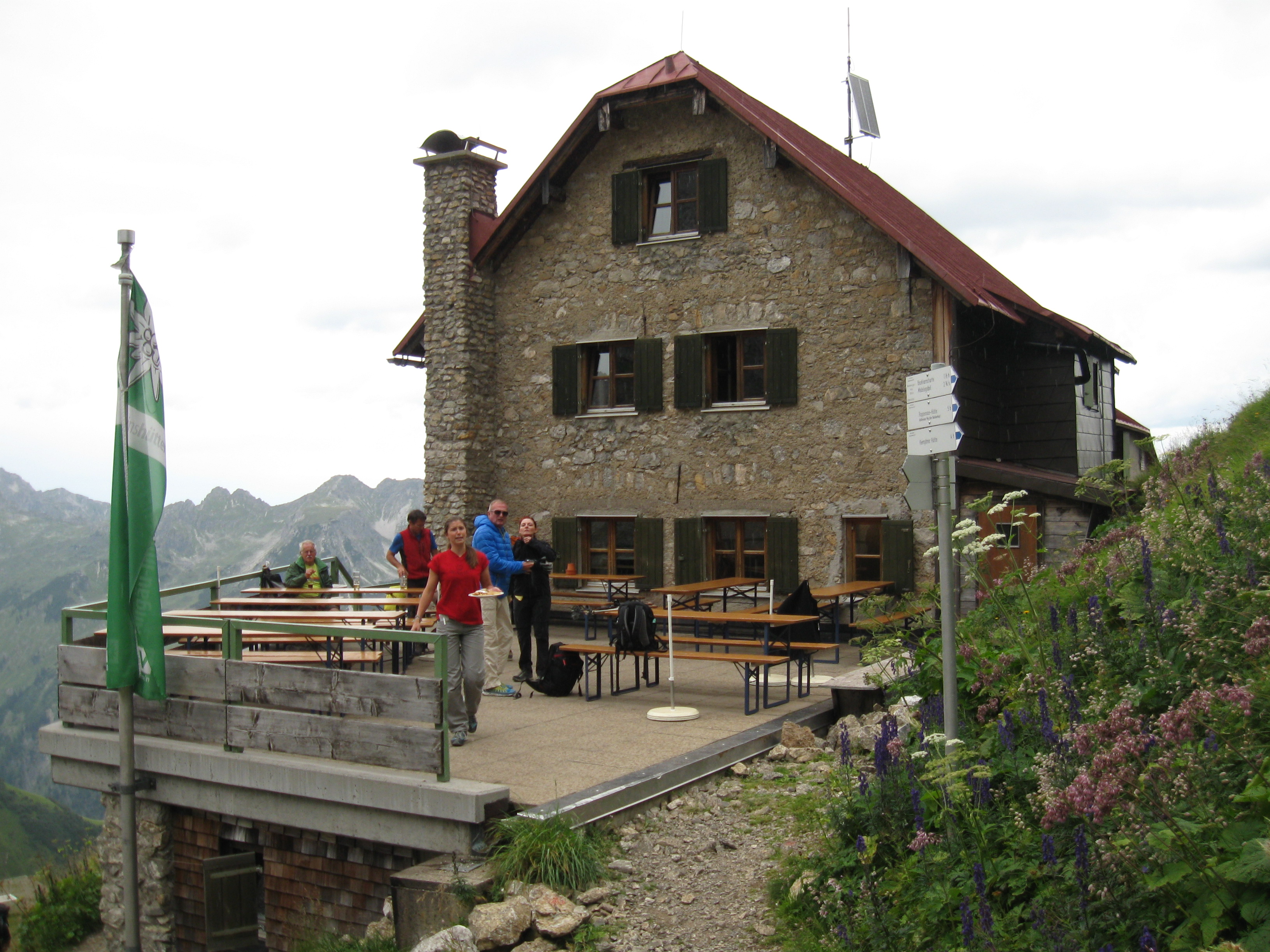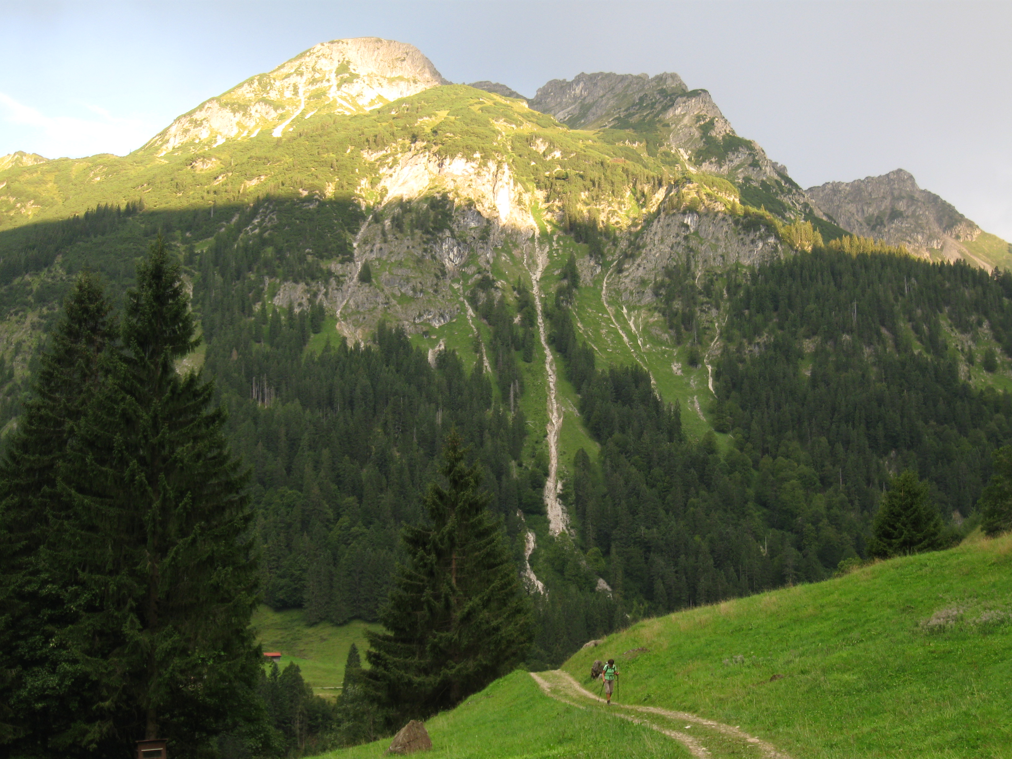 Vom Einstieg auf Steig wieder zurück in die Mulde unter dem Wildengundkopf und entweder den Aufstiegsweg zurück oder - wesentlich schöner und abwechslungsreicher - den Steig südwärts weiter zum Waltenberger Haus und von dort auf markiertem Weg zurück nach Einödsbach. Recht eindrucksvolle Landschaft hier (das Waltenberger Haus soll allerdings ab 07.09. wegen Baumaßnahmen geschlossen und einige Wege dort wegen Steinschlag gespert werden, vgl. DAV-Auskunft).