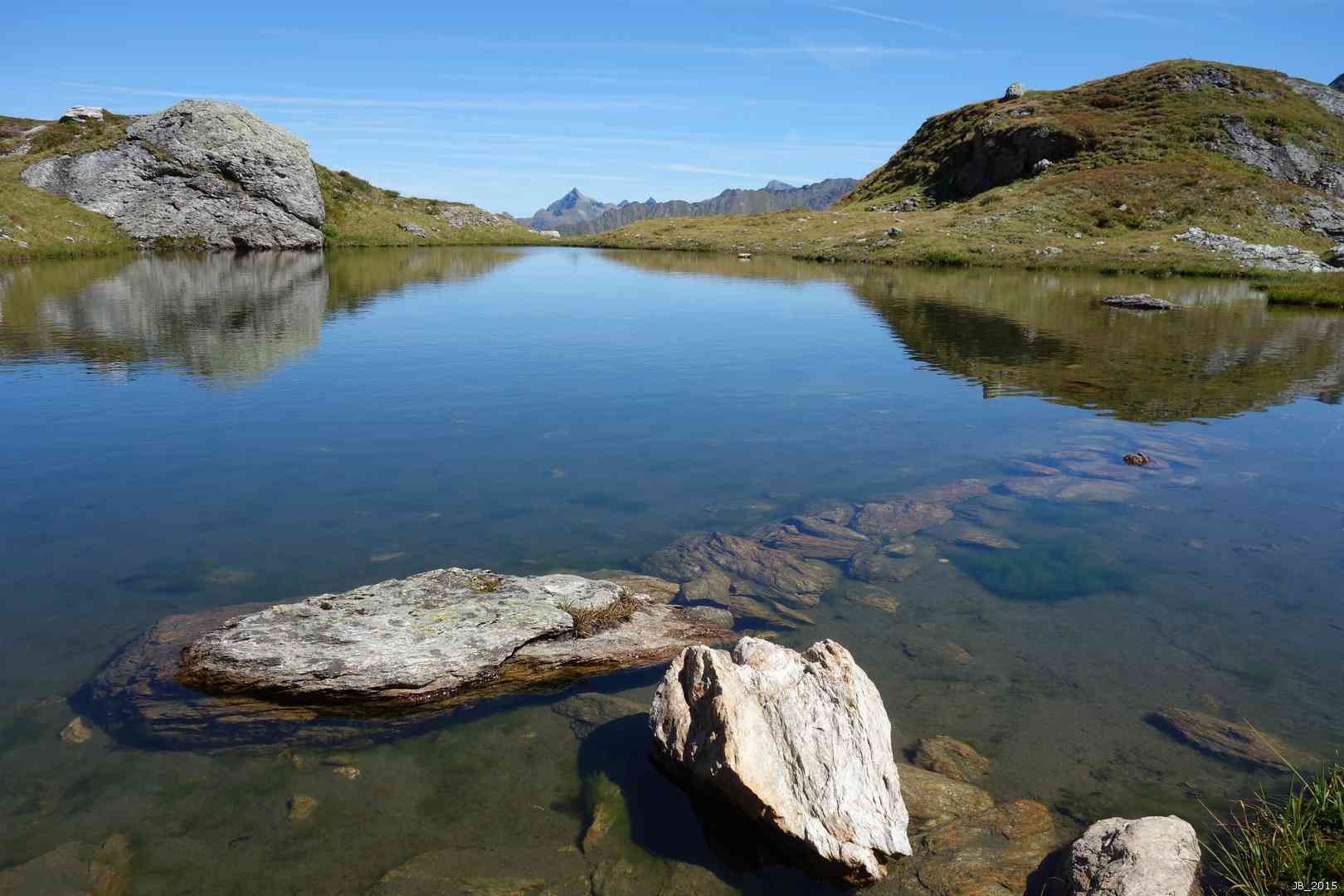 Abstieg auf gleichem Weg zur Ignaz-Mattis-Hütte , dort ostwärts zum Giglachsee absteigen und auf schönem Rundweg zur Giglachsee-Hütte.