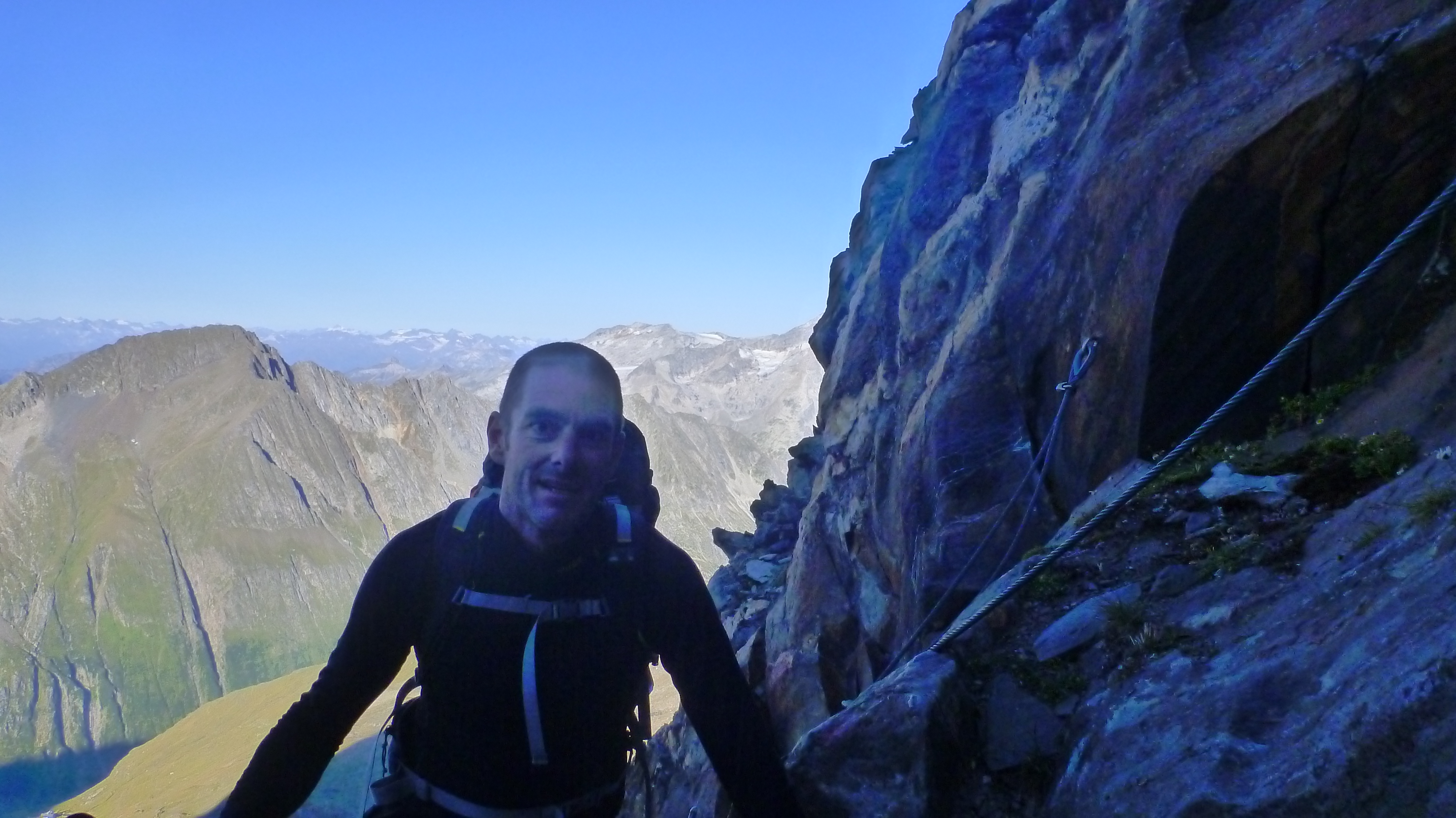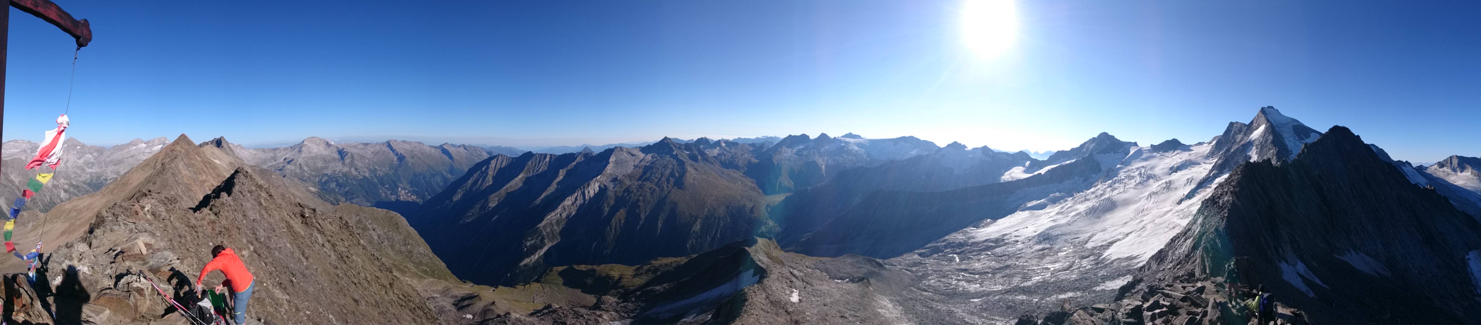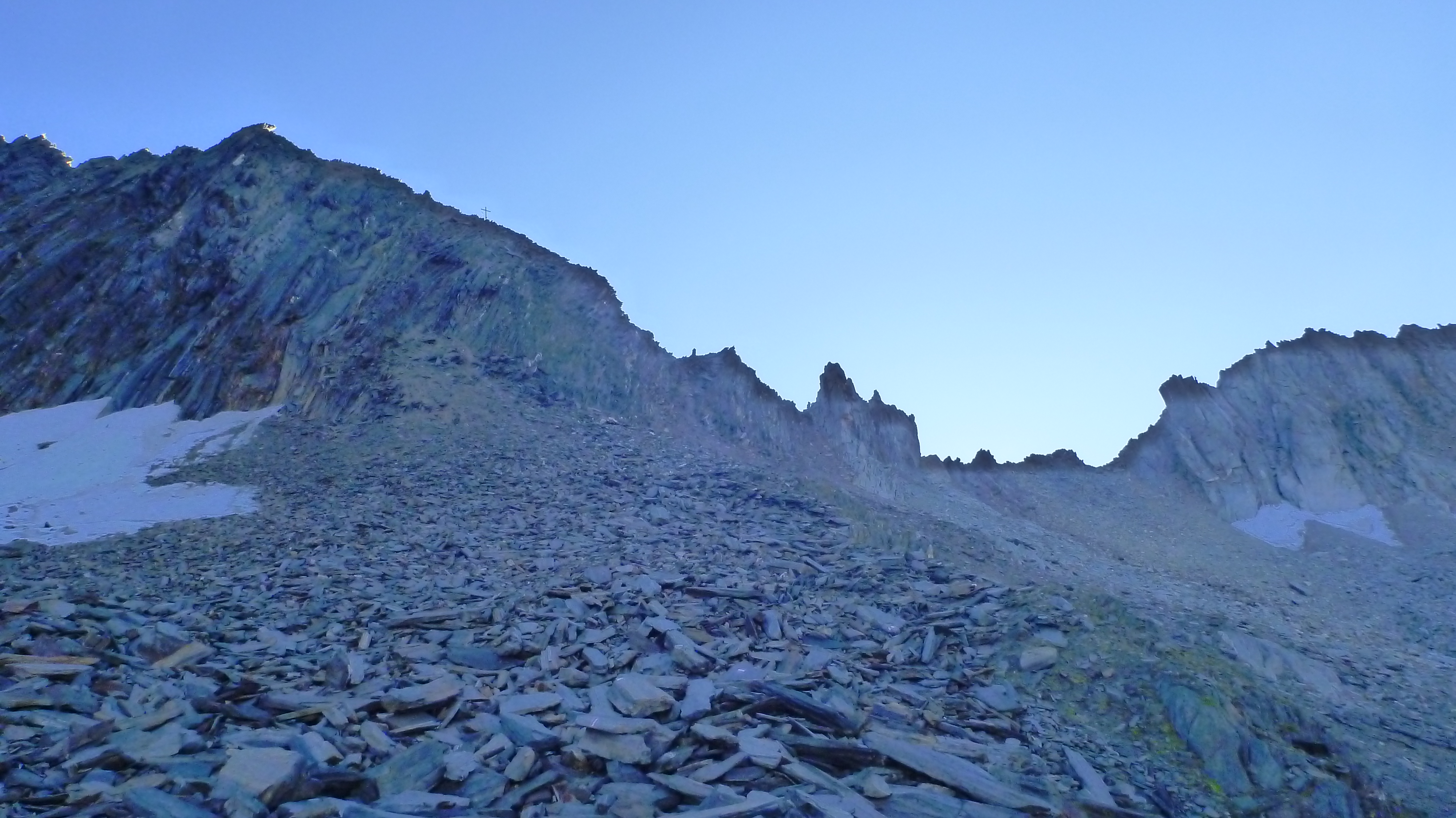 Sonstiges: zunächst mit dem Mountainbike vom PP am Schlegeisspeicher über die Versorgungsstraße zum Südende des Sees, über die Brücke und weiter taleinwärts bis zum Wegweiser. Dort Bikedepot und über viele Serpentinen auf gutem Wanderweg zum Furtschaglhaus. Von dort dem guten Bergweg folgend dem schon bald zu sehendem Gipfelziel zunächst über Gras, dann über Steinplatten zu. Zuletzt unschwierig zur Scharte (unnötige Drahtseile) und zum Gipfelkreuz. Sehr schönes Panorama am Gipfel.