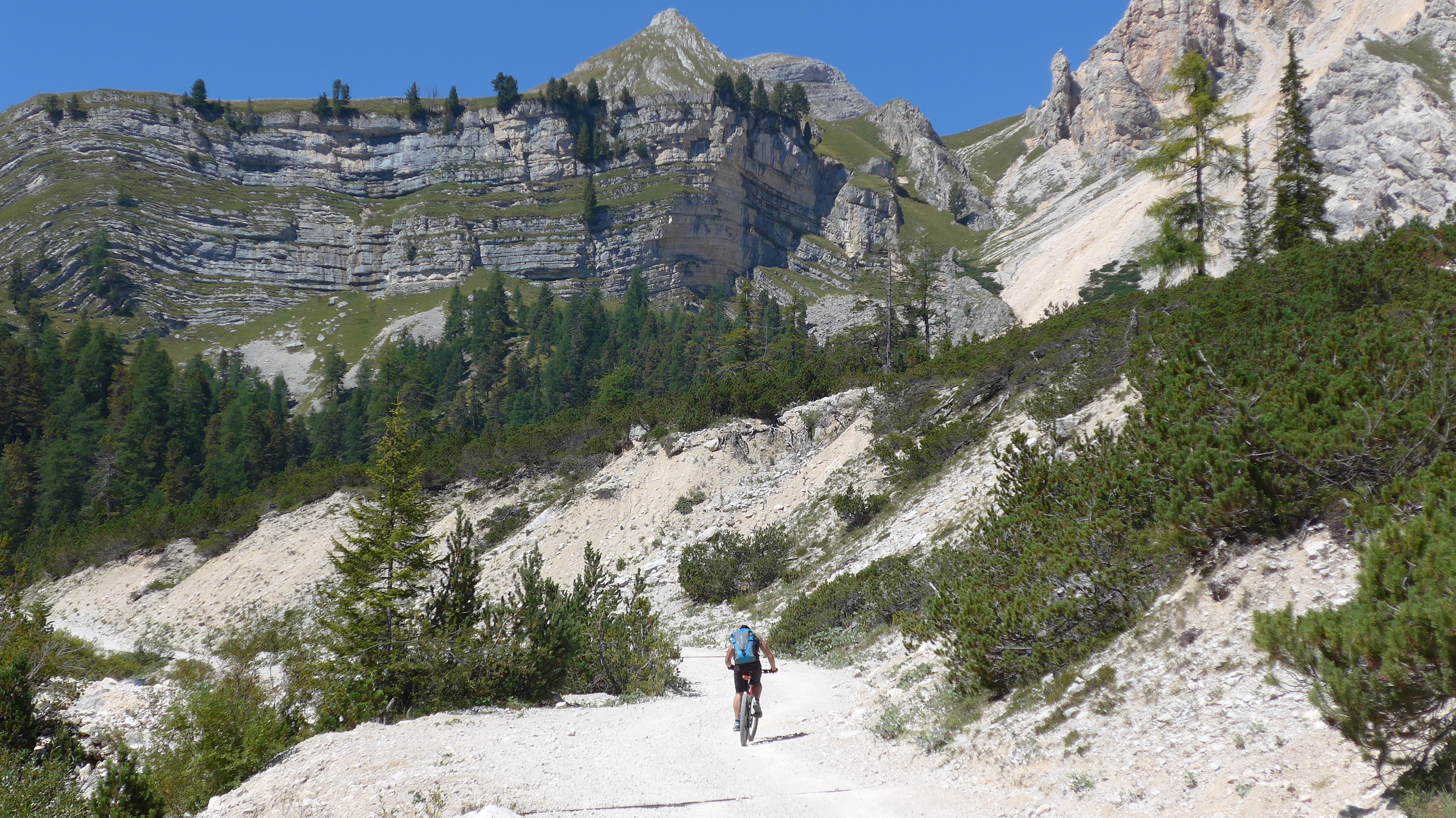 Sonstiges: Absolut schöne Mini-Transalp mit unglaublich schöner Landschaft - besonders Fanes + Dolomiten. Für Transalp hoher Trailanteil, die sich doch immer wieder mit einigen Schiebeetappen (je max. 30 min.) erarbeitet werden müssen. Klasse Unterkünfte! Das leckerste Essen gab´s im unscheinbaren Rif. Ospitale. Für Hardtail grenzwertig.