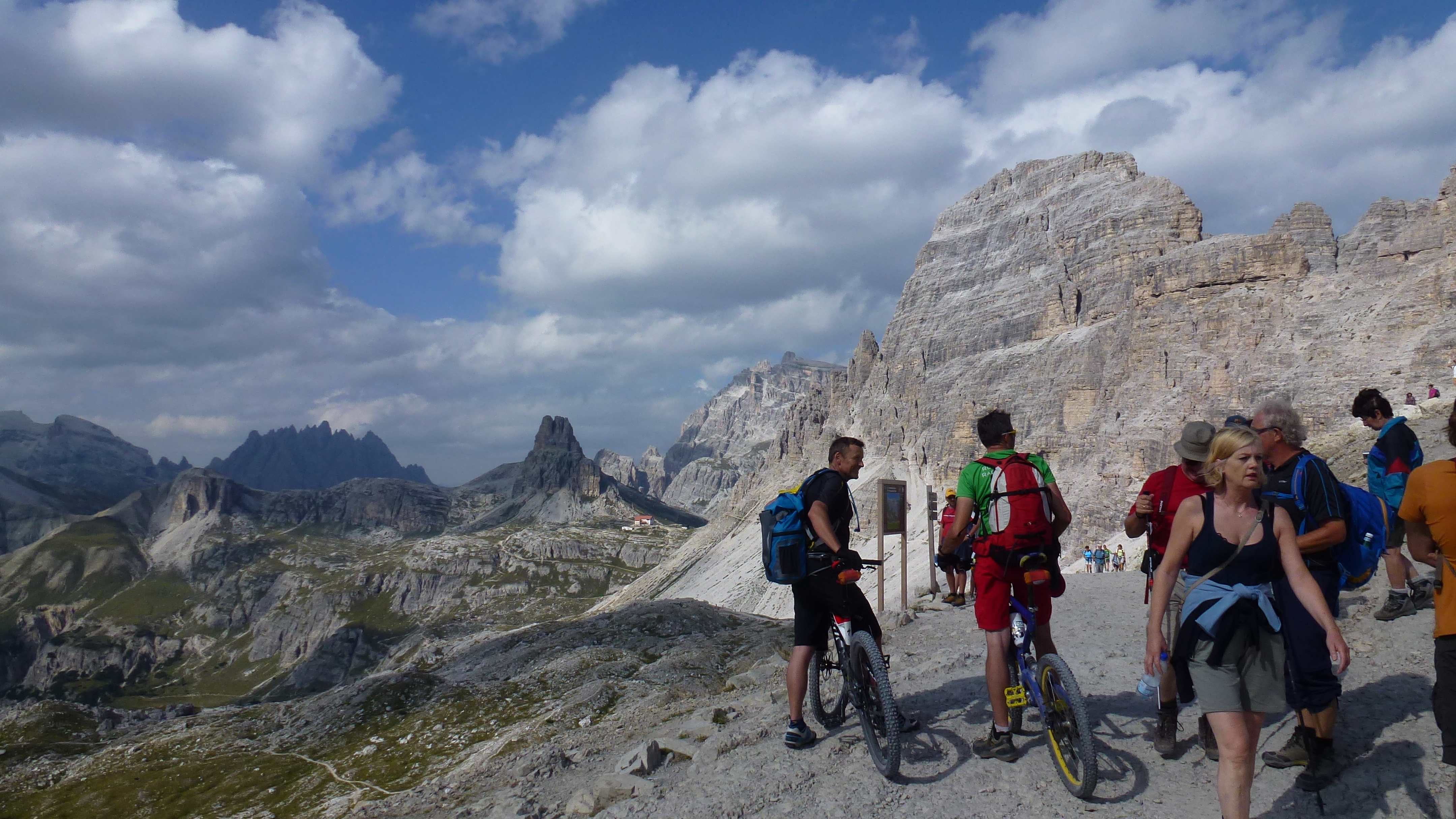 4. Tag: Durch´s stille Val Grande unterhalb des Cristallos zum Passo di Tre Croci - feiner langer S1 Trail zum Misurina See. Idylle pur! Ab hier haben wir und die Teerstraße zum Rif. Auronzo gegönnt. Wunderschöne Landschaft! Rif. Lavaredo - durch´s Rienztal auf S3 (Stellen) sonst S 2 Trail durch´s Rienztal hinausgeschlichen mit Rücksicht auf die Wanderer ( kurze Passage Steinschlaggefahr). Könnte sein, dass hier ein Bikeverbotsschild übersehen wurde. ?? Weiter auf Radlweg nach Toblach. 1500 Hm 45 km.