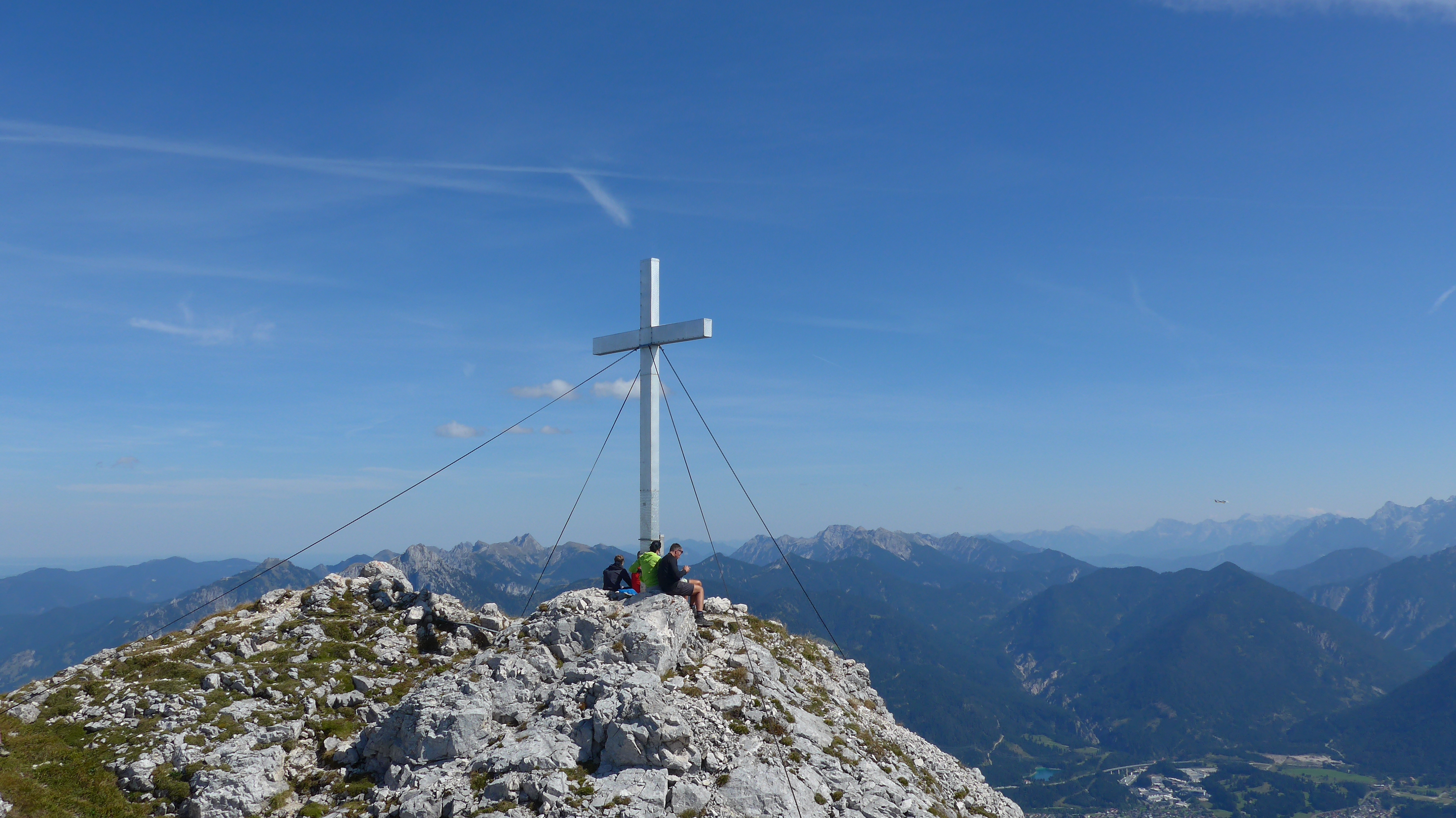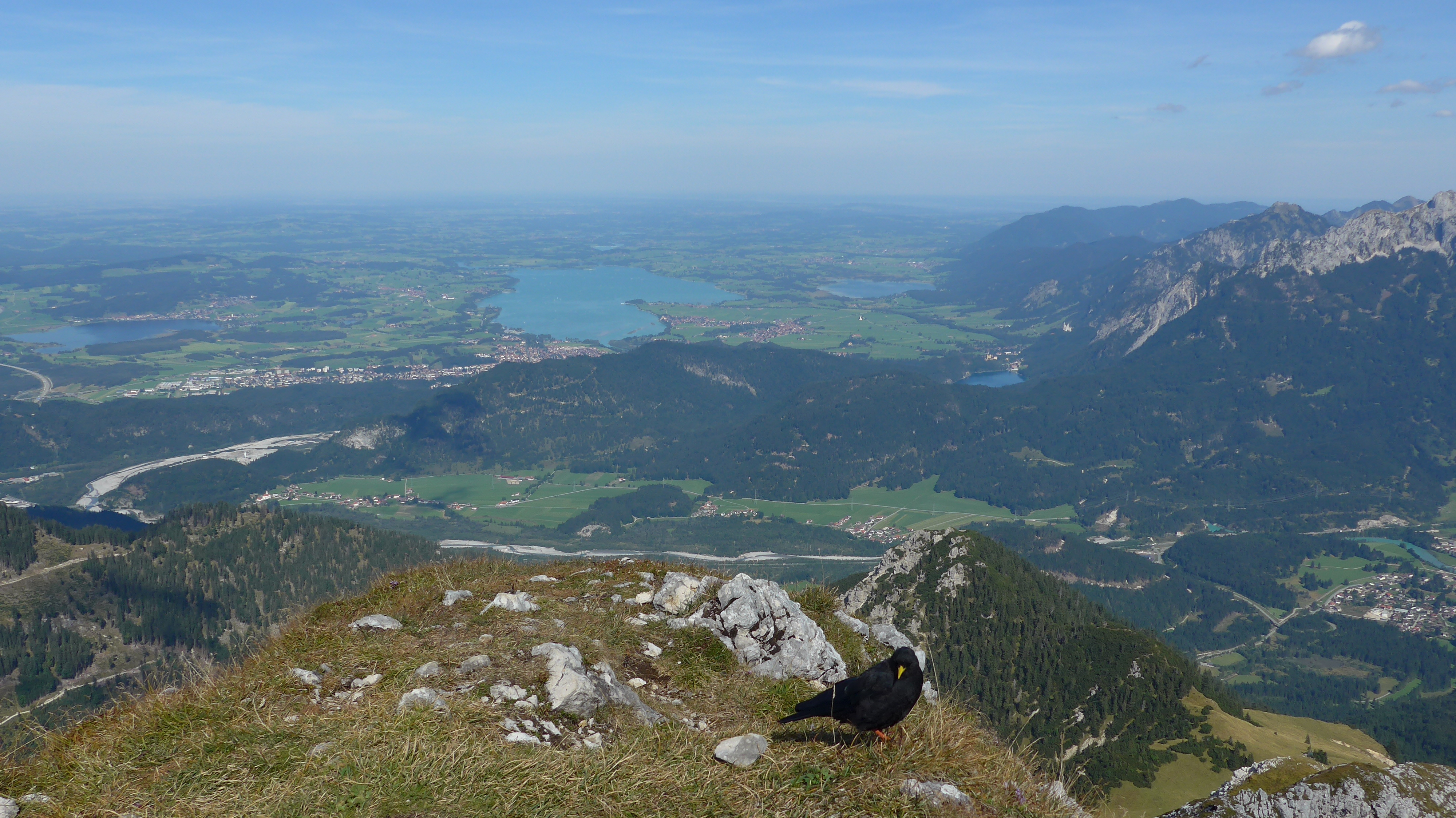 Am Gipfel wunderbare Aussicht! 9 Seeen. Gipfelbrotzeit wird mit Dohlen geteilt.